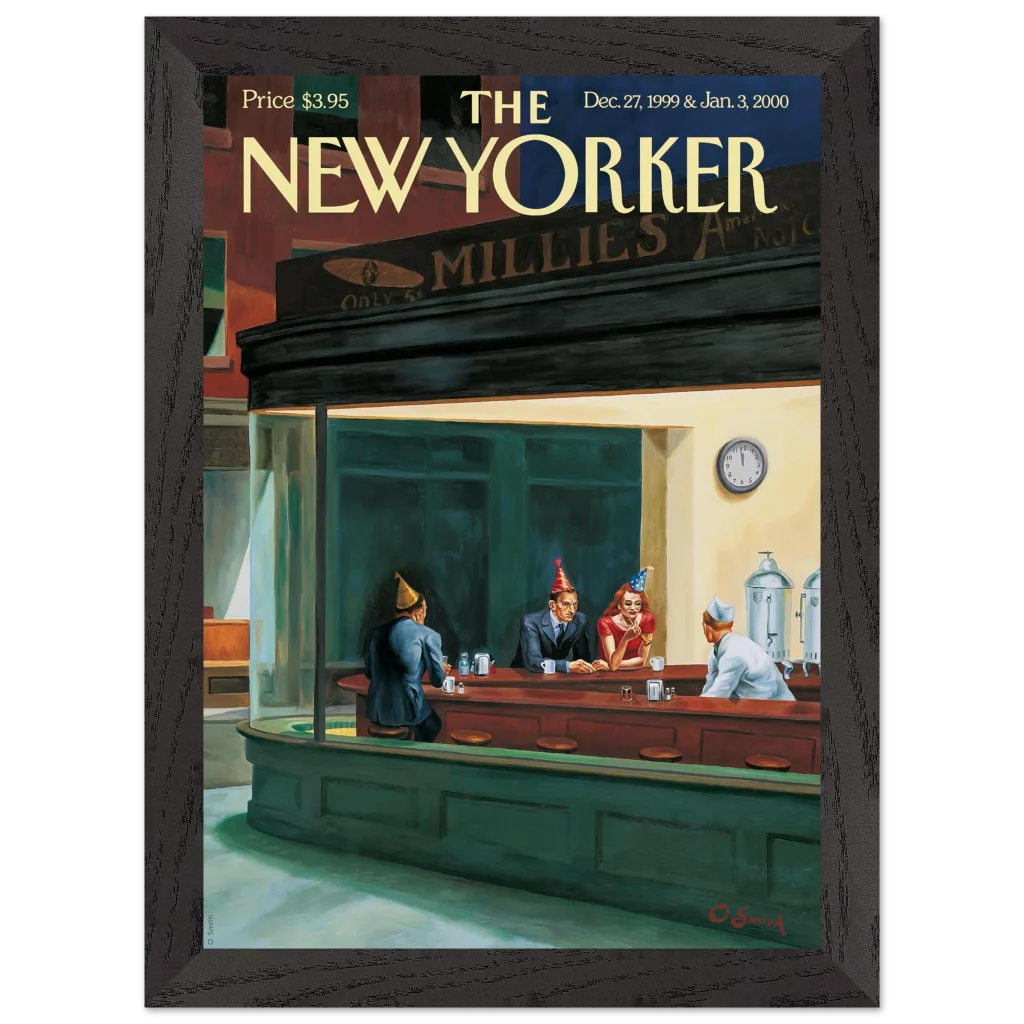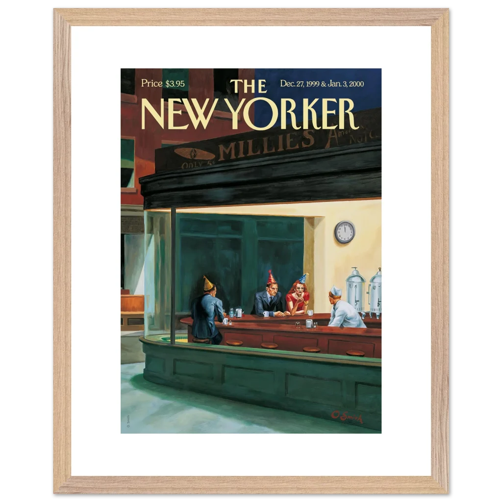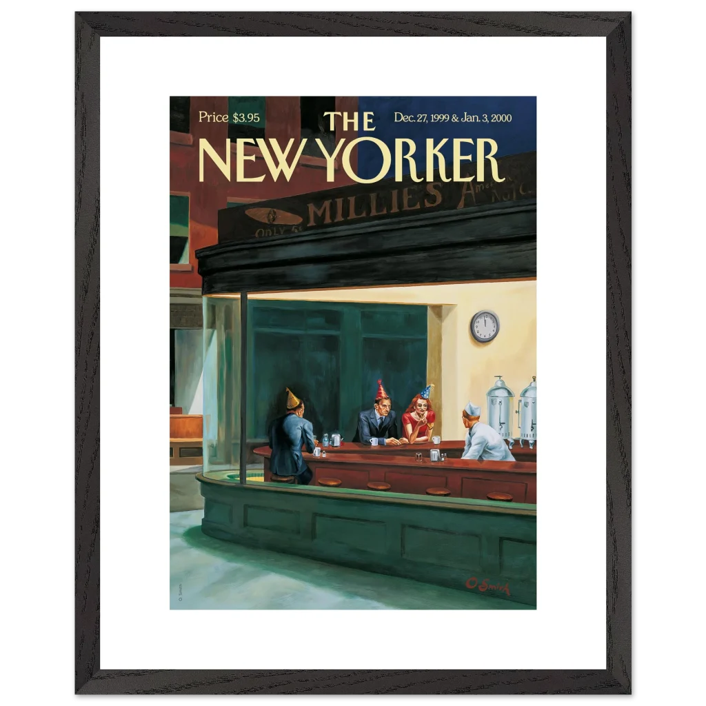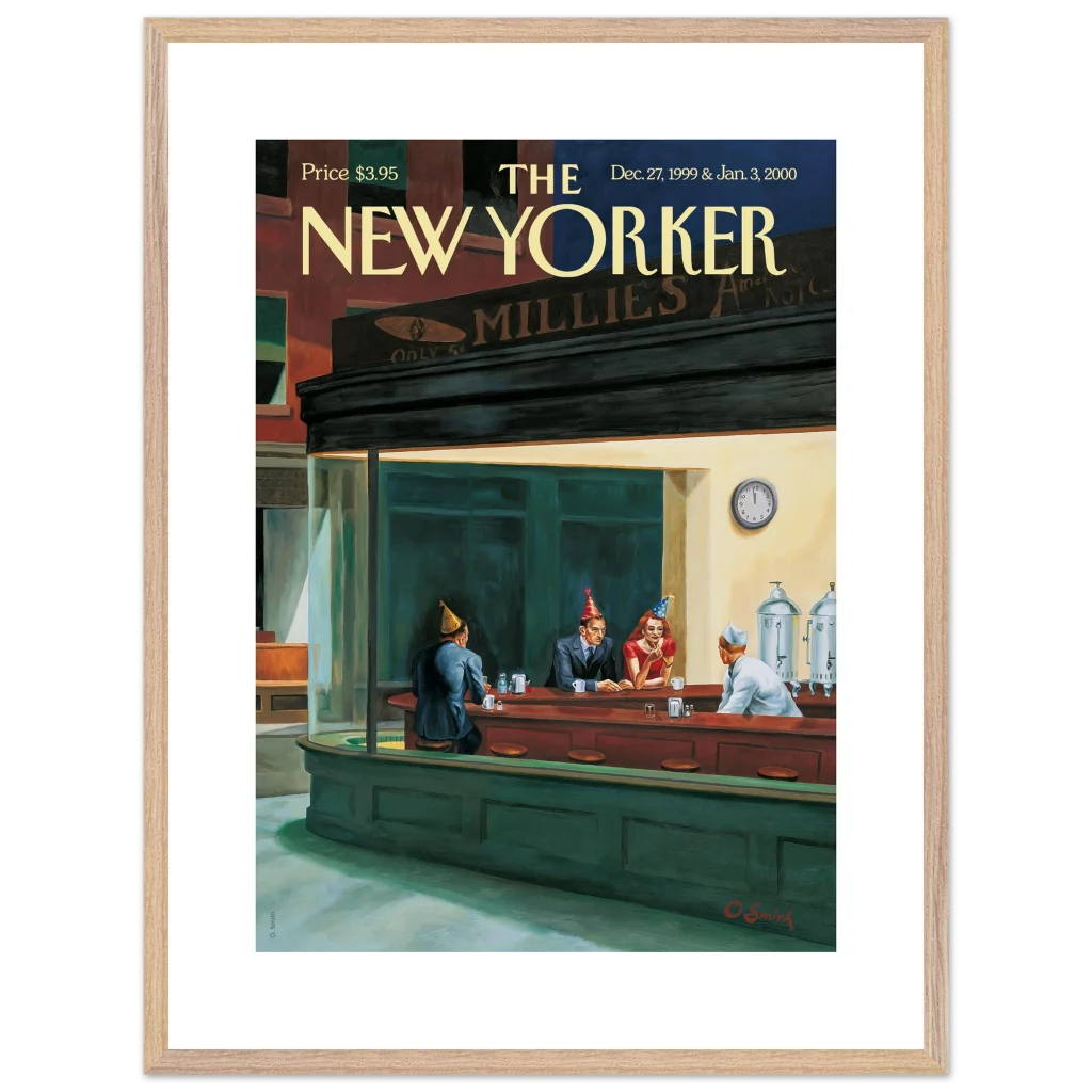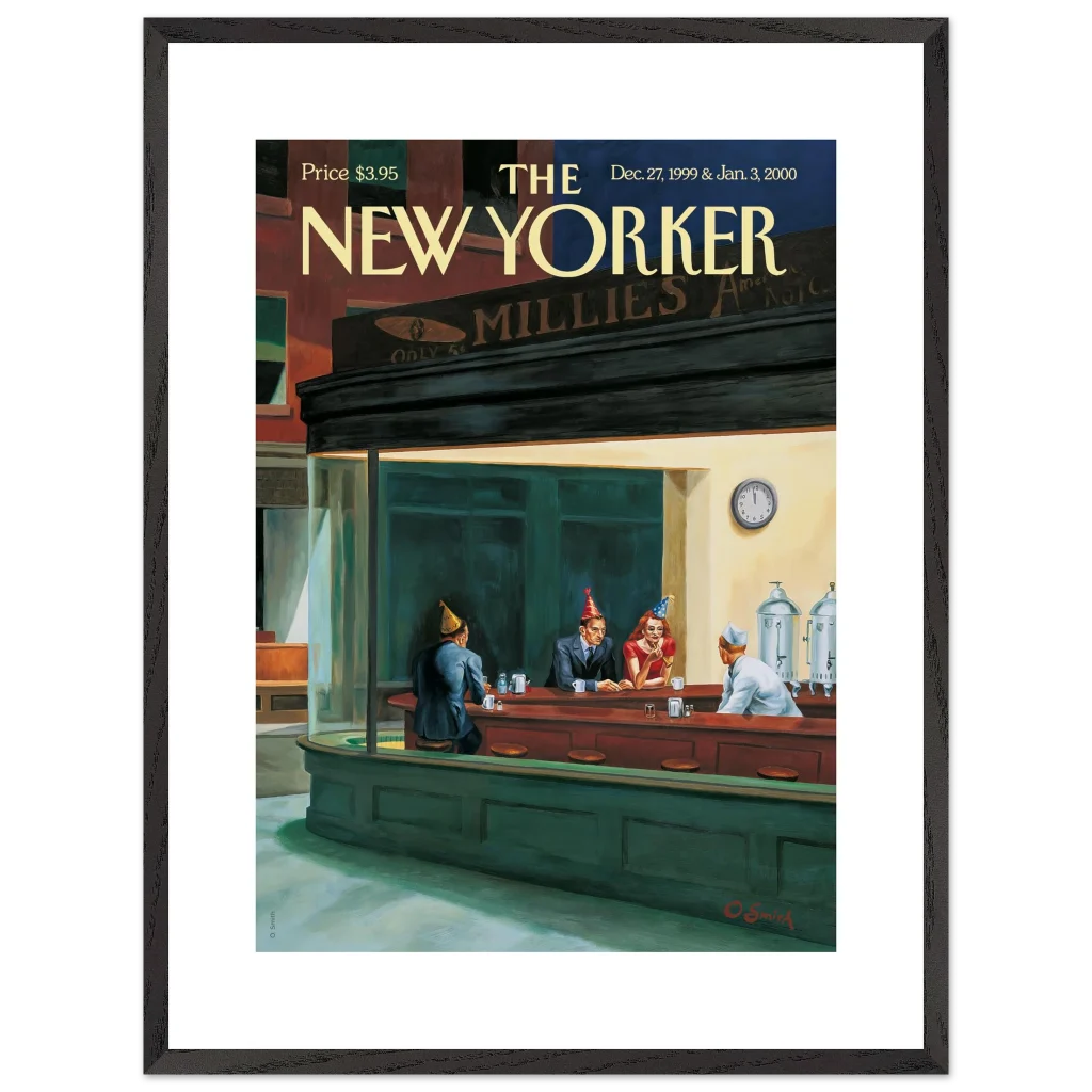Millie’s New Year’s Eve Diner Print – Iconic New Yorker Cover Art Premium Framed Poster in Multiple Sizes & Frame Colors