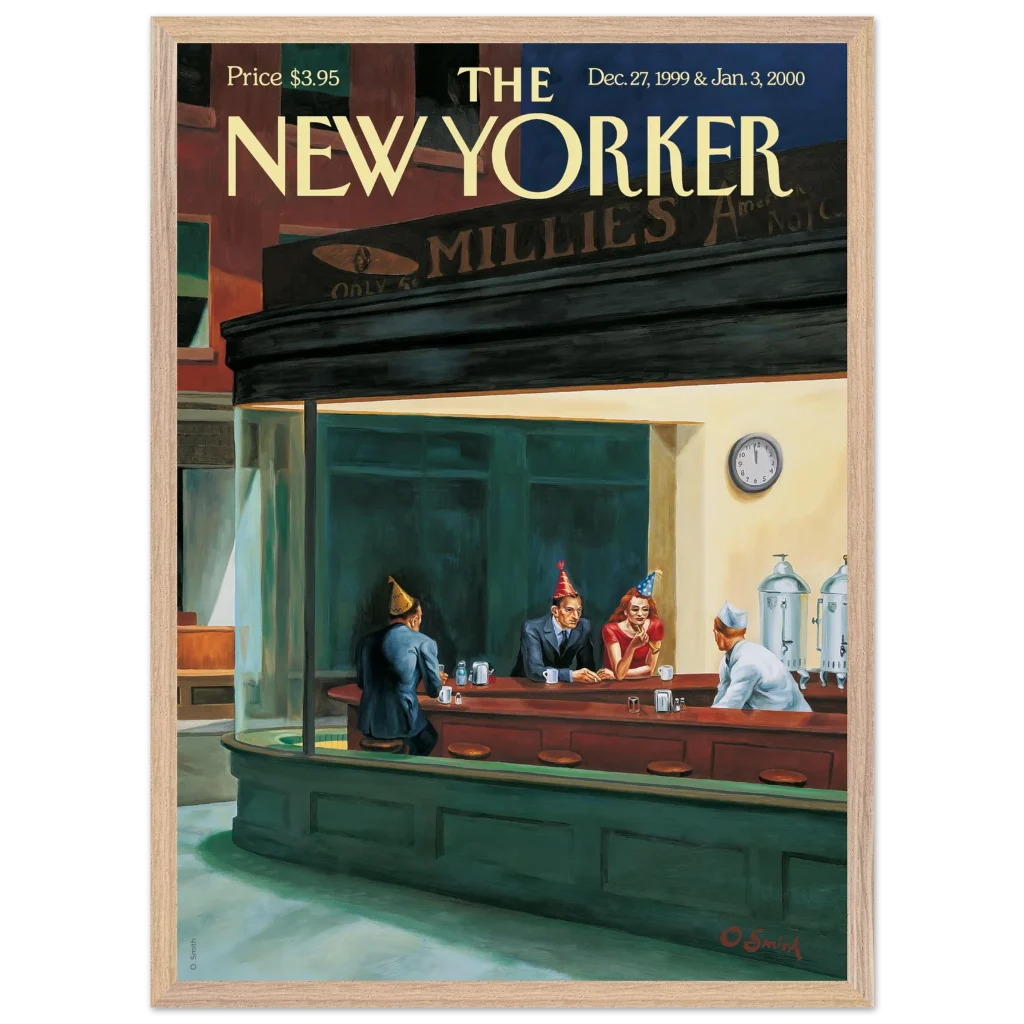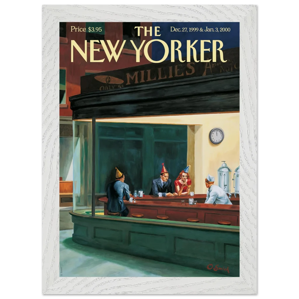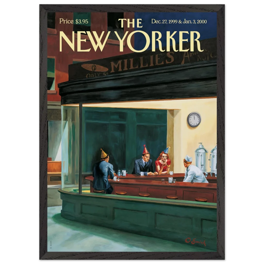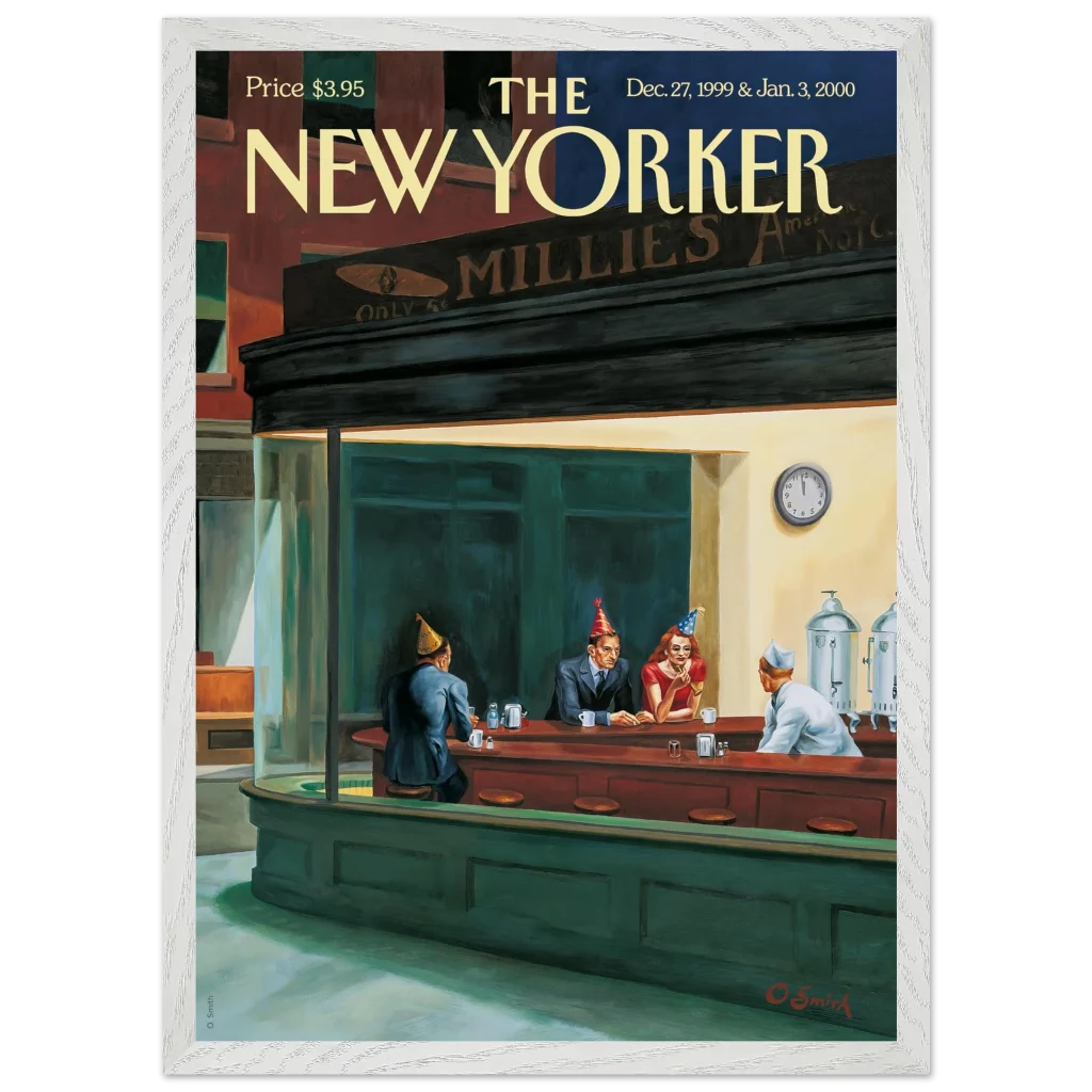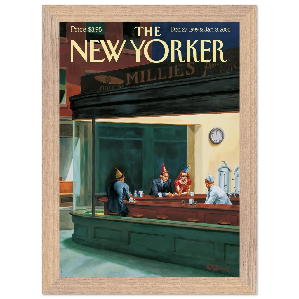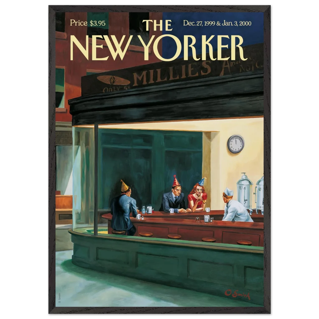 Millie’s New Year’s Eve Diner Print – Iconic New Yorker Cover Art Premium Framed Poster in Multiple Sizes & Frame Colors