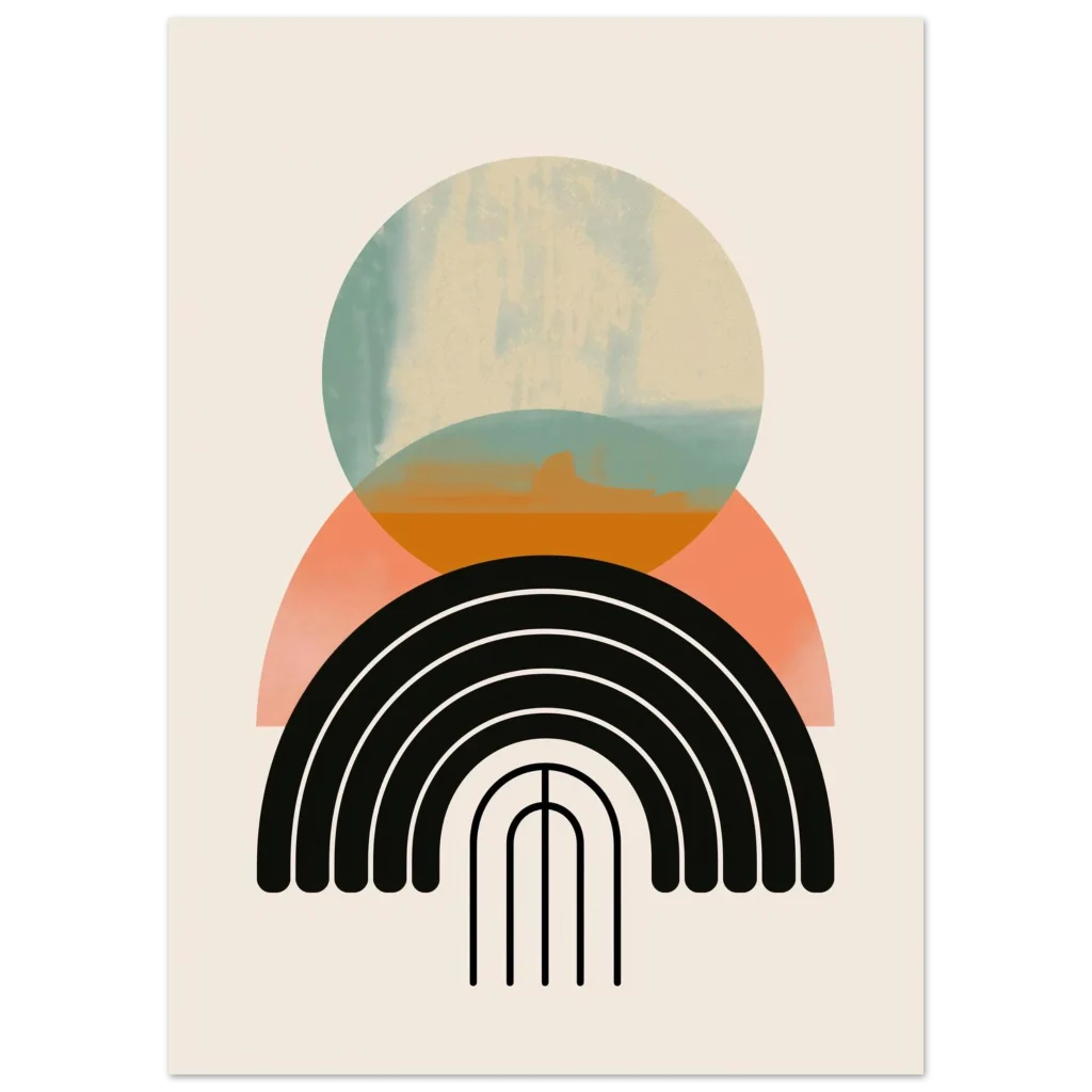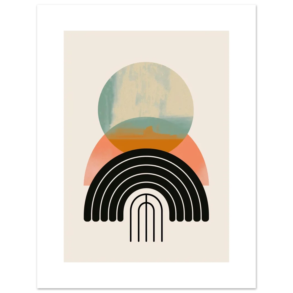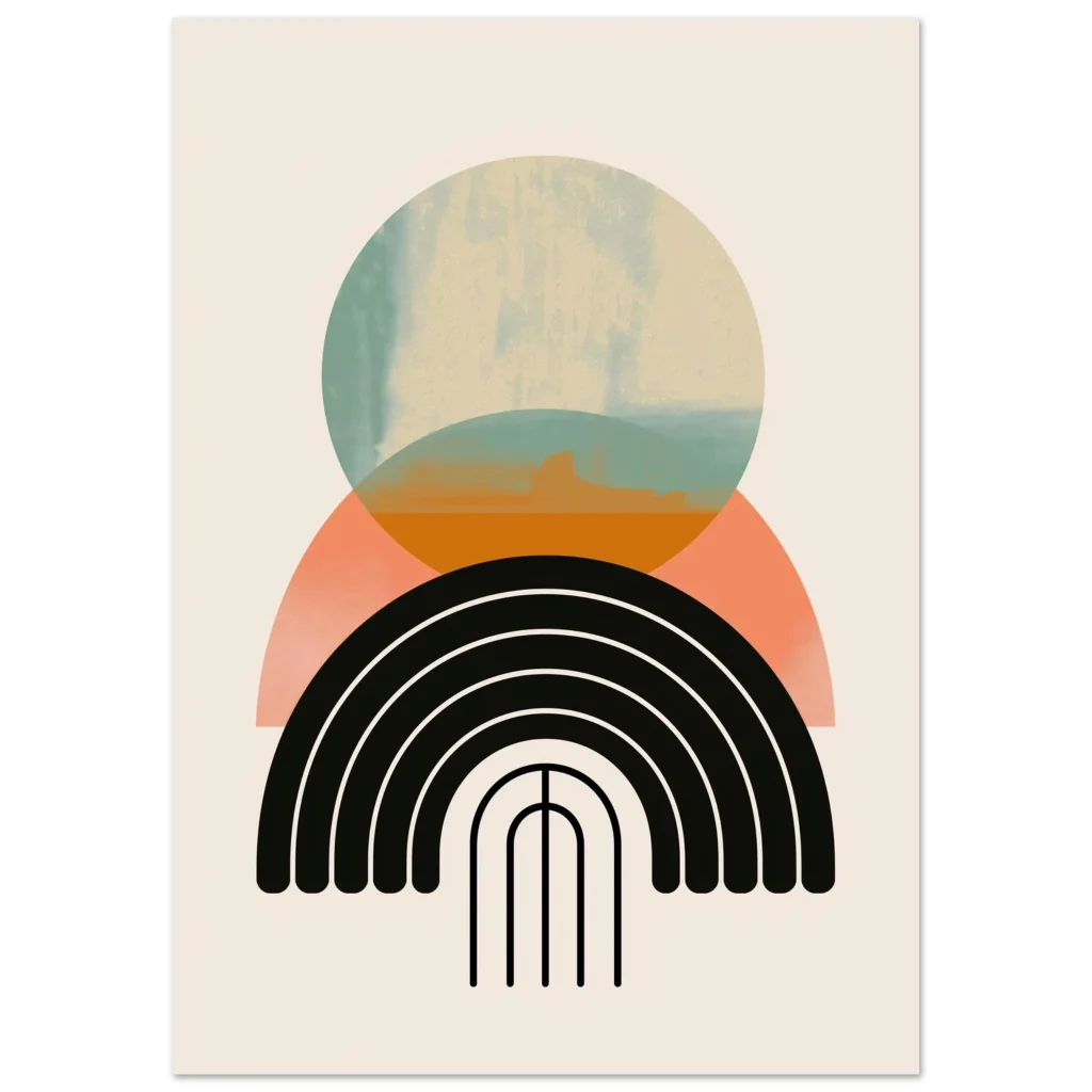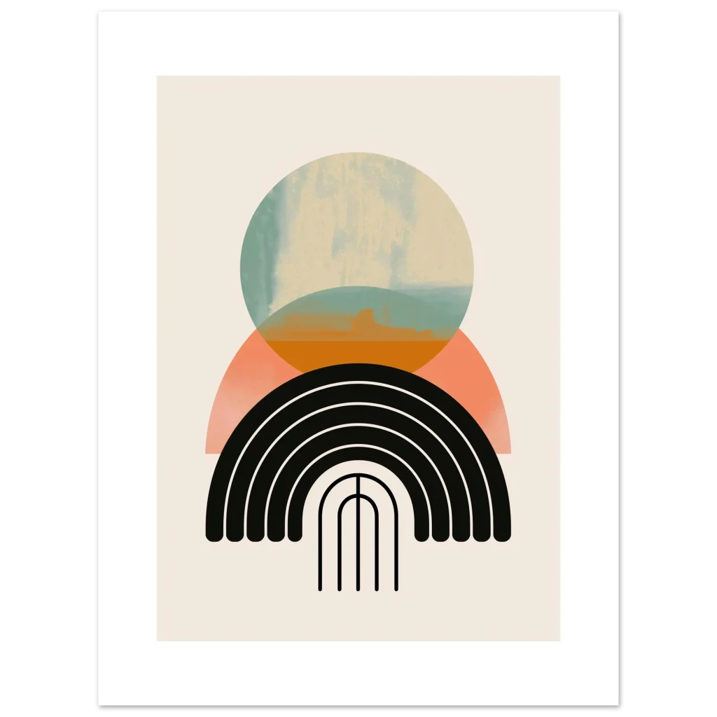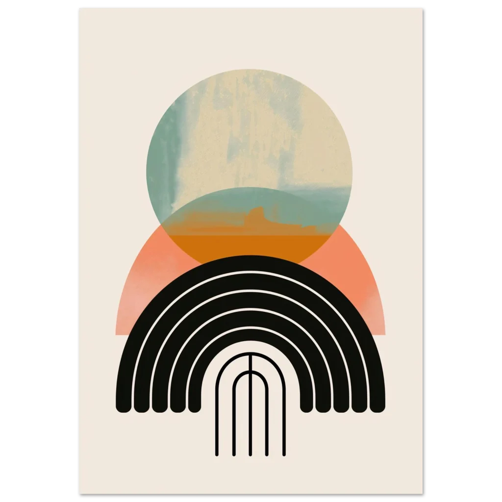 Minimalist Abstract Arch & Sun Premium Matte Paper Poster – Earth Tones & Black