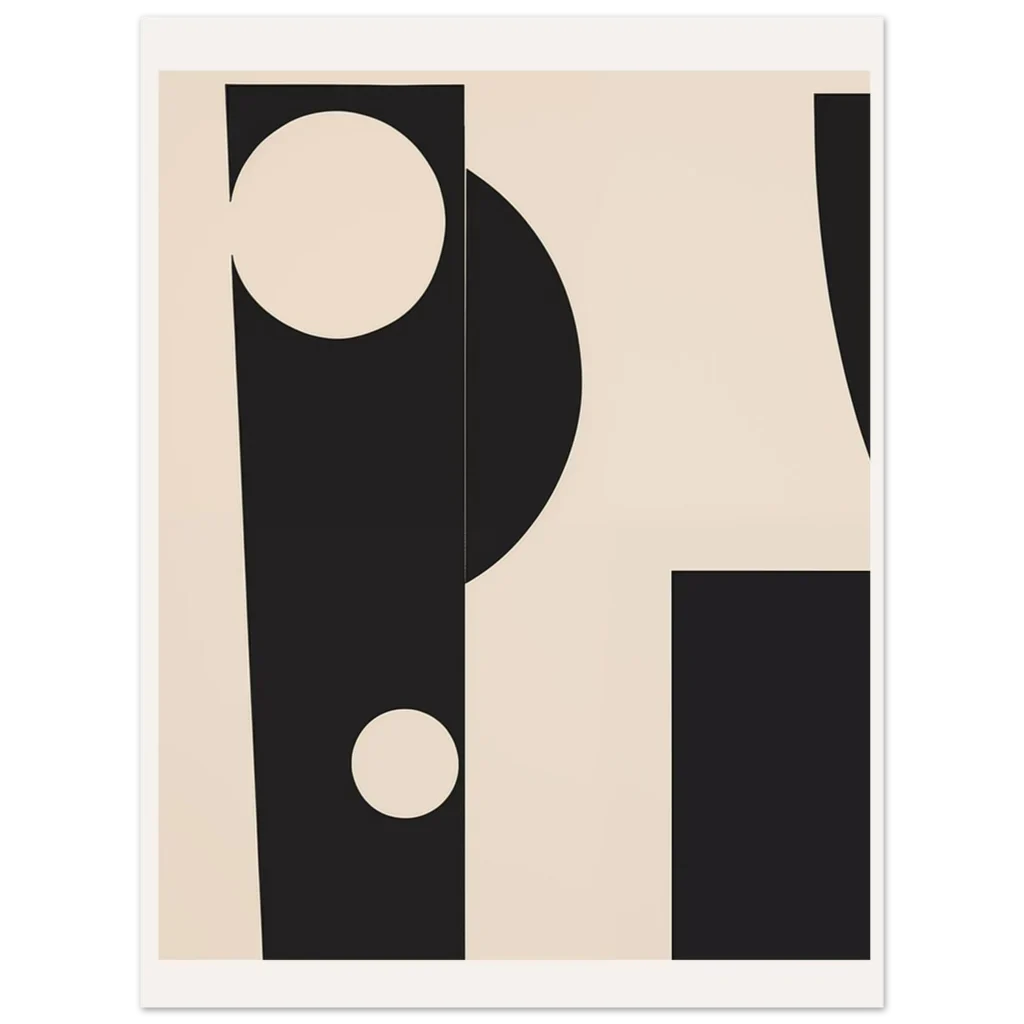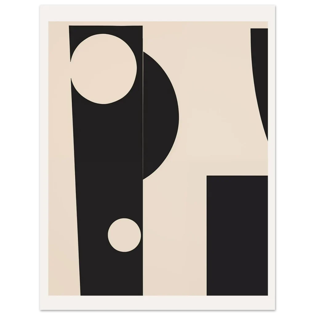 Infuse your space with a touch of modern sophistication. This captivating minimalist abstract art print, with its bold geometric shapes and striking black and beige palette, brings an understated elegance to any room. Perfect for creating a serene yet thought-provoking ambiance, this piece is designed to complement contemporary decor and spark conversation.