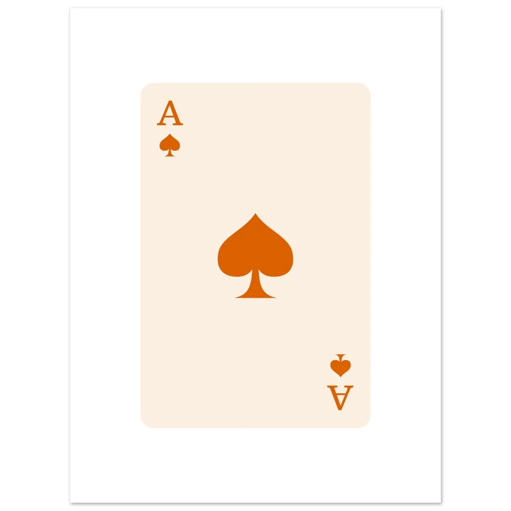 Elevate your space with a touch of sophisticated simplicity. Our Minimalist Ace of Spades art print captures the iconic symbol in a warm, inviting orange hue against a clean, off-white background. This design is perfect for adding a subtle nod to game nights, a chic modern touch to your living area, or a unique accent to any room that appreciates understated elegance. It’s more than just a poster; it’s a statement piece that speaks to strategy, style, and a love for classic design.