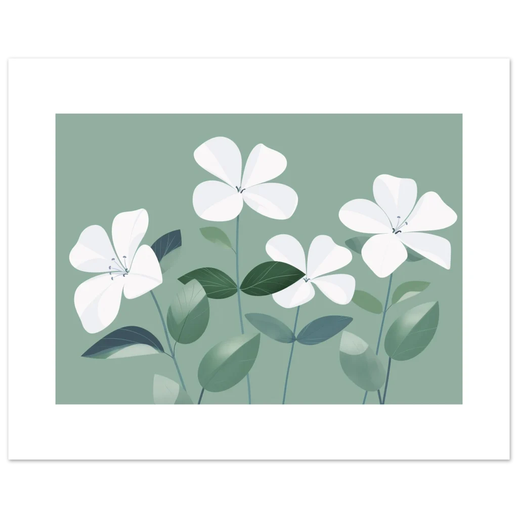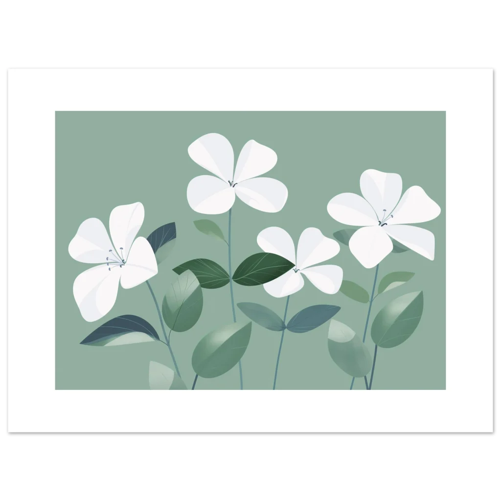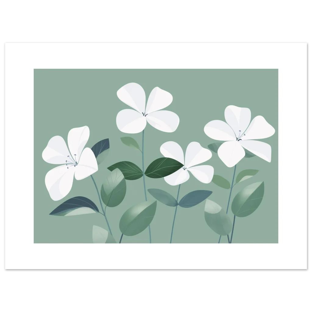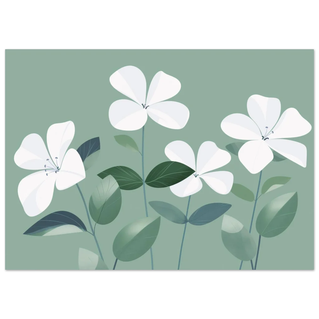 Bring a touch of tranquil elegance into your space with our ‘Minimalist Bloom Serenity’ poster. Featuring delicate white blossoms against a calming sage green backdrop, this artwork captures a peaceful, modern aesthetic perfect for any room. The clean lines and soothing palette create an atmosphere of quiet sophistication, transforming your wall into a serene focal point.
