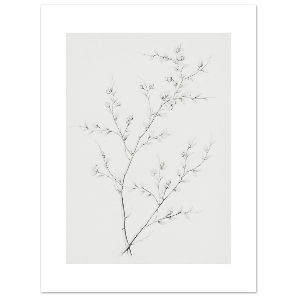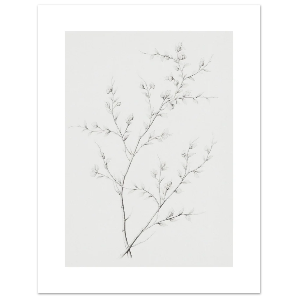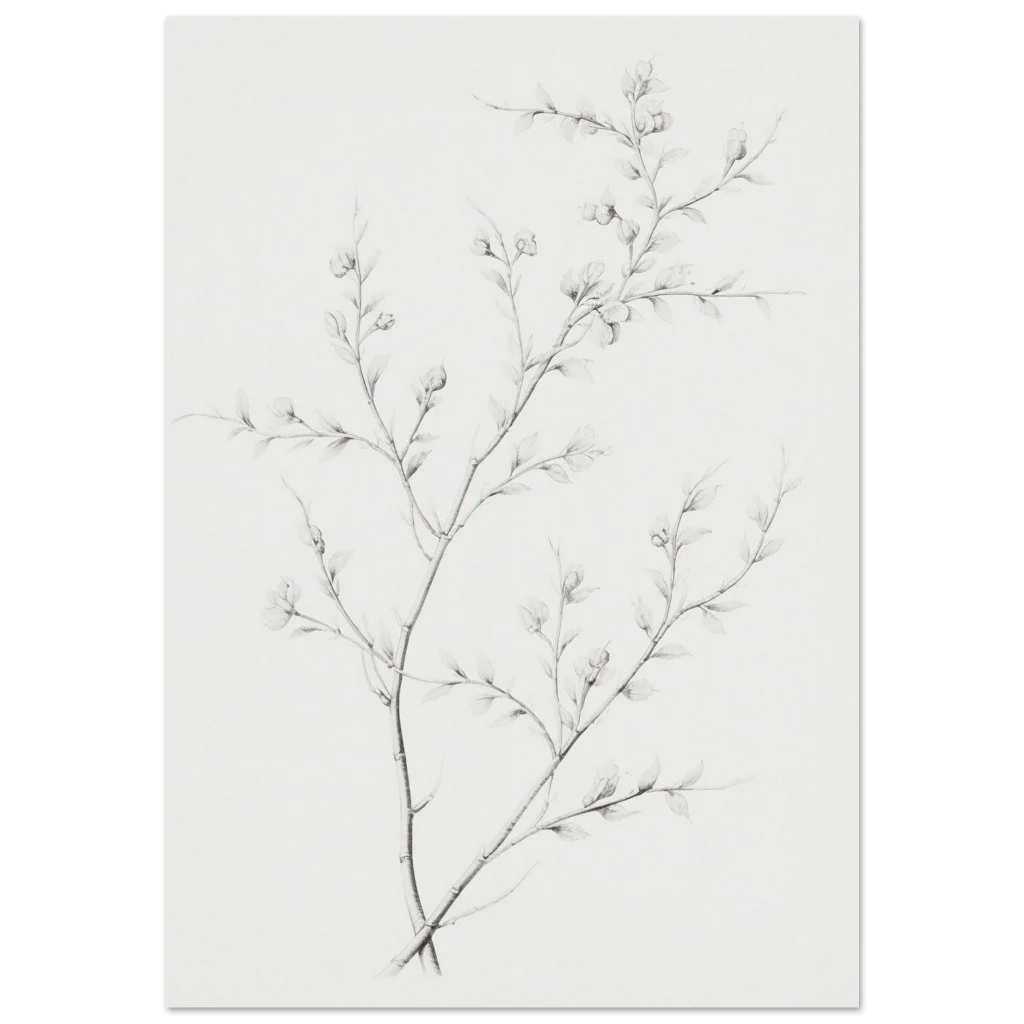 Bring a touch of serene natural beauty into your home with our minimalist botanical sketch poster. Featuring delicate branches with budding leaves rendered in a refined, soft graphite style, this piece offers understated elegance that complements any contemporary decor. Its subtle hues and intricate details create a calming focal point, perfect for adding an organic, artful touch to your living room, bedroom, or office.