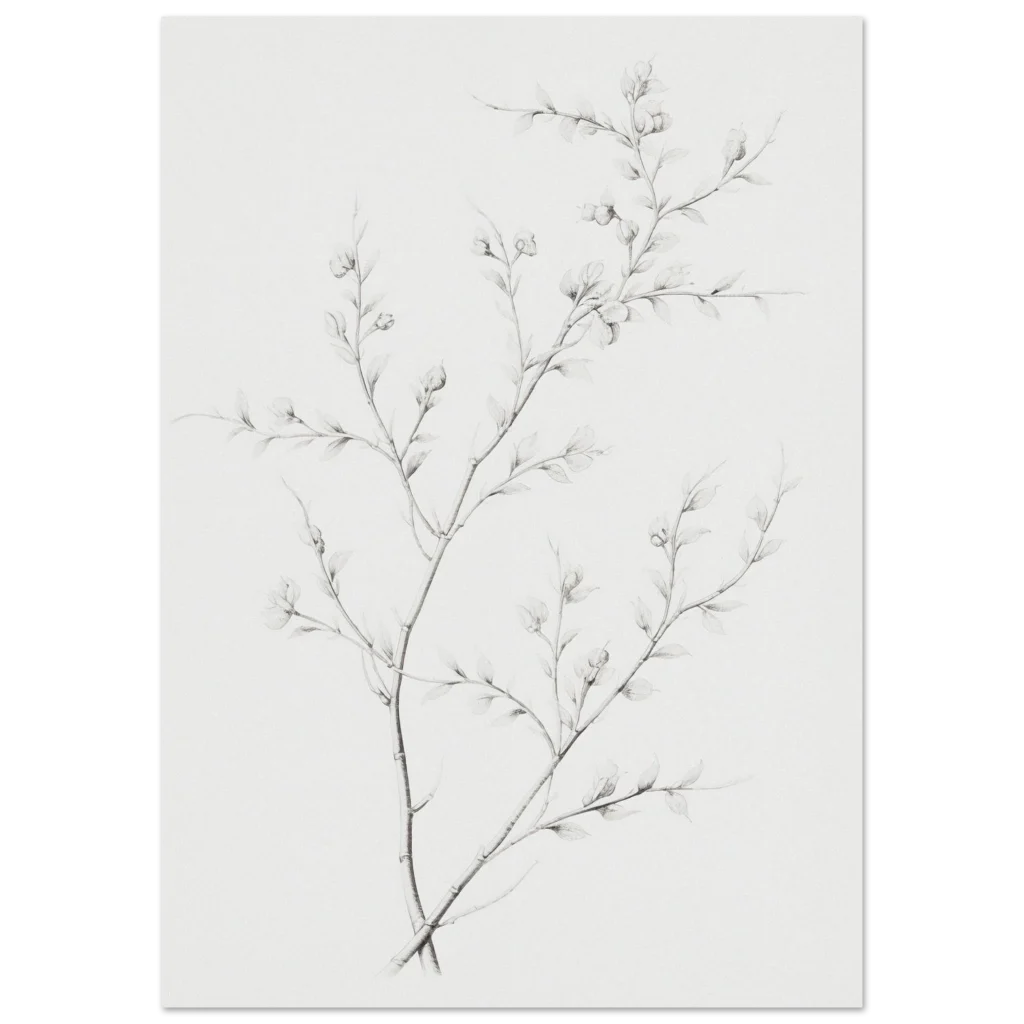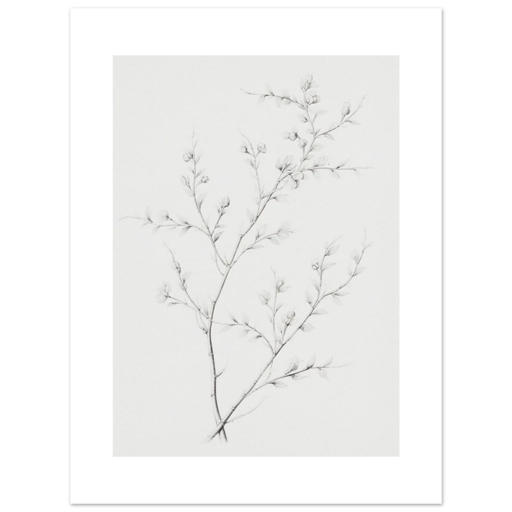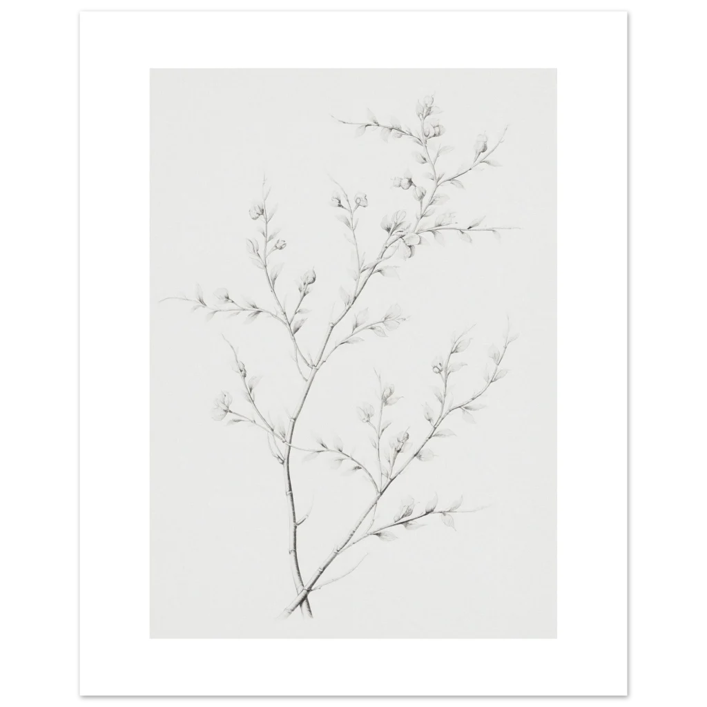 Bring a touch of serene natural beauty into your home with our minimalist botanical sketch poster. Featuring delicate branches with budding leaves rendered in a refined, soft graphite style, this piece offers understated elegance that complements any contemporary decor. Its subtle hues and intricate details create a calming focal point, perfect for adding an organic, artful touch to your living room, bedroom, or office.