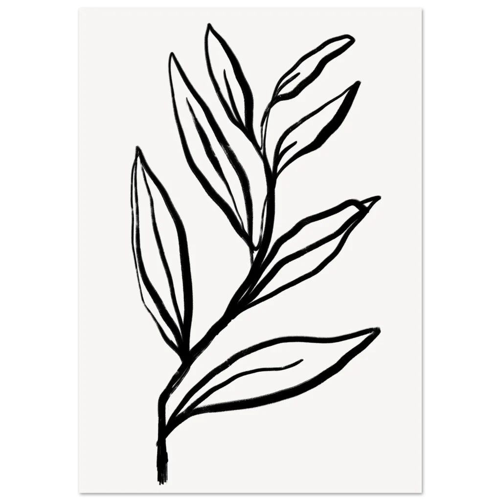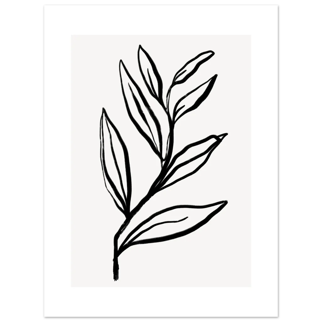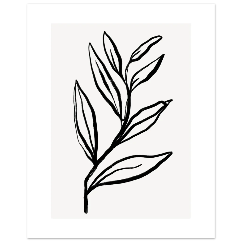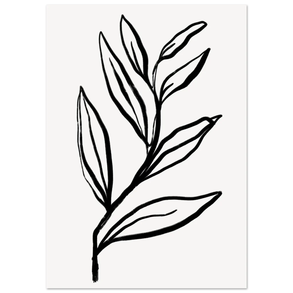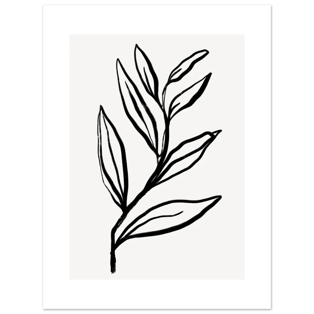 Bring a touch of organic serenity and contemporary style into your space with our Minimalist Botanical Sketch poster. Featuring a delicate, hand-drawn leaf motif with a striking black and white aesthetic, this piece embodies a calm and modern elegance perfect for any room. The clean lines and artistic simplicity evoke a sense of peaceful sophistication, making it an ideal focal point or a harmonious addition to a gallery wall.