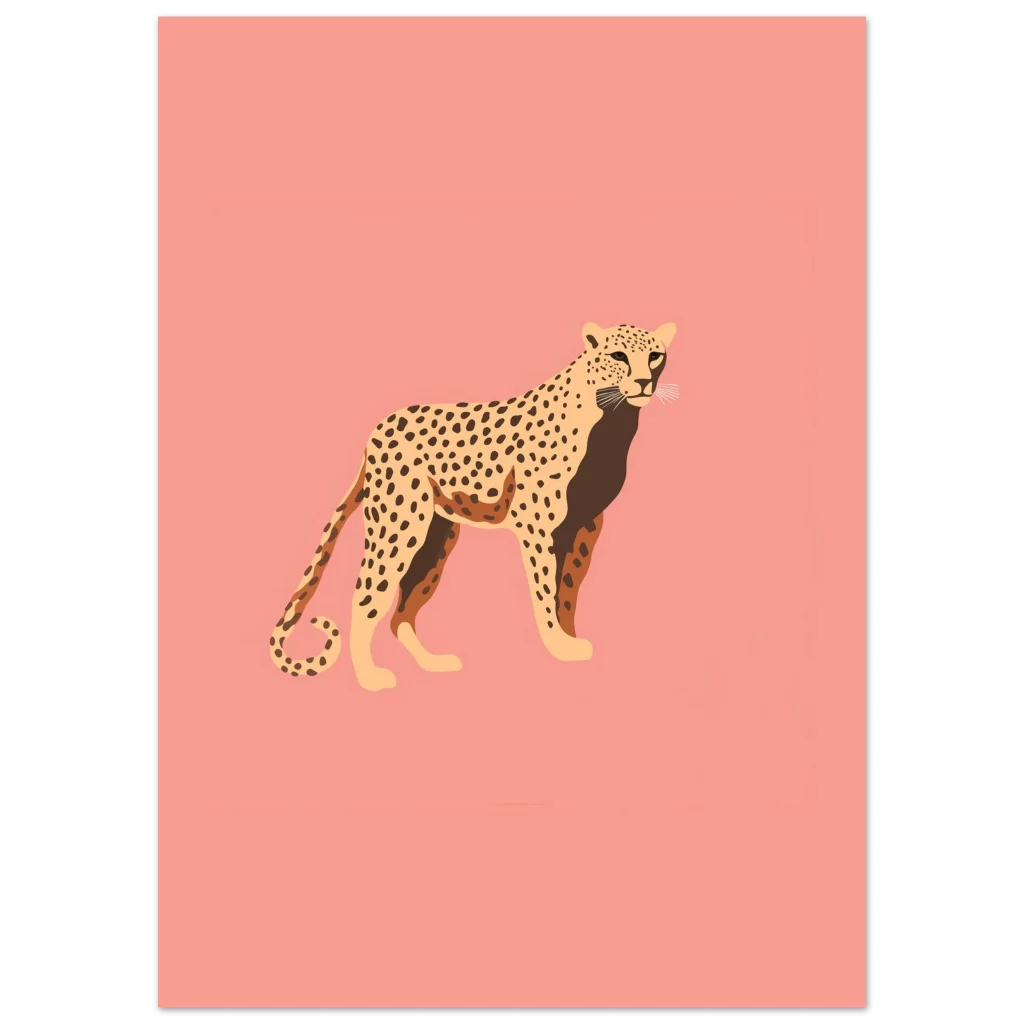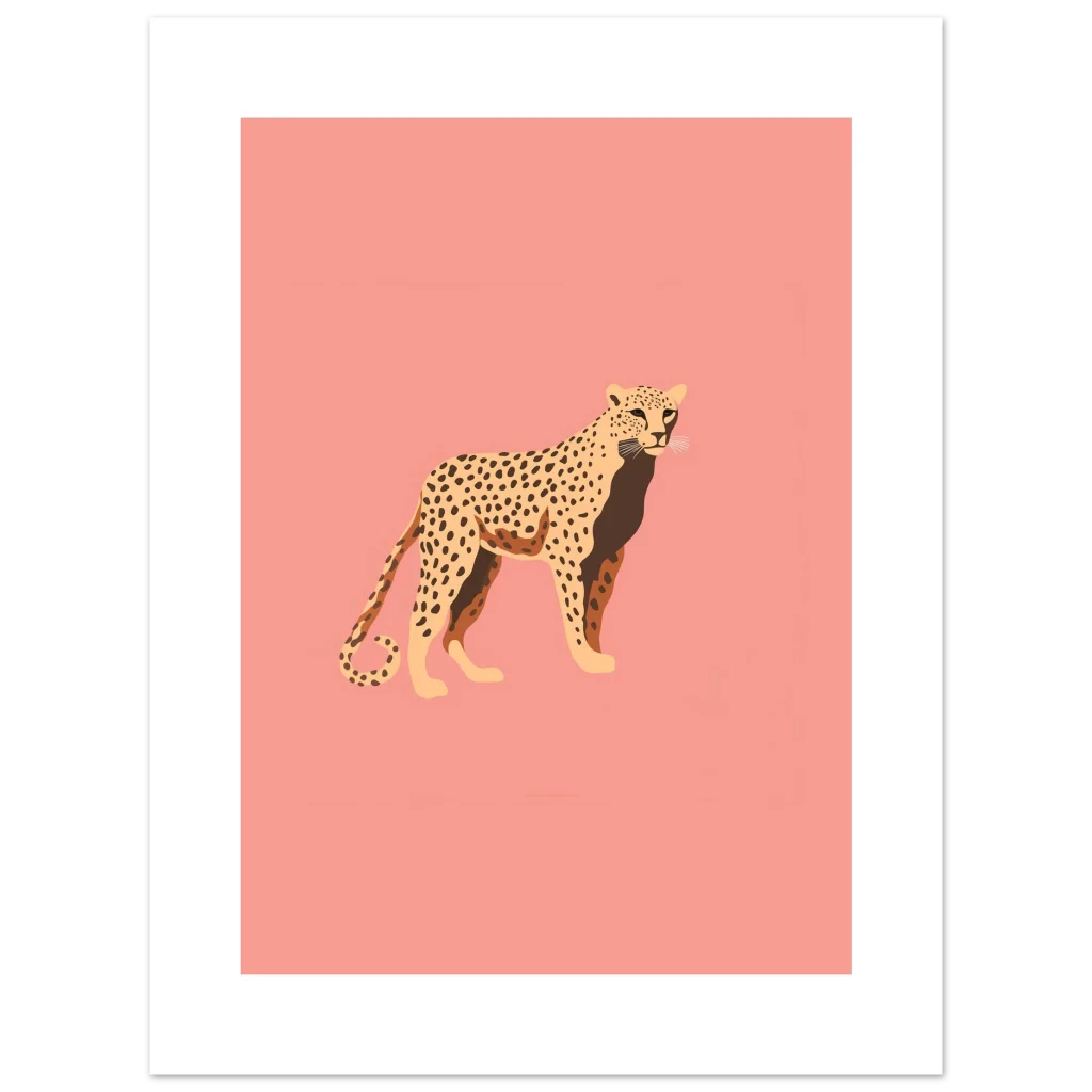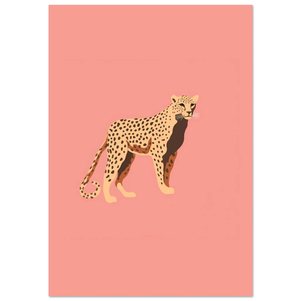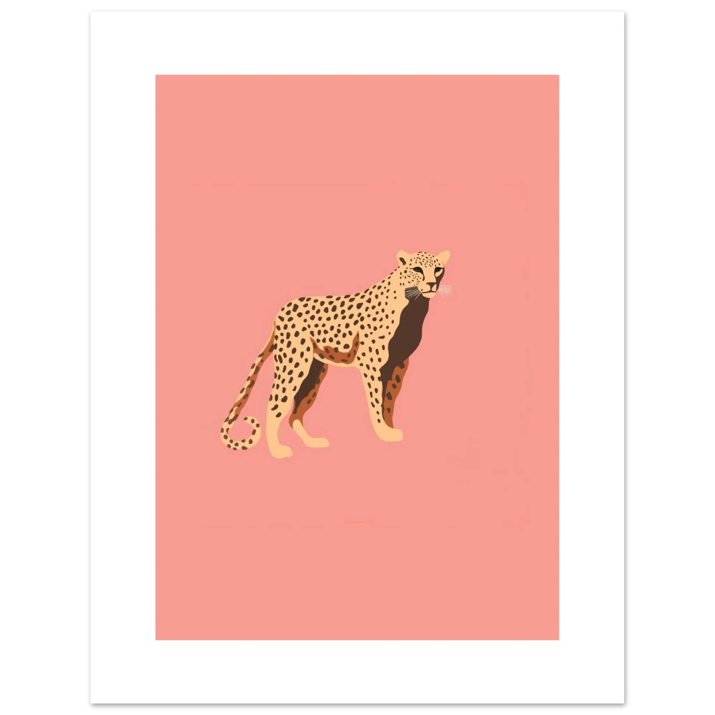 Unleash your inner wild with our captivating minimalist leopard art print. This stunning design, featuring a sleek leopard on a soft coral backdrop, brings a blend of sophisticated charm and untamed beauty to any space. Experience art that feels silky to the touch with our high-quality, lighter-weight, classic semi-glossy paper, designed to make the vibrant colors pop.
