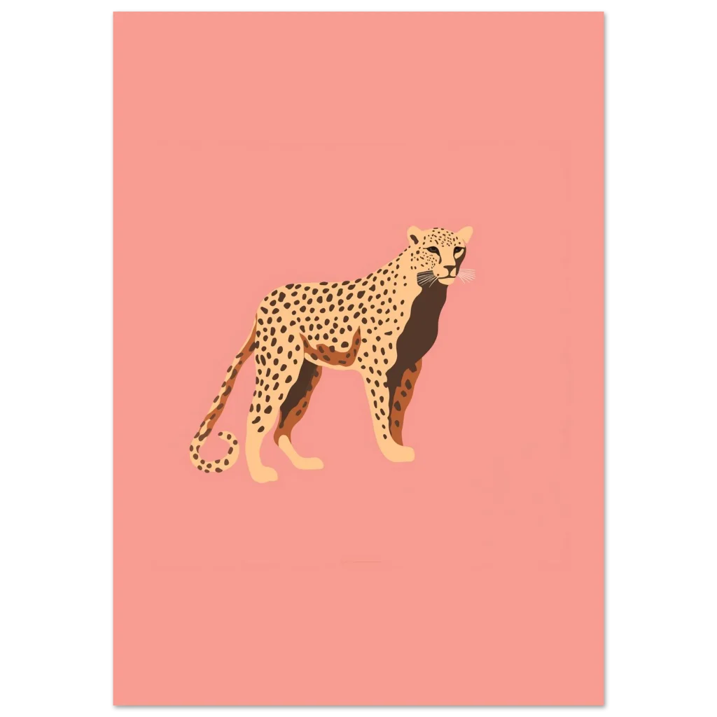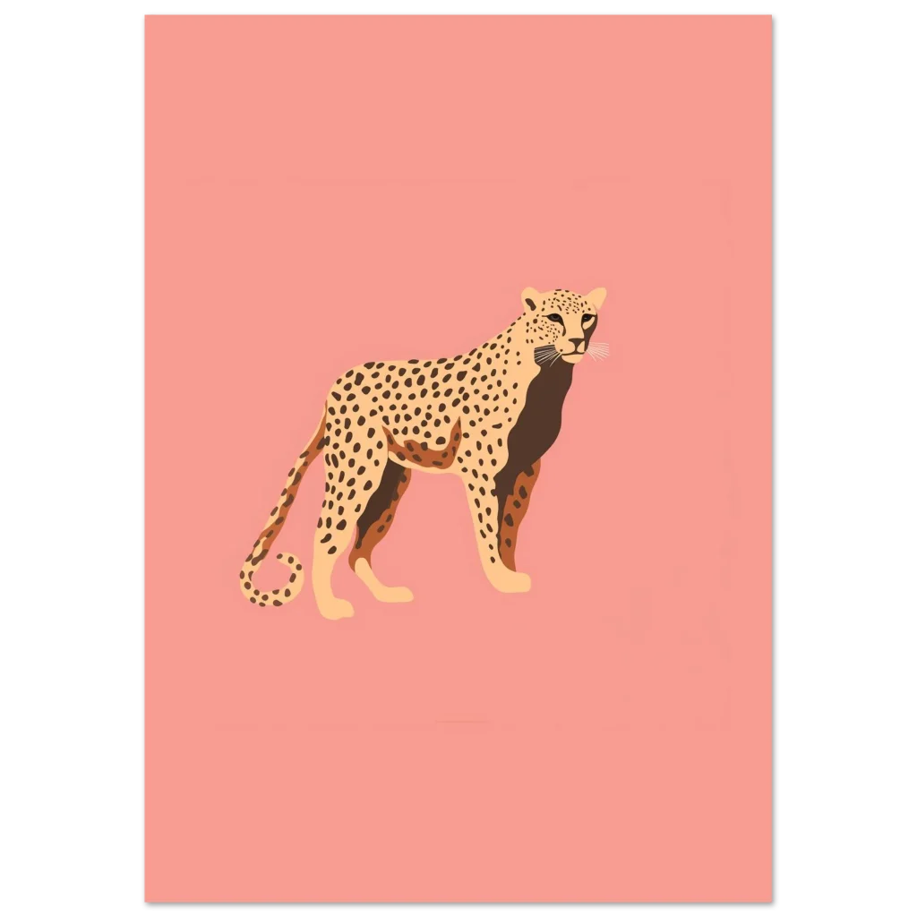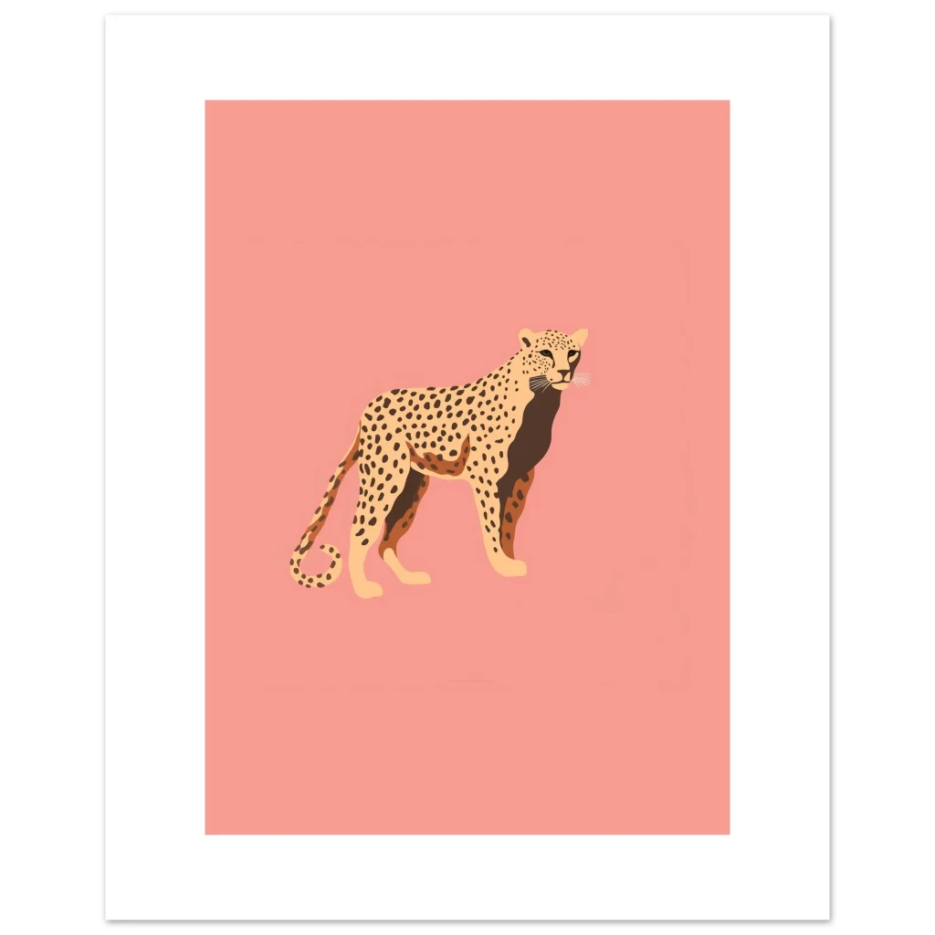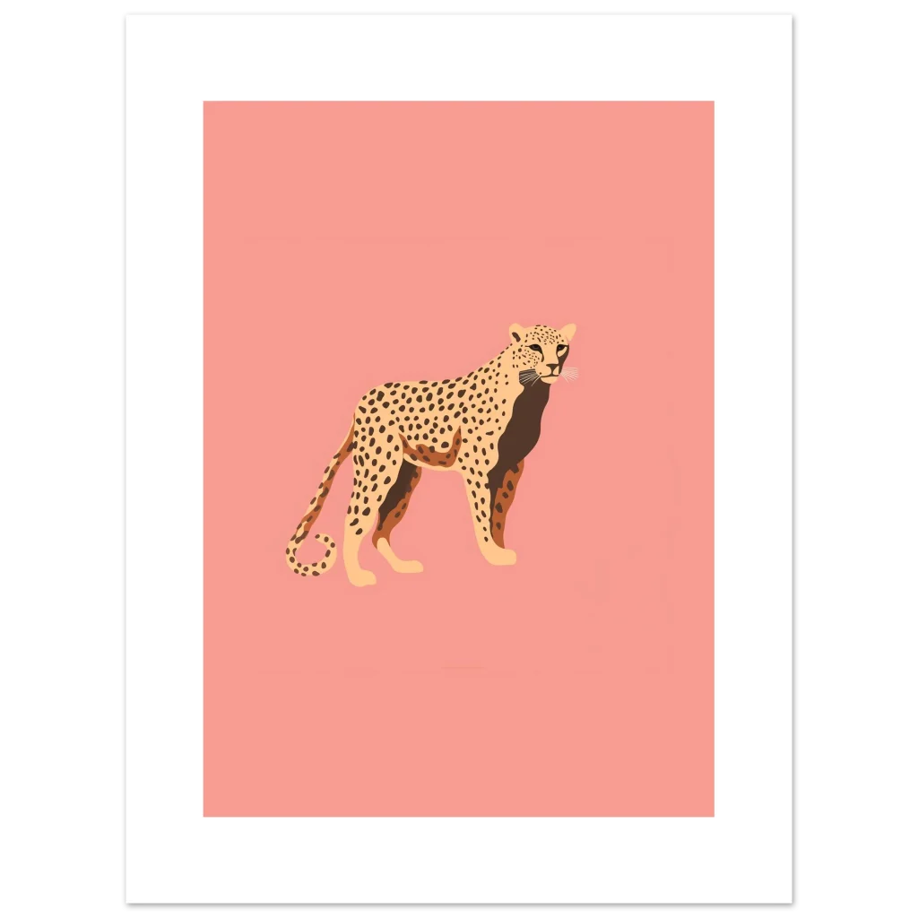 Unleash your inner wild with our captivating minimalist leopard art print. This stunning design, featuring a sleek leopard on a soft coral backdrop, brings a blend of sophisticated charm and untamed beauty to any space. Experience art that feels silky to the touch with our high-quality, lighter-weight, classic semi-glossy paper, designed to make the vibrant colors pop.