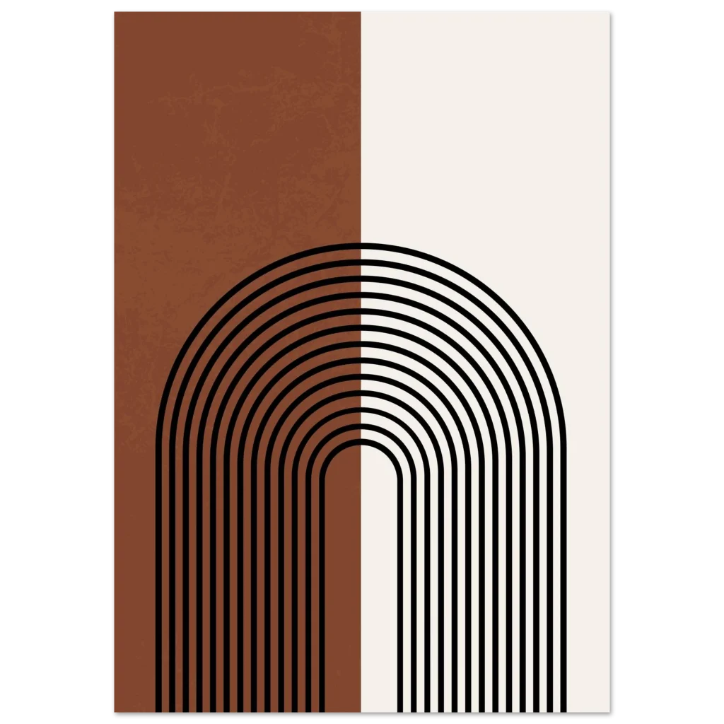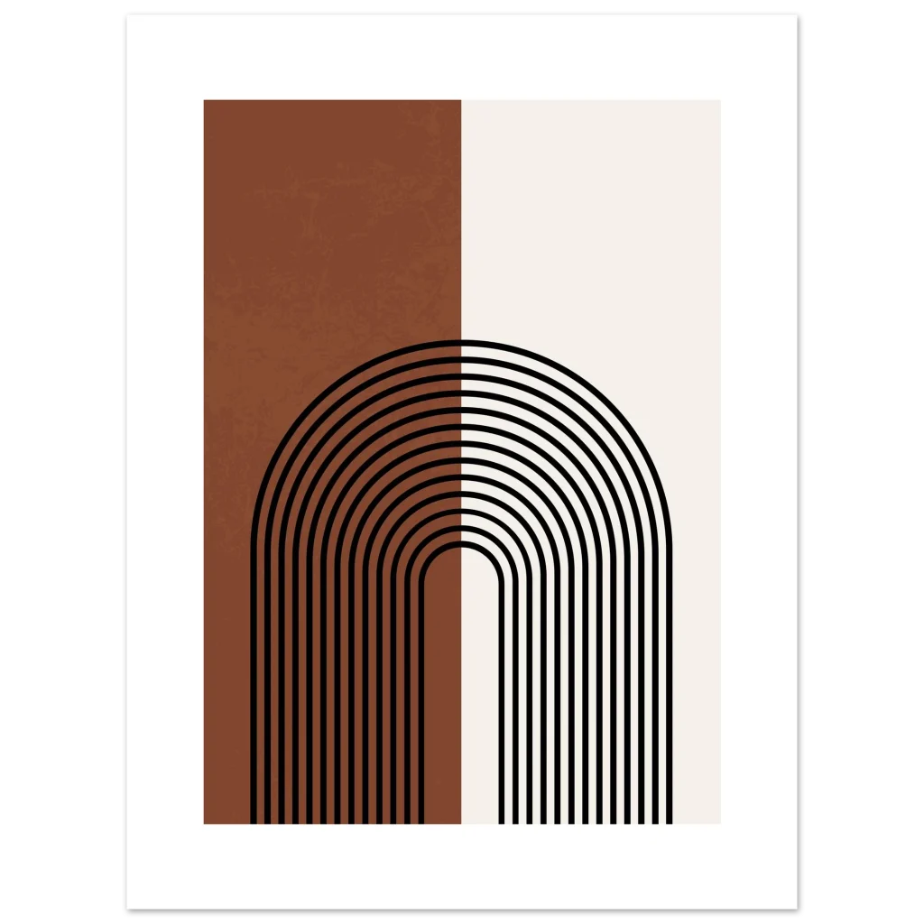 Infuse your living space with the warm, serene aesthetic of our Minimalist Terracotta Arc Poster. This captivating piece features a striking abstract design with elegant black arcs, beautifully contrasted against a split background of earthy terracotta and creamy beige. The clean lines and soothing color palette create a harmonious balance, perfect for adding a touch of modern bohemian sophistication to any room.