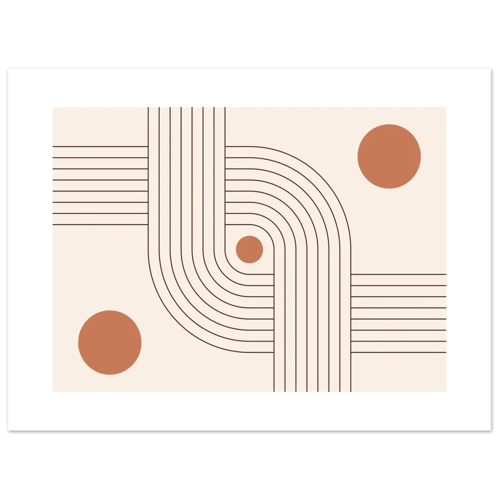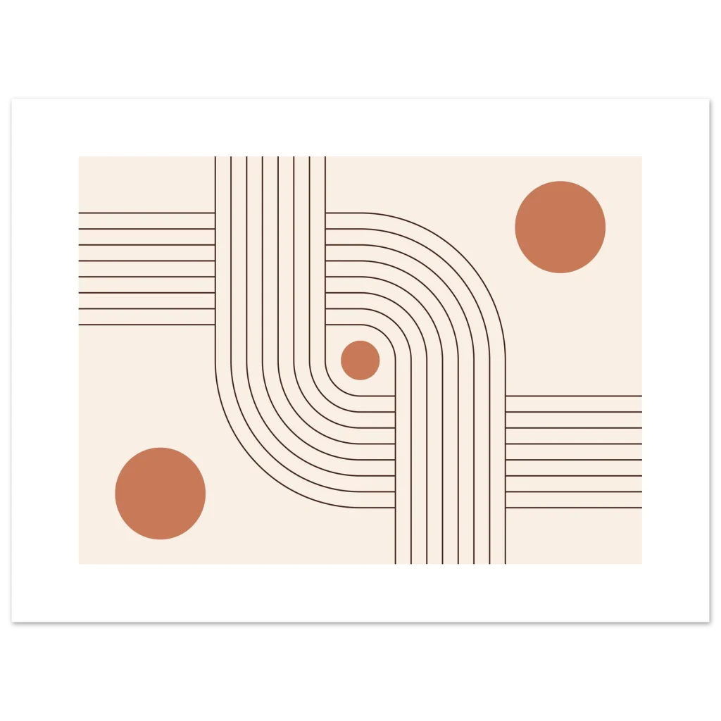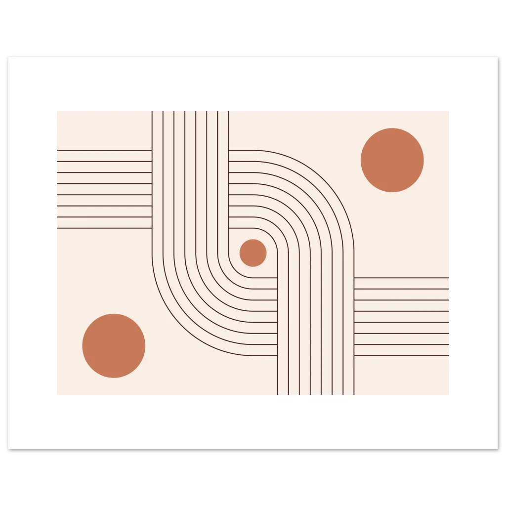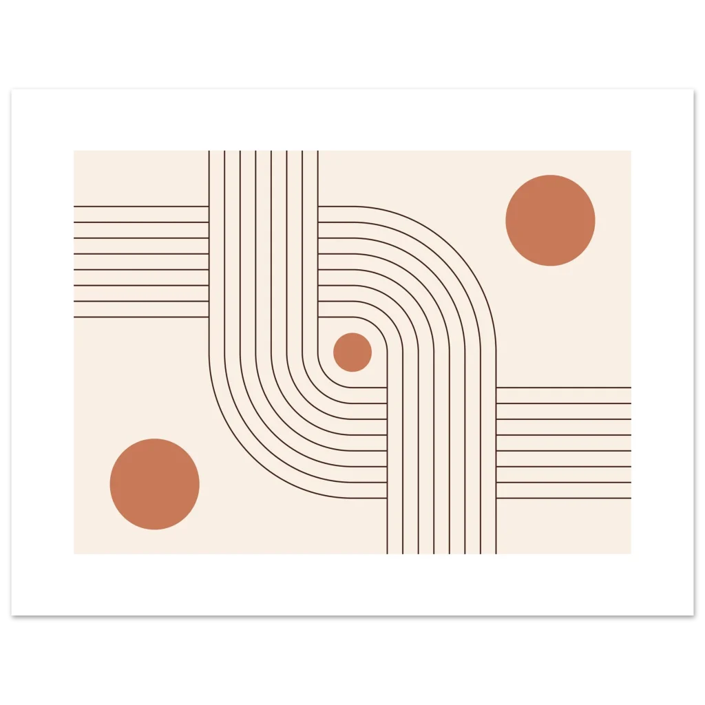 Infuse your space with modern elegance and a sense of calm with our Minimalist Terracotta Curves & Lines Art Print. This design, featuring soft terracotta circles harmoniously intertwined with elegant, flowing lines on a warm, neutral background, embodies sophisticated simplicity. It’s a perfect piece to add an earthy, organic yet contemporary touch to any room, creating a serene and inviting atmosphere.
