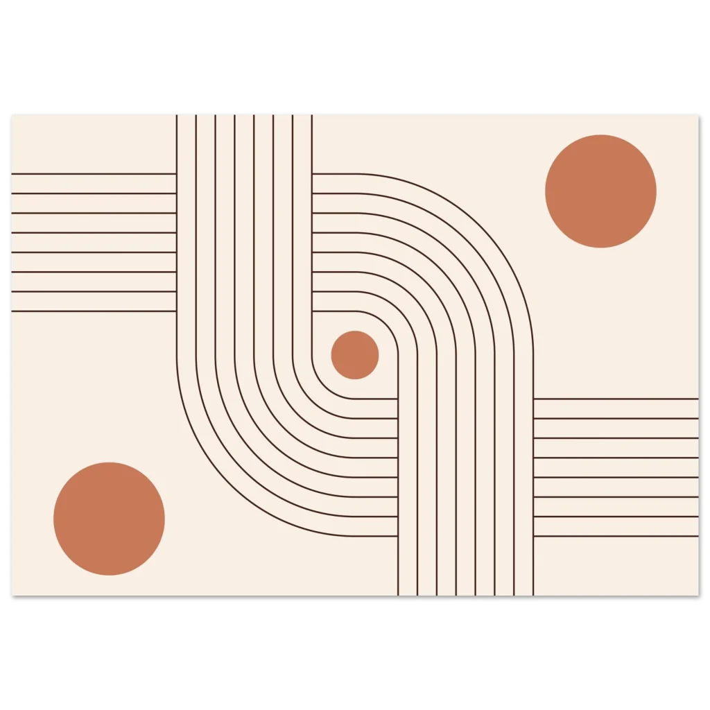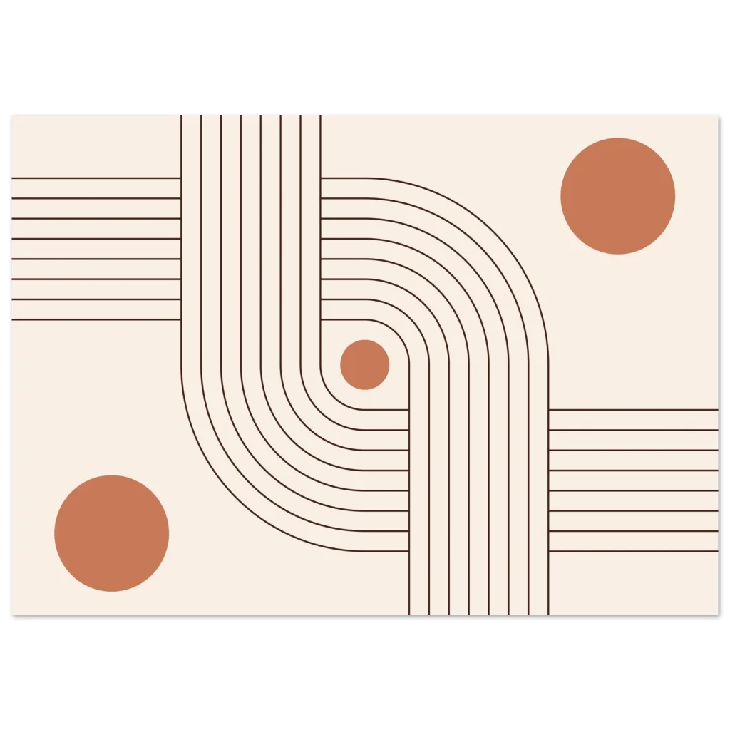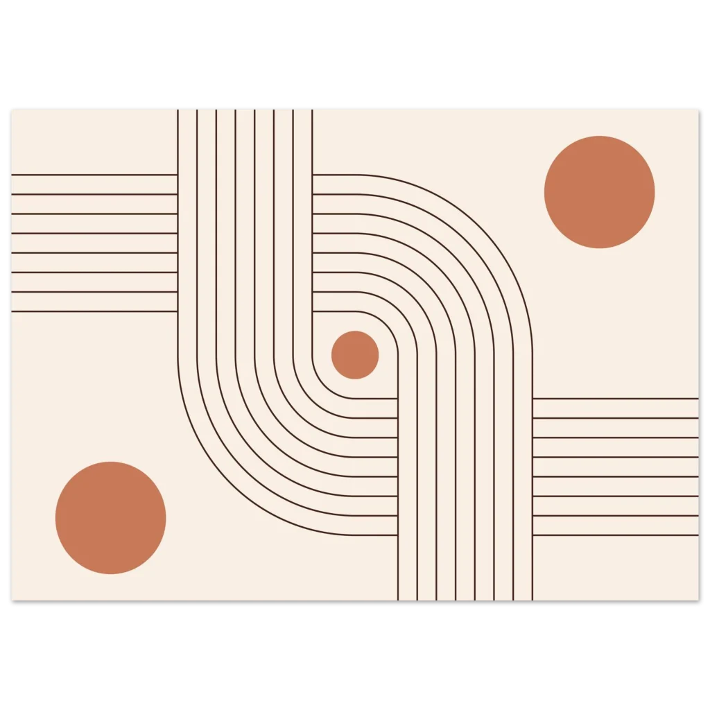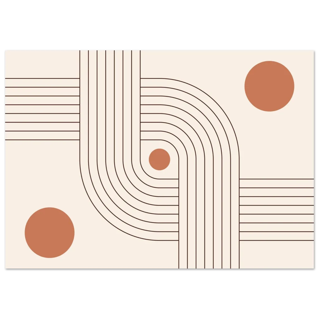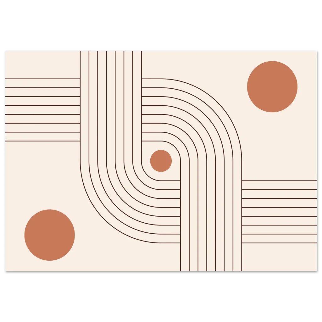 Infuse your space with modern elegance and a sense of calm with our Minimalist Terracotta Curves & Lines Art Print. This design, featuring soft terracotta circles harmoniously intertwined with elegant, flowing lines on a warm, neutral background, embodies sophisticated simplicity. It’s a perfect piece to add an earthy, organic yet contemporary touch to any room, creating a serene and inviting atmosphere.