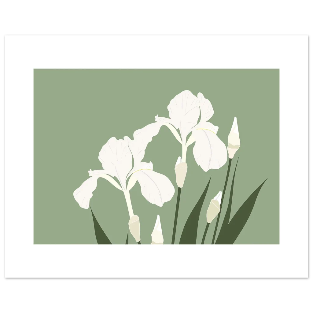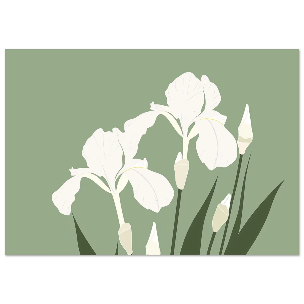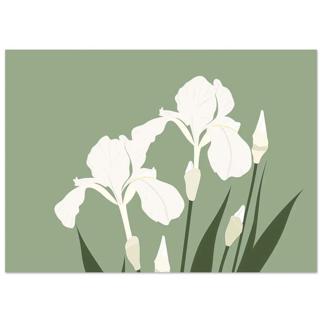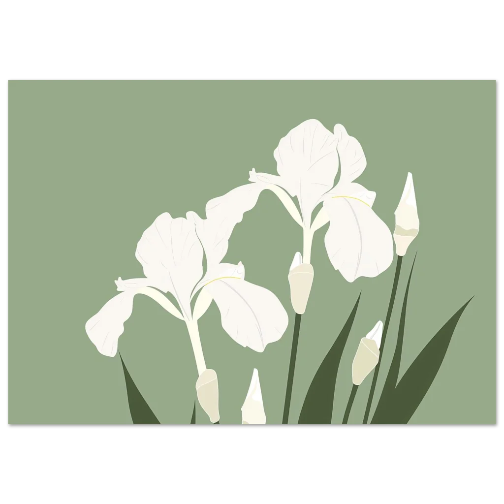 Minimalist White Iris Floral Art Print – Classic Semi-Glossy Paper Poster in Various Sizes