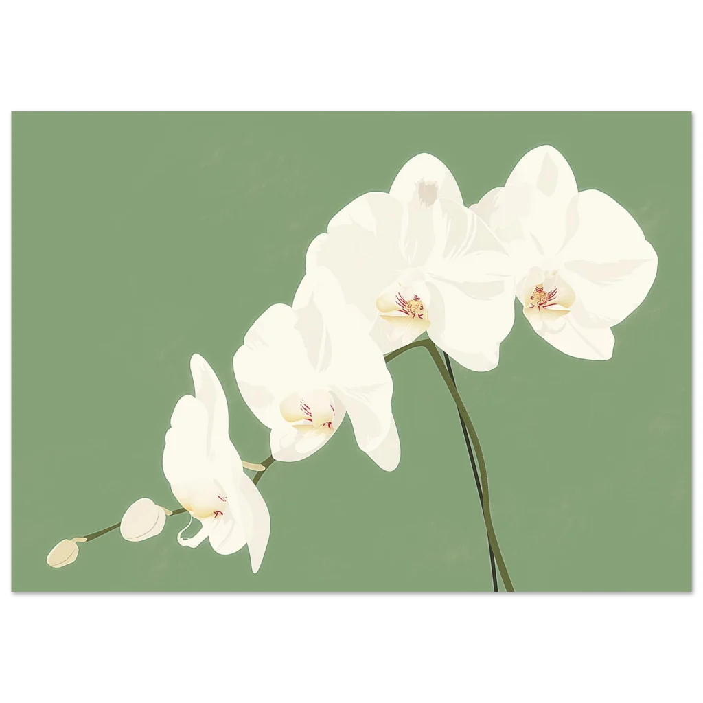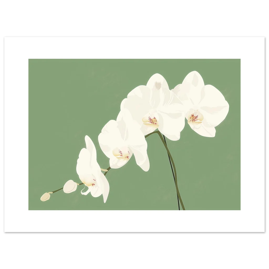 Bring a touch of serene elegance and natural beauty into your living space with our stunning White Orchid Botanical Print. Featuring delicate white orchids against a soothing sage green backdrop, this artwork captures the graceful simplicity of nature in a modern, minimalist style. It’s the perfect piece to create a calming focal point in any room, adding a subtle yet sophisticated flourish to your decor.