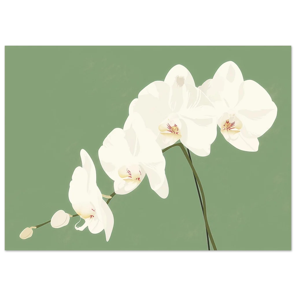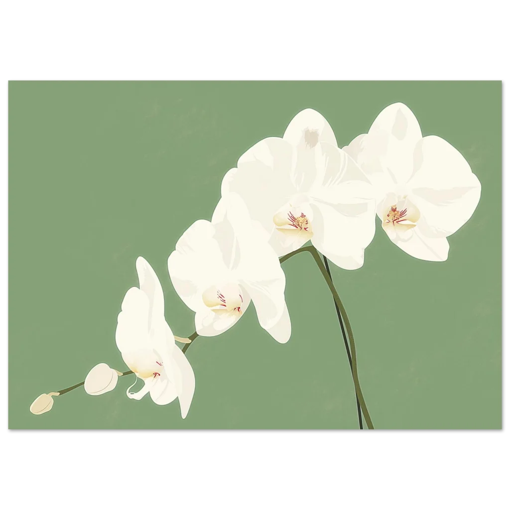 Minimalist White Orchid Botanical Print – Classic Semi-Glossy Paper Poster for Elegant Home Decor