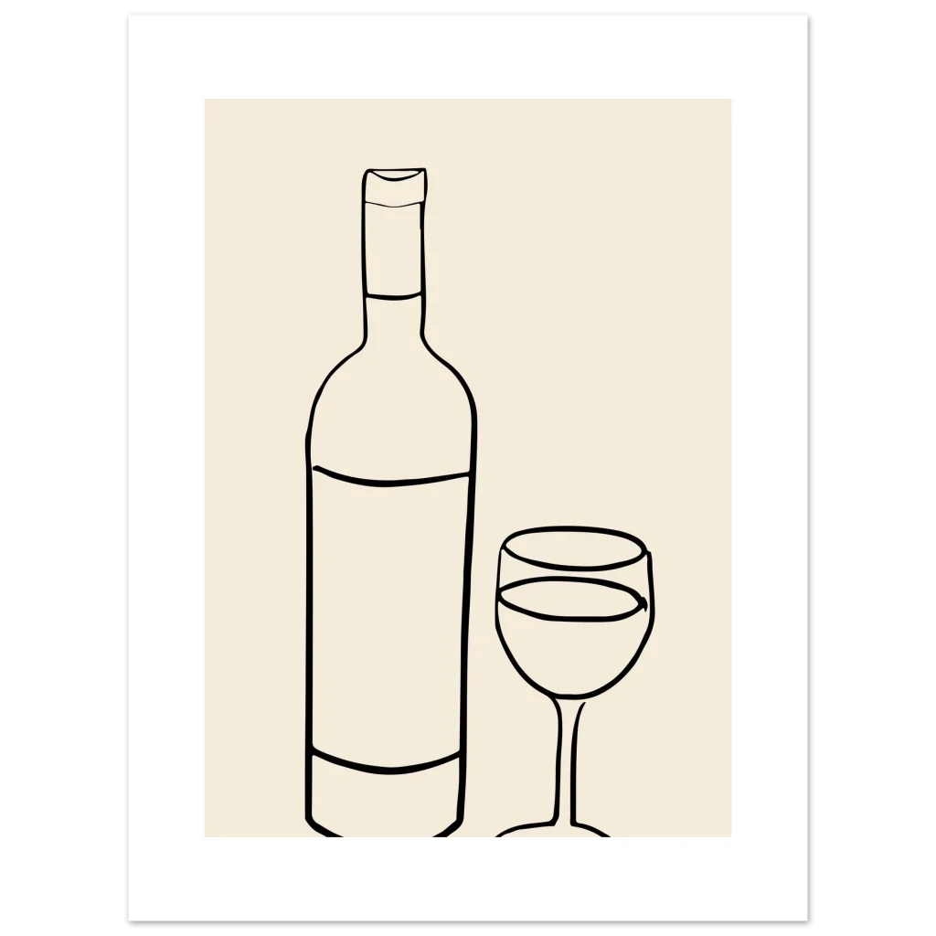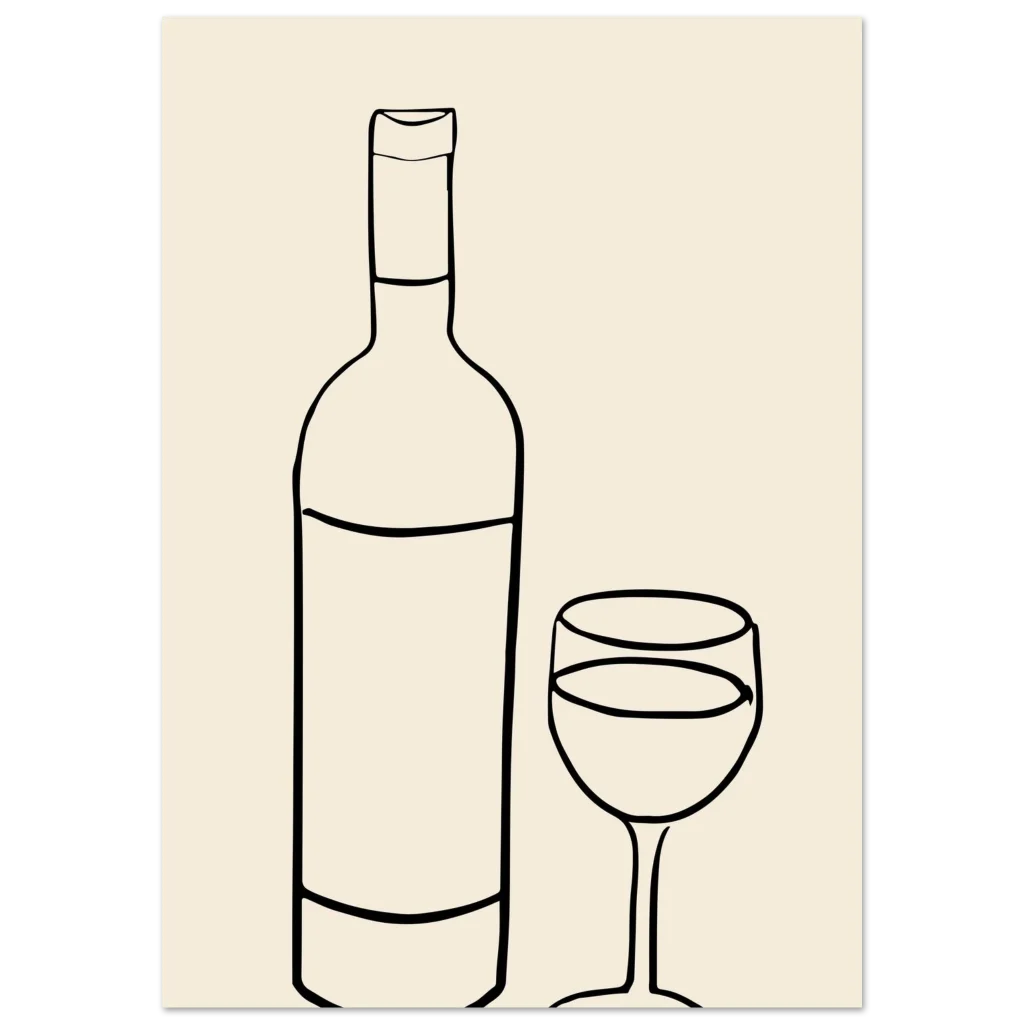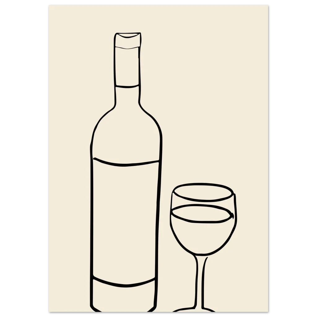 Minimalist Wine Bottle & Glass Line Art Poster – Classic Semi-Glossy Print