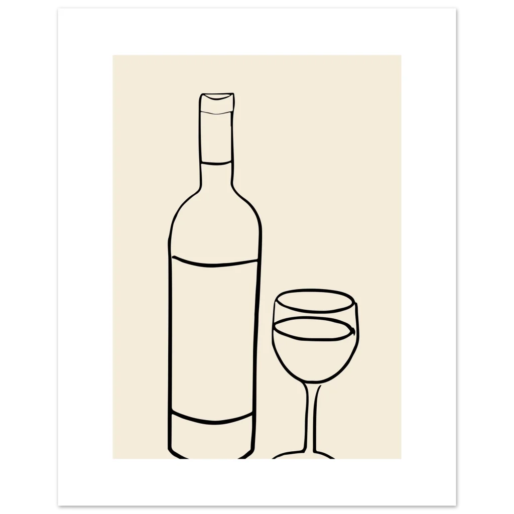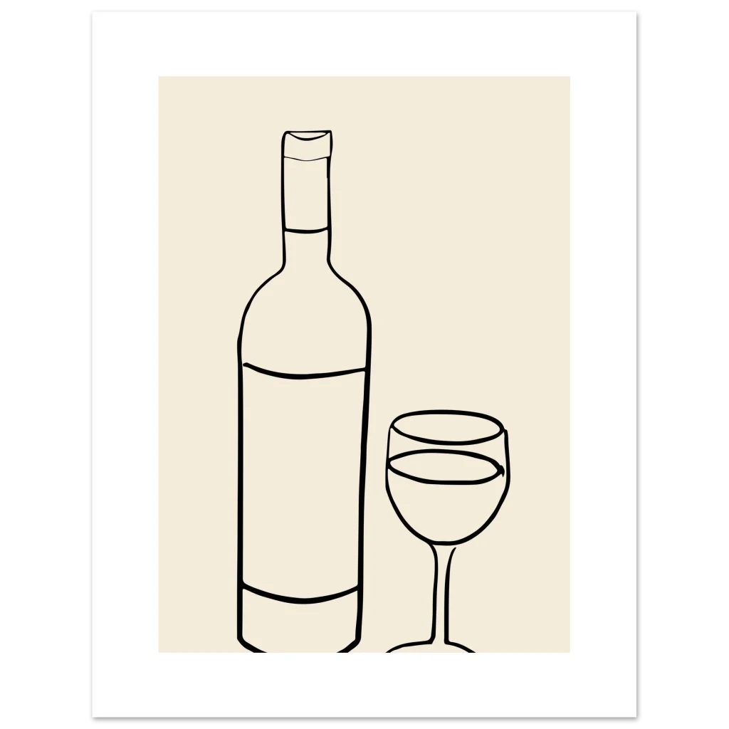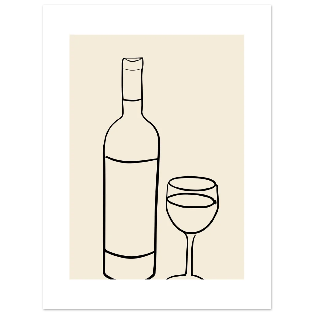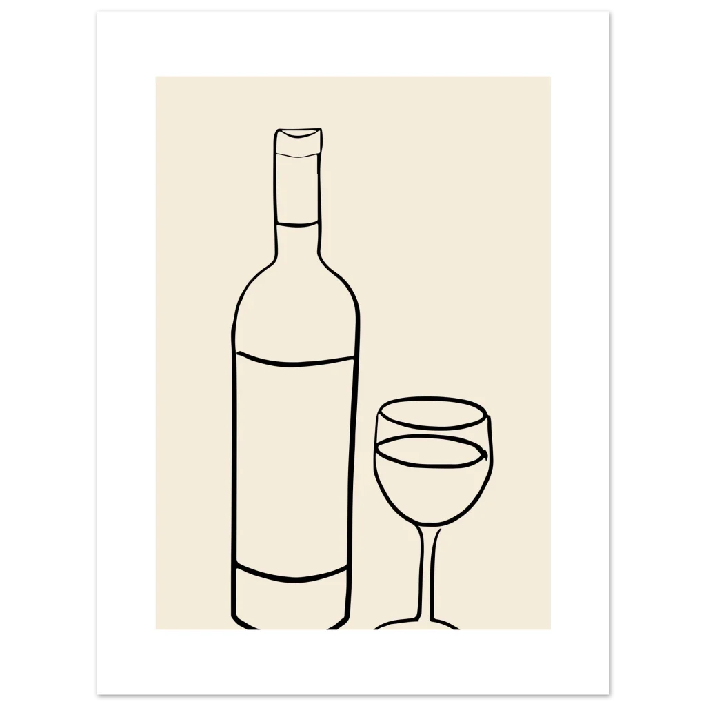 Minimalist Wine Bottle & Glass Line Art Poster – Classic Semi-Glossy Print