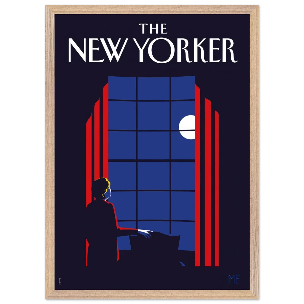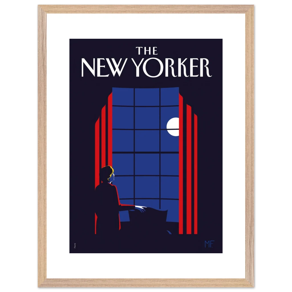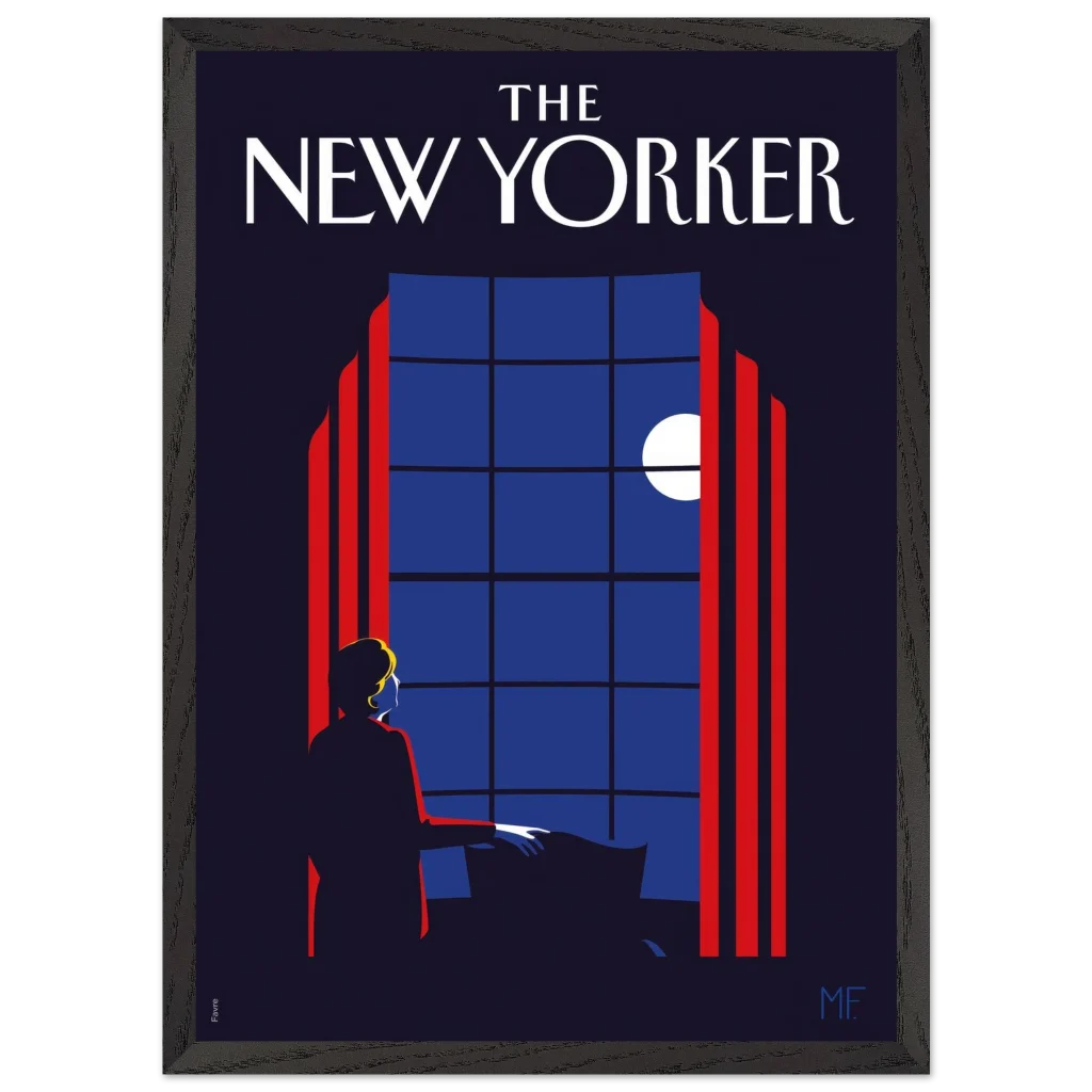 Moonlit Contemplation – The New Yorker Magazine Cover Premium Framed Art Print, Featuring Bold Colors and Iconic Style