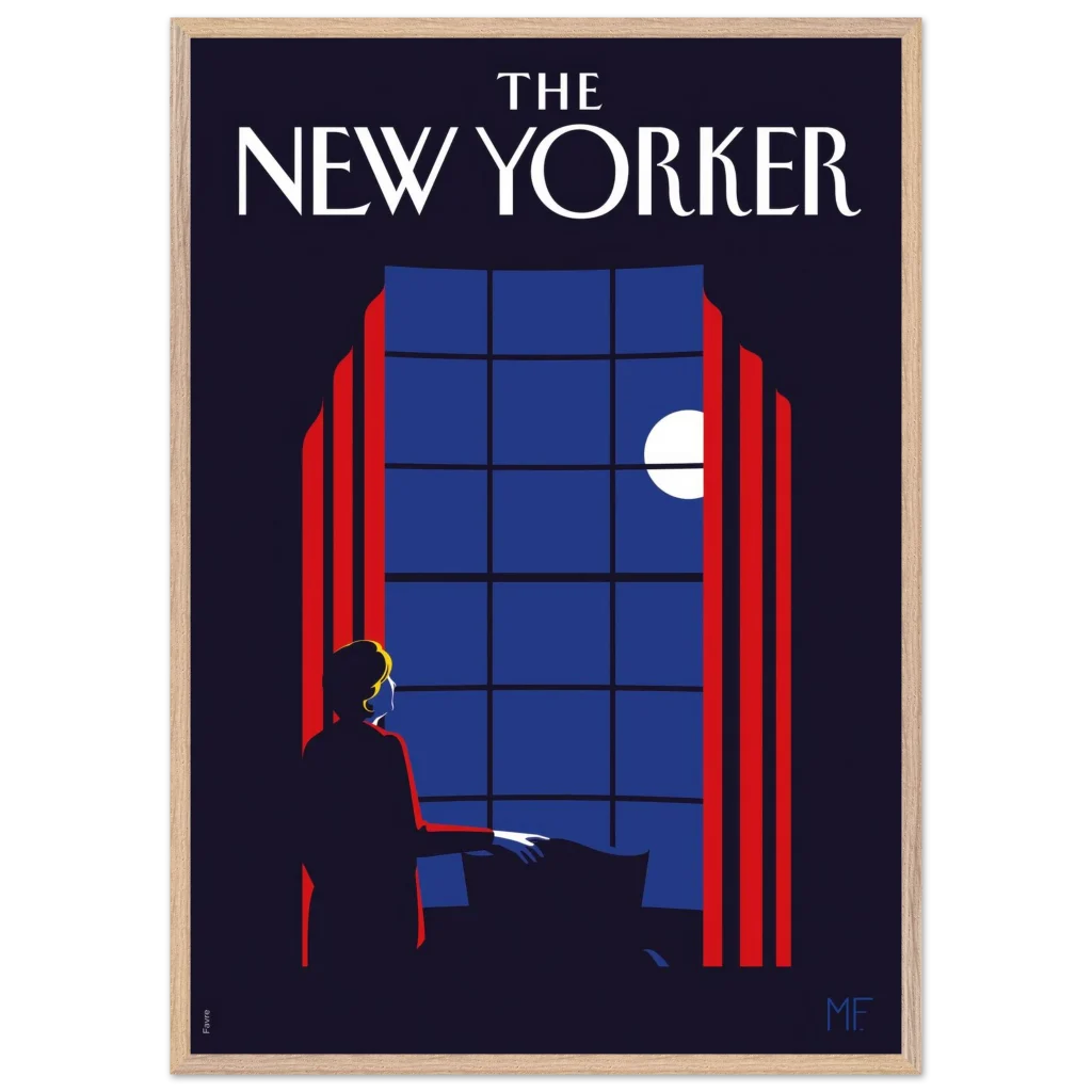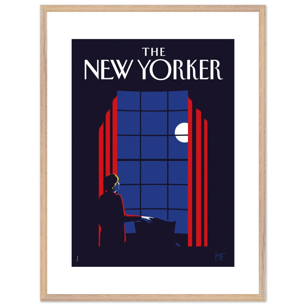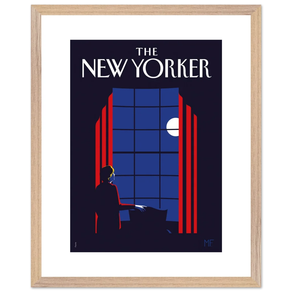 Moonlit Contemplation – The New Yorker Magazine Cover Premium Framed Art Print, Featuring Bold Colors and Iconic Style