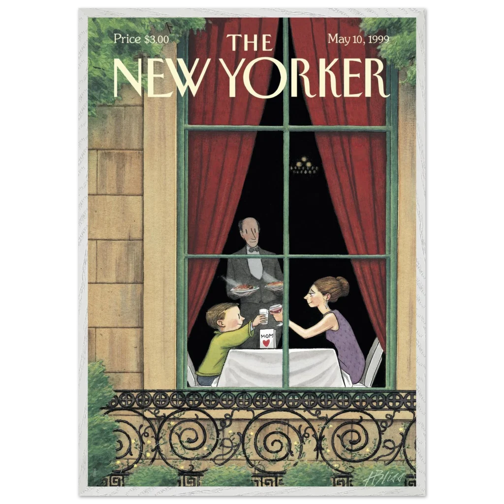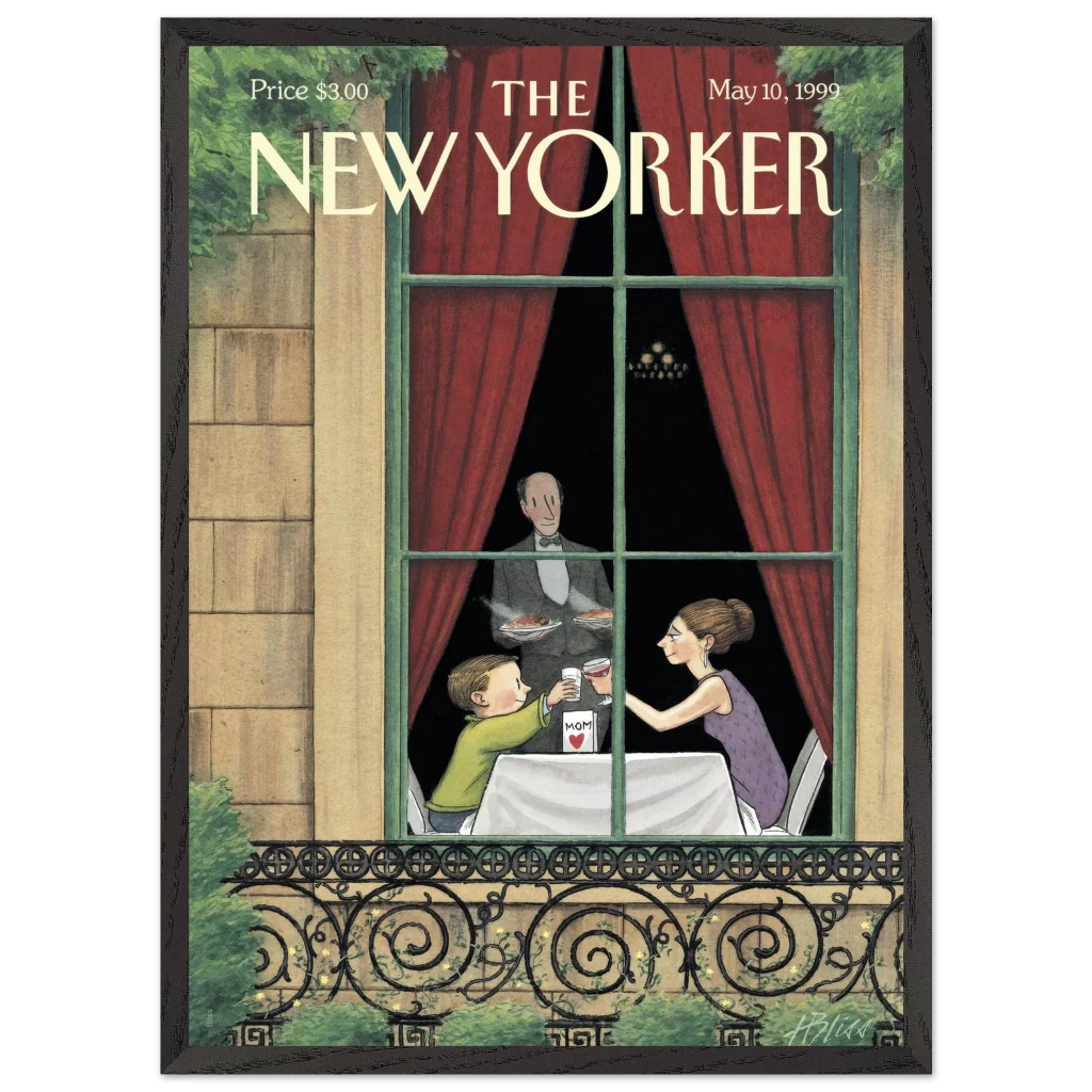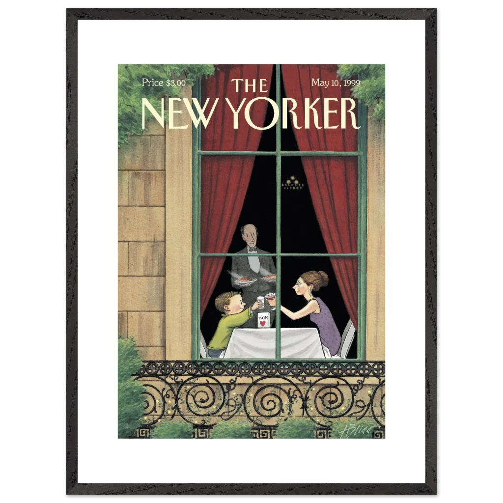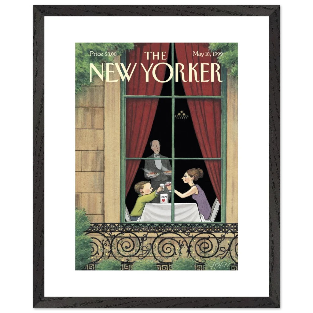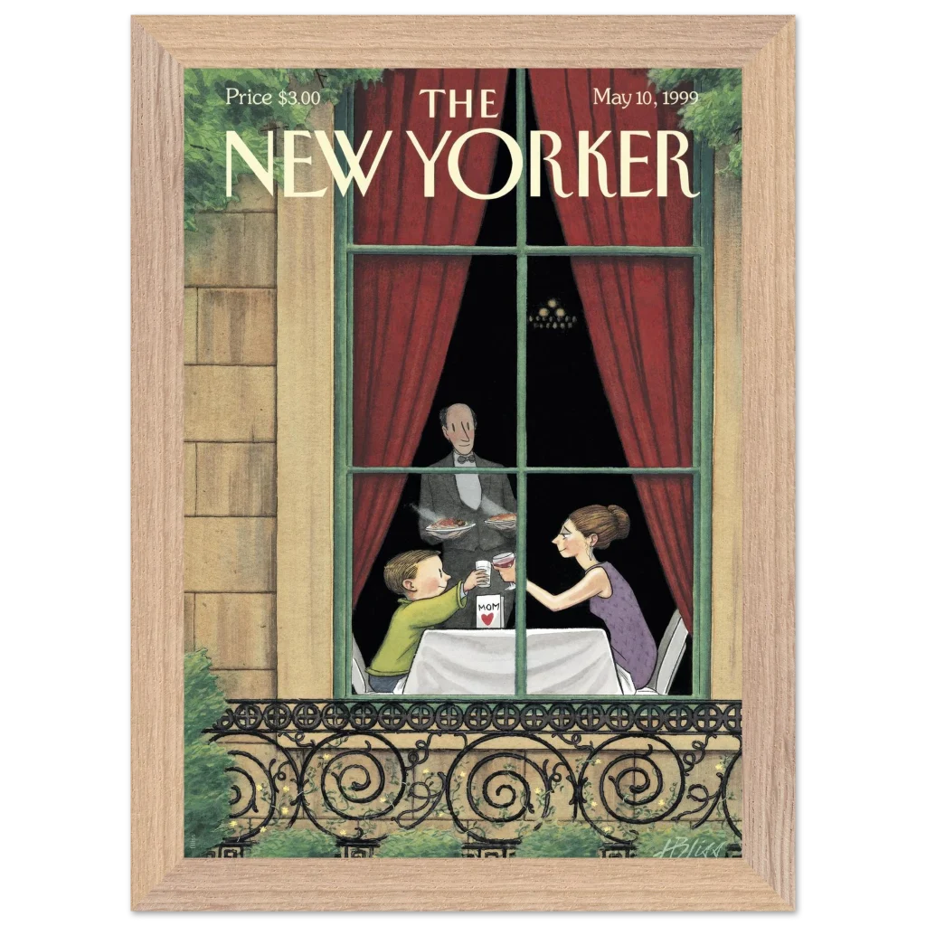Celebrate the enduring bond with Mom through art! This exquisite framed poster, featuring a heartwarming vintage New Yorker cover, captures a tender Mother’s Day toast. It’s the perfect way to bring a touch of nostalgic charm and sentimentality to her living space, reminding her of cherished moments every day.