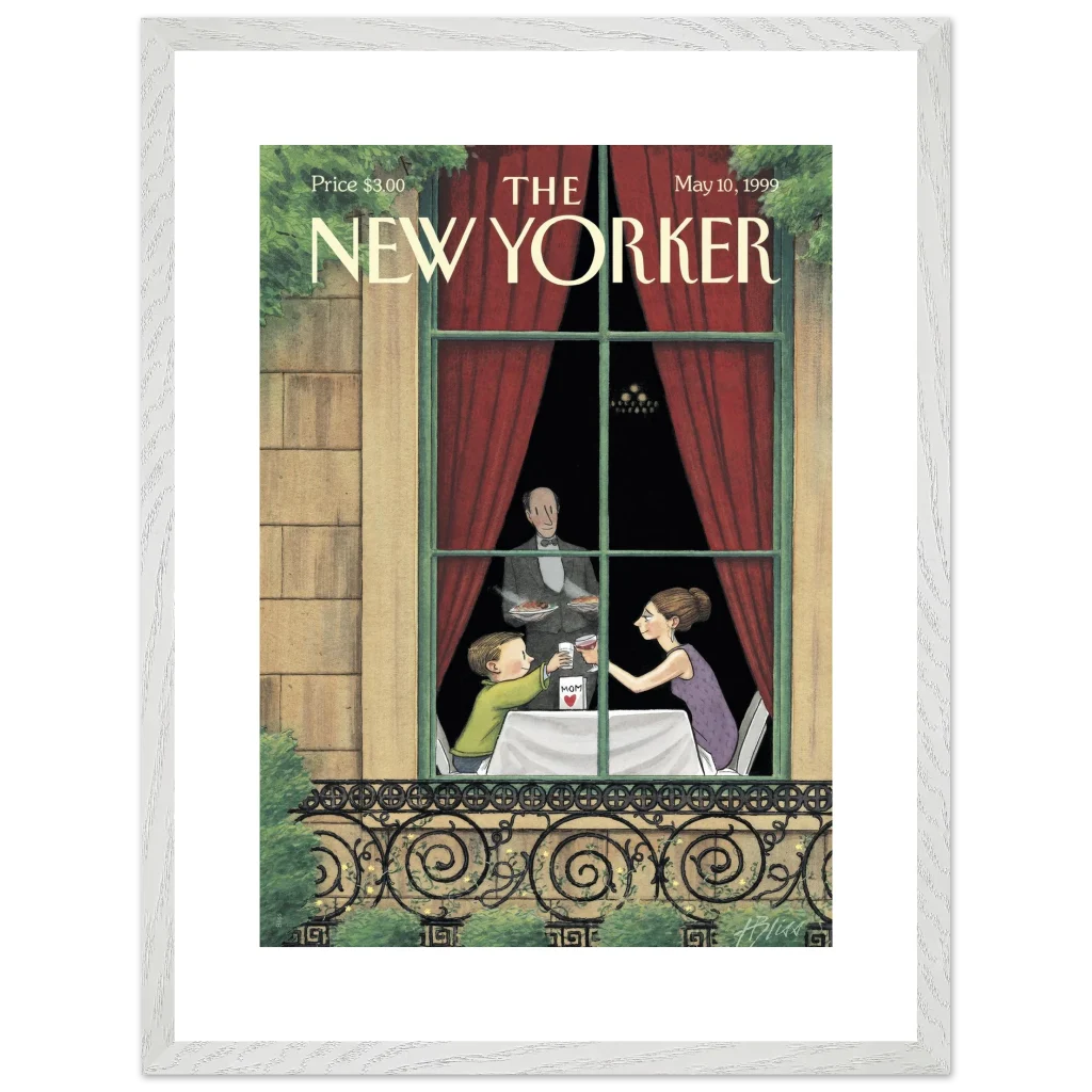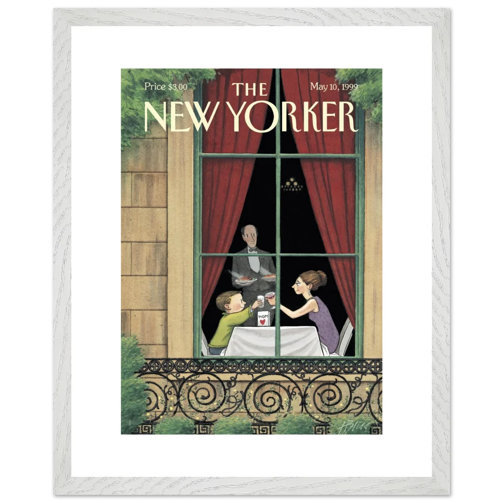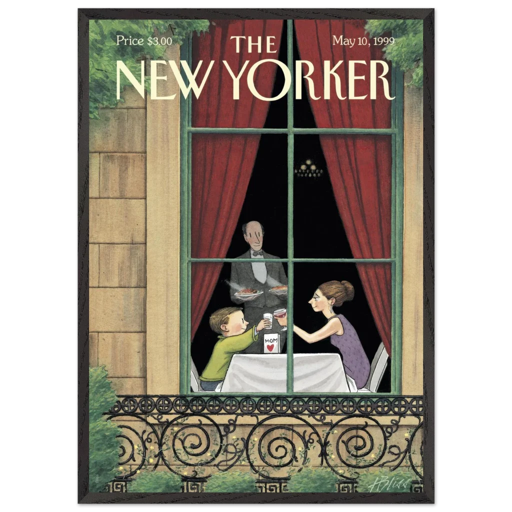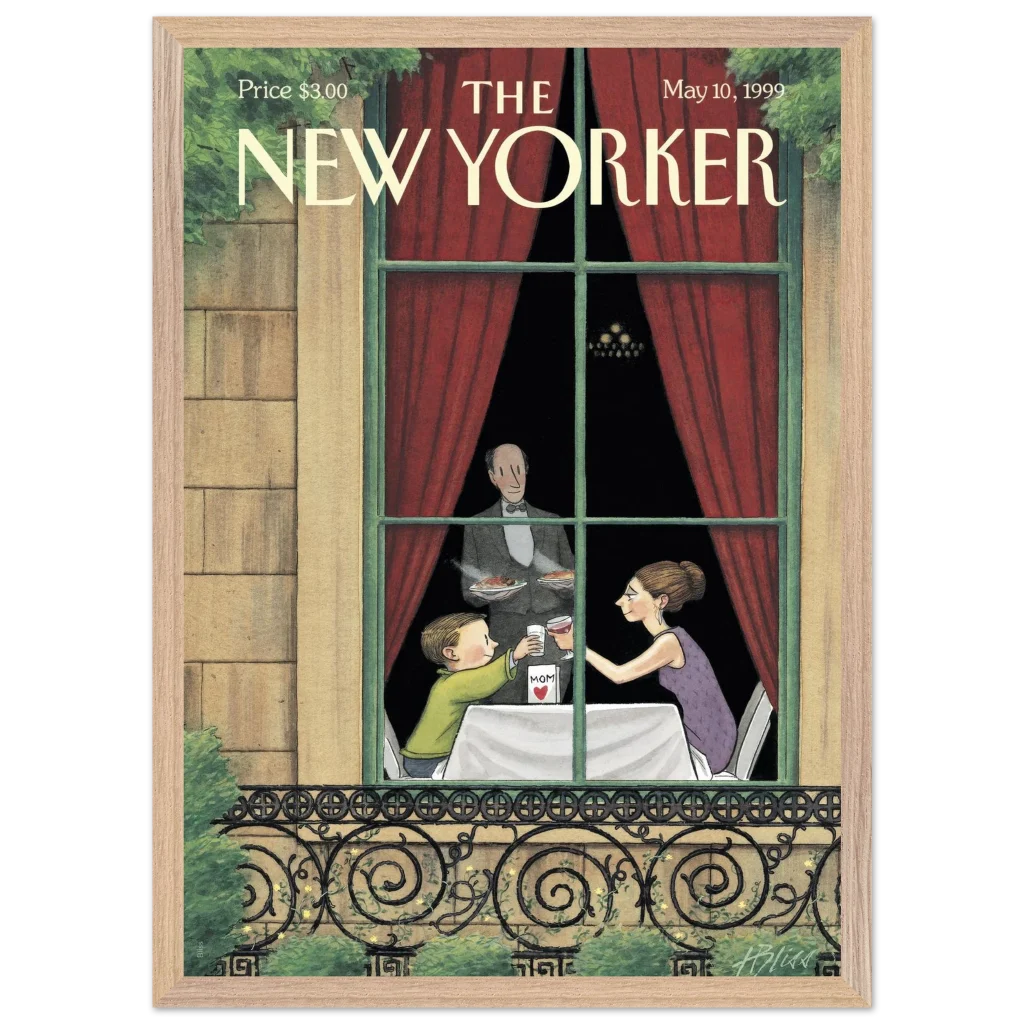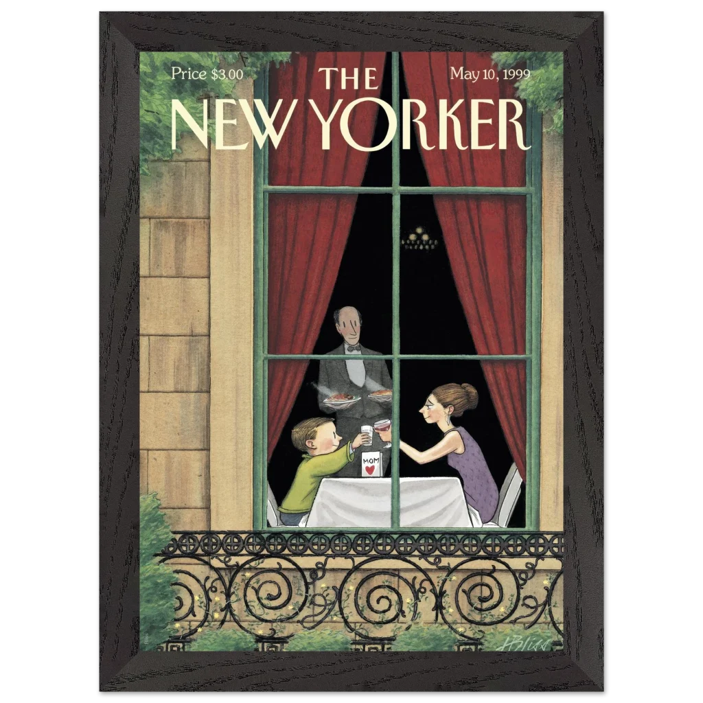 Celebrate the enduring bond with Mom through art! This exquisite framed poster, featuring a heartwarming vintage New Yorker cover, captures a tender Mother’s Day toast. It’s the perfect way to bring a touch of nostalgic charm and sentimentality to her living space, reminding her of cherished moments every day.