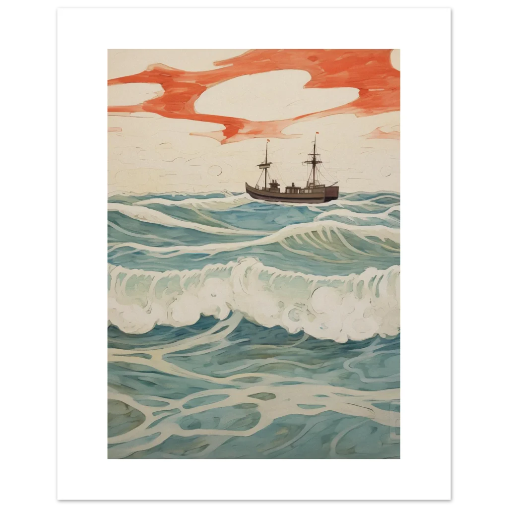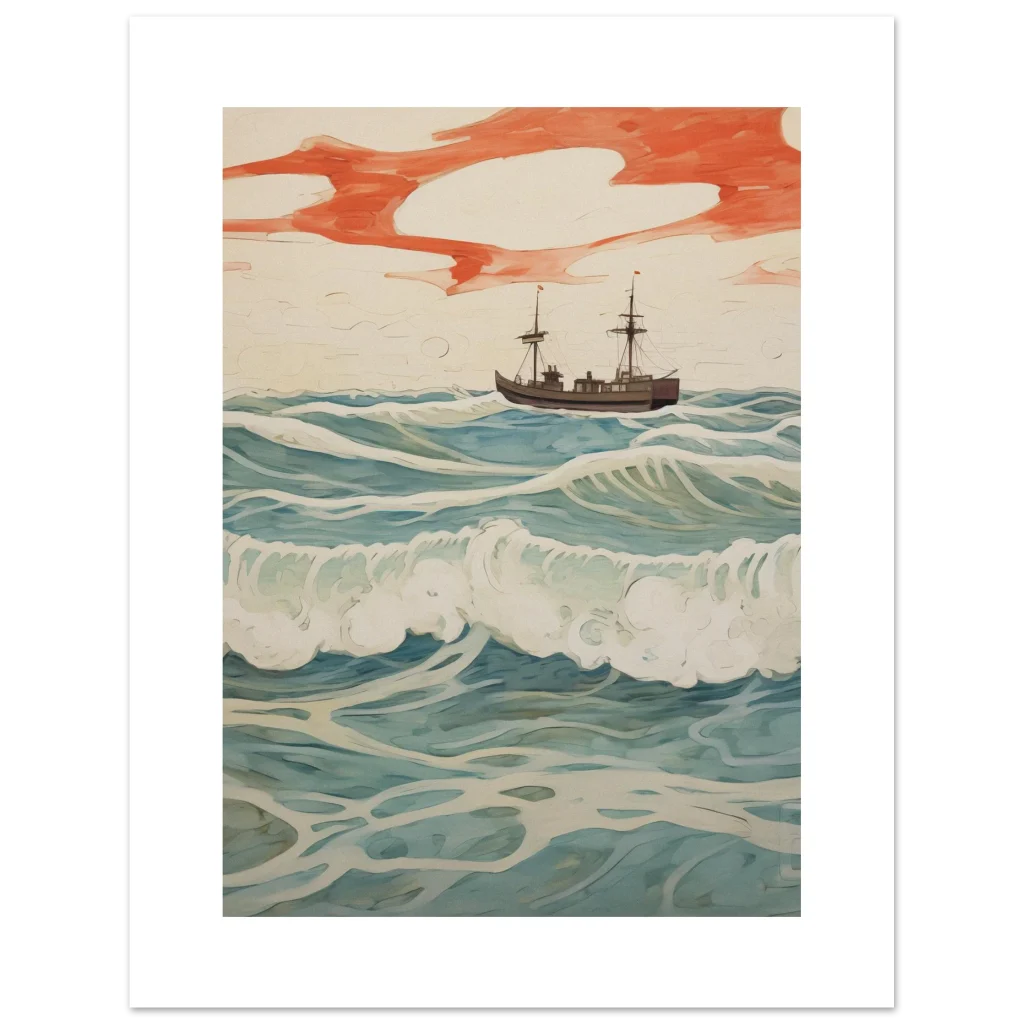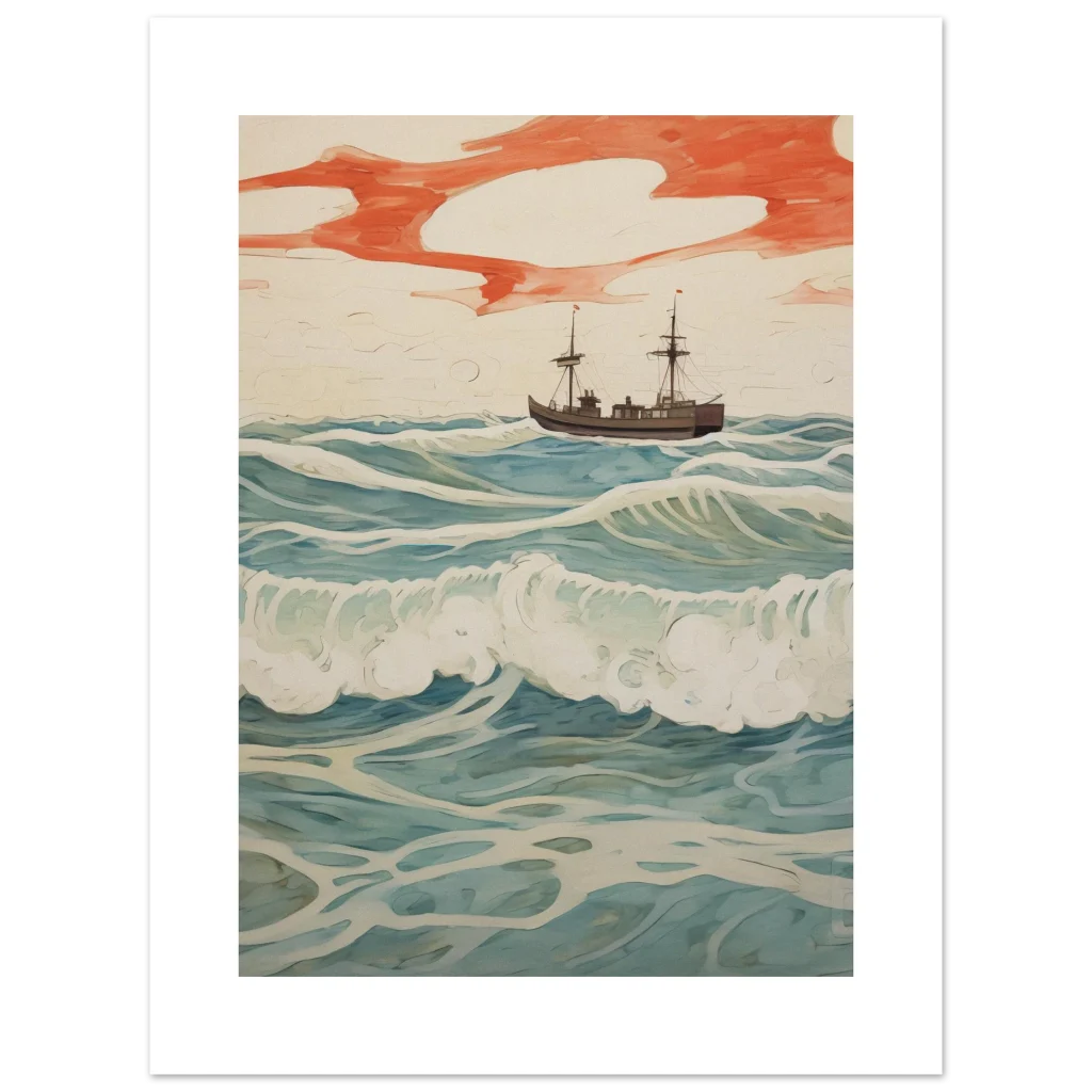 Nautical Voyager: Ship on Stormy Seas Art Print – Premium Matte Paper Poster in Various Sizes