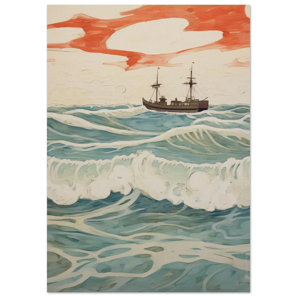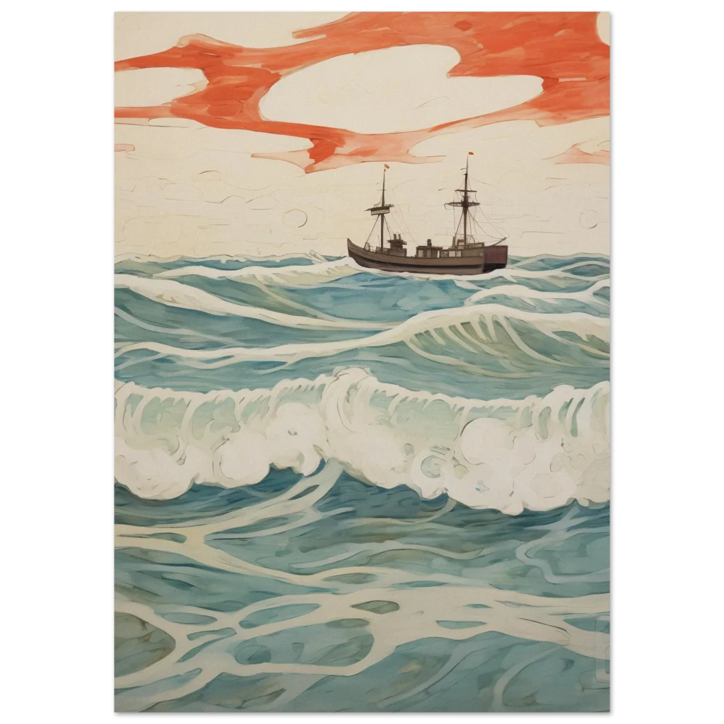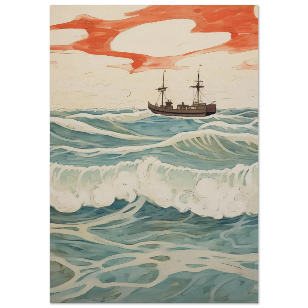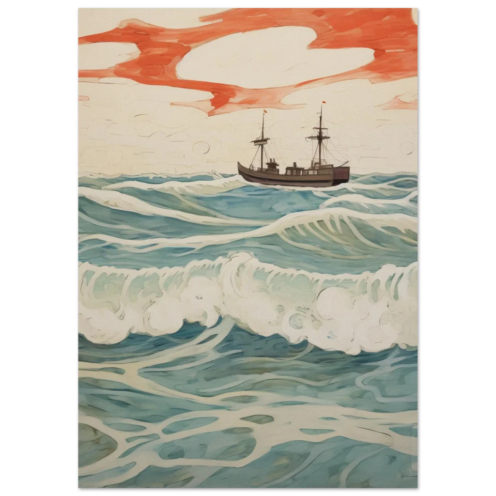Nautical Voyager: Ship on Stormy Seas Art Print – Premium Matte Paper Poster in Various Sizes