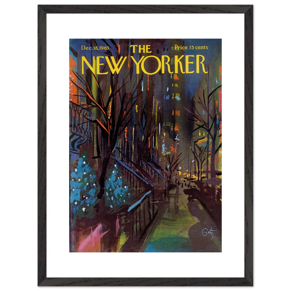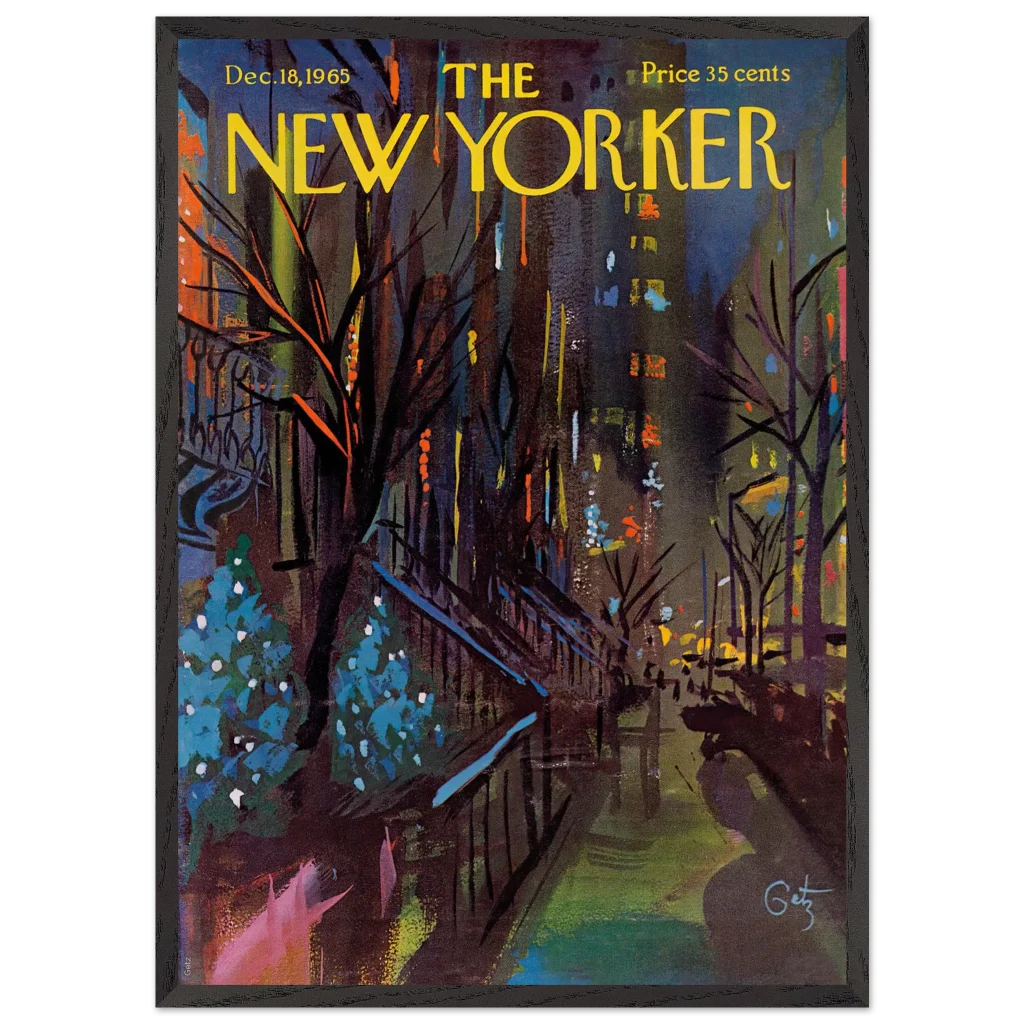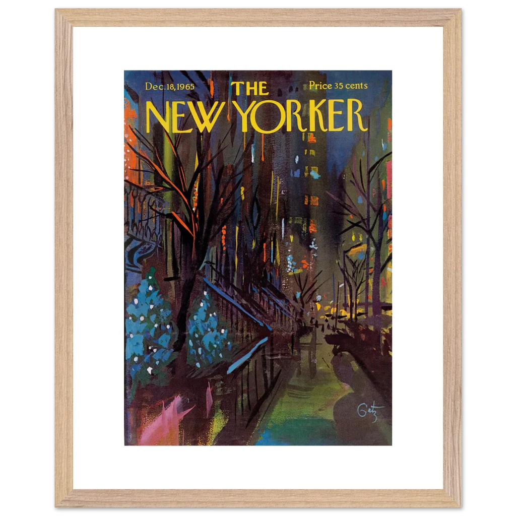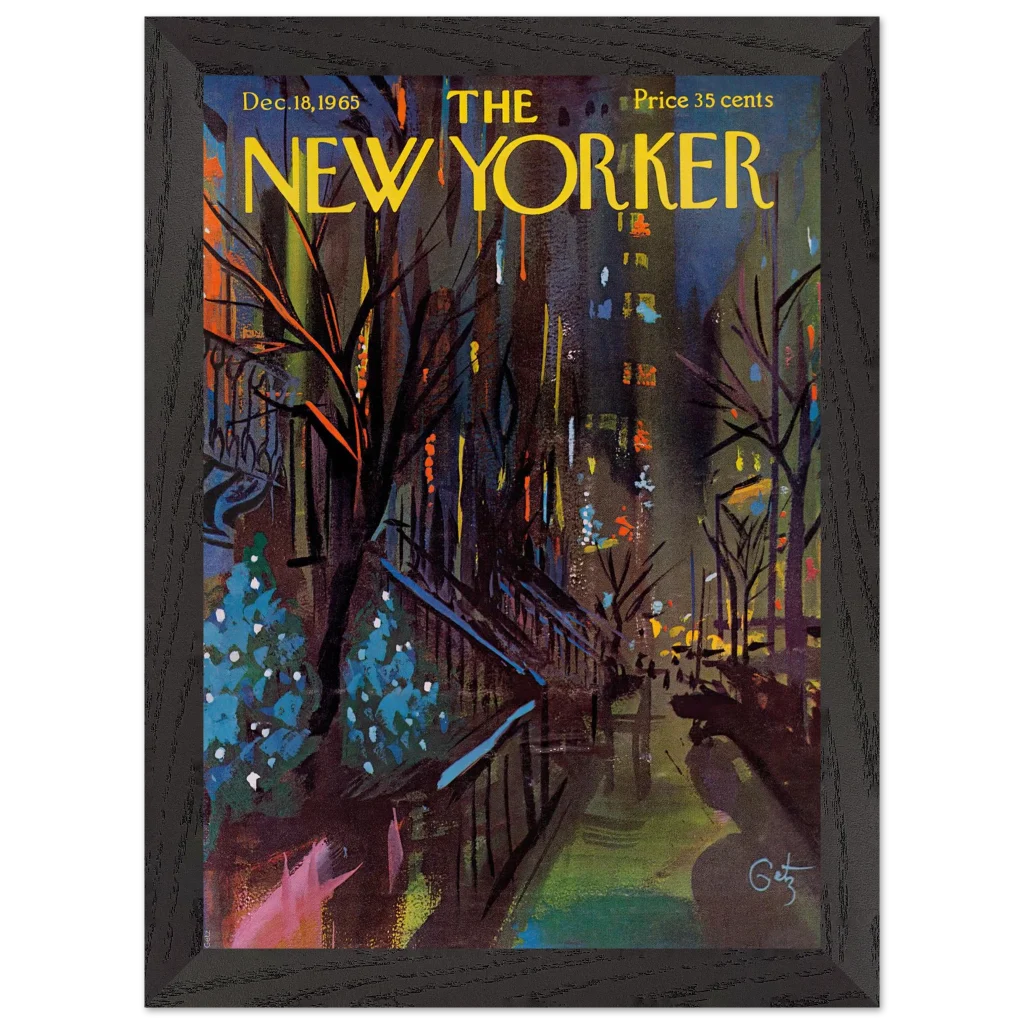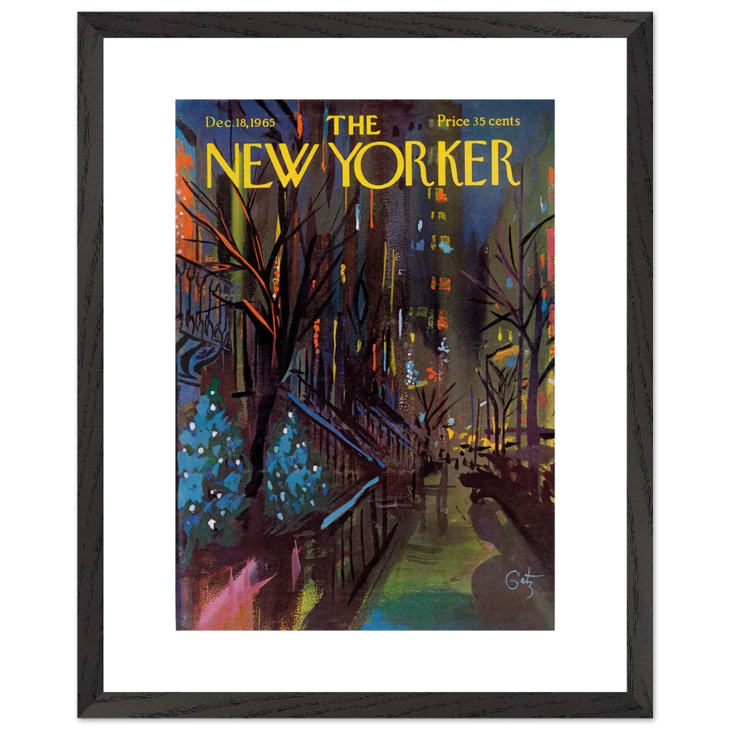Immerse yourself in the enchanting glow of a New York Christmas Eve with this captivating impressionistic art print. Inspired by the classic New Yorker cover from December 18, 1965, this piece captures the festive spirit and vibrant energy of the city’s holiday season with a rich, abstract palette. It’s perfect for art lovers seeking a unique blend of nostalgia and contemporary style to brighten their living space.