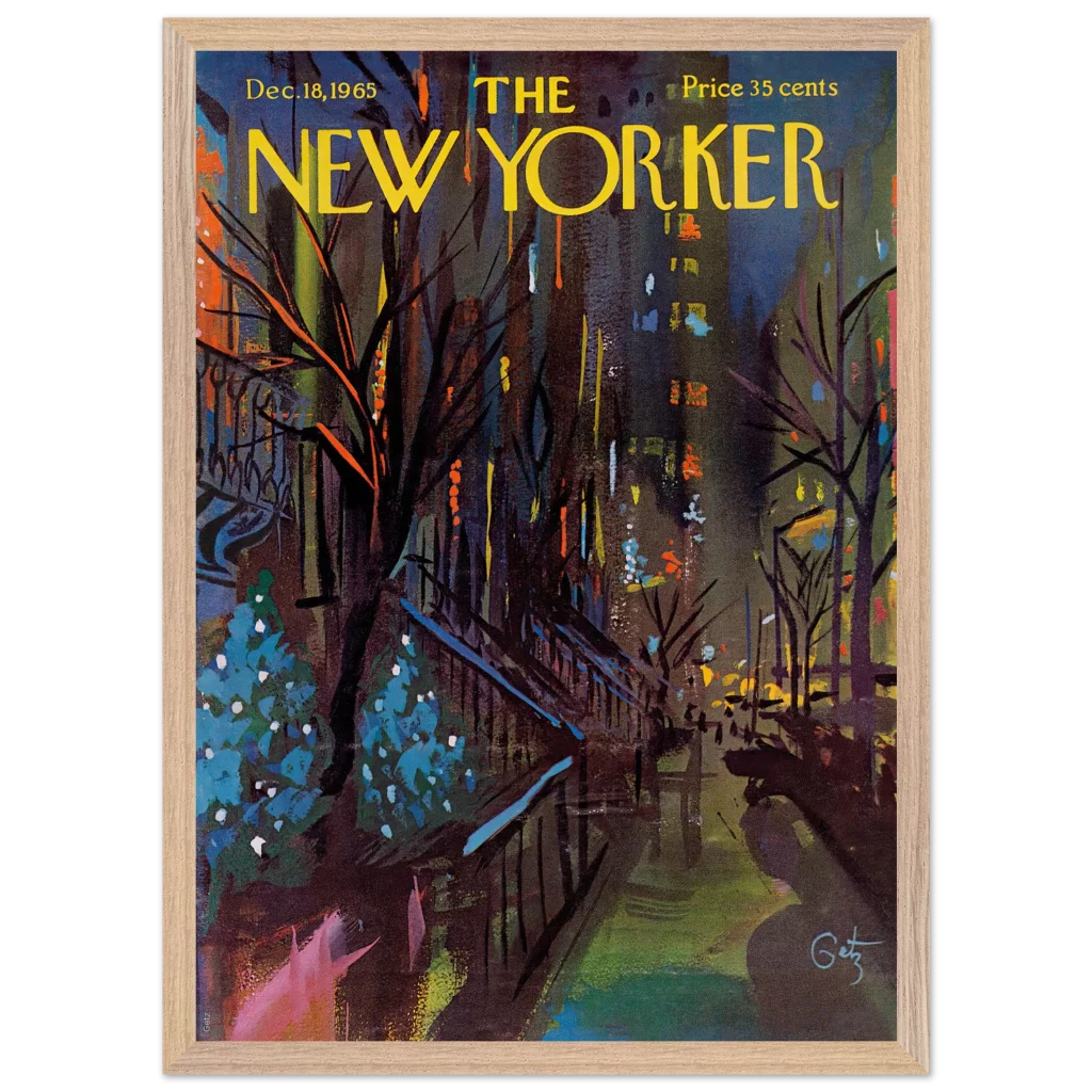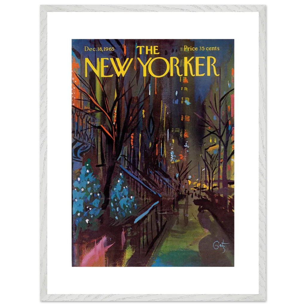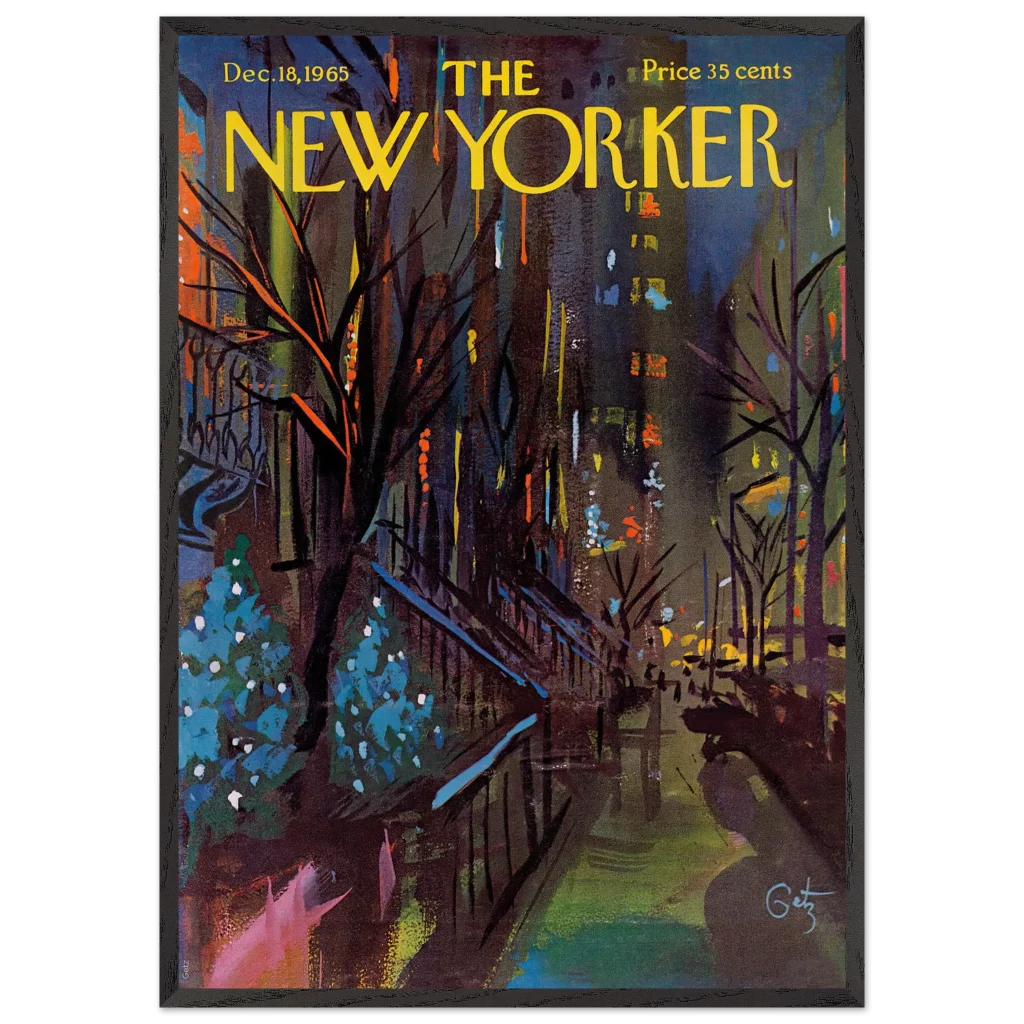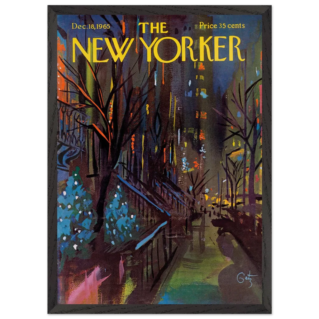 Immerse yourself in the enchanting glow of a New York Christmas Eve with this captivating impressionistic art print. Inspired by the classic New Yorker cover from December 18, 1965, this piece captures the festive spirit and vibrant energy of the city’s holiday season with a rich, abstract palette. It’s perfect for art lovers seeking a unique blend of nostalgia and contemporary style to brighten their living space.