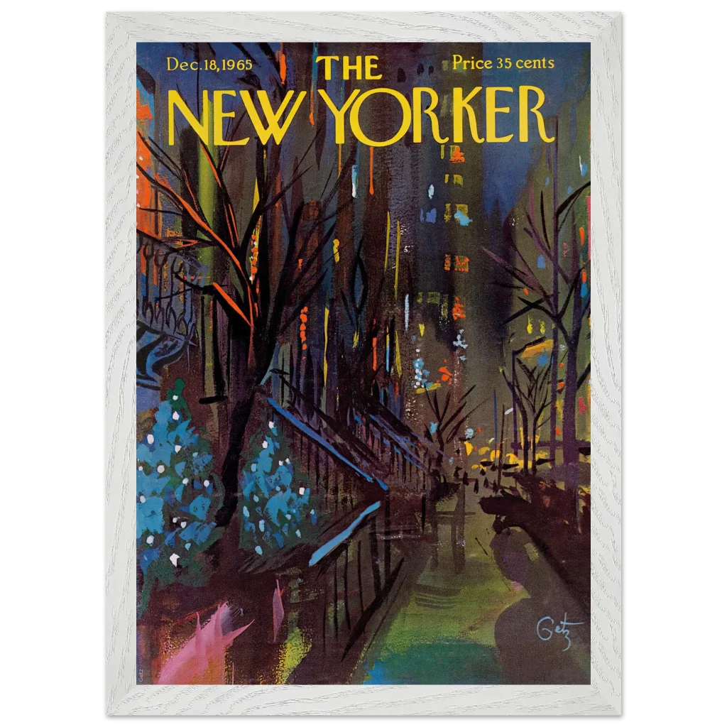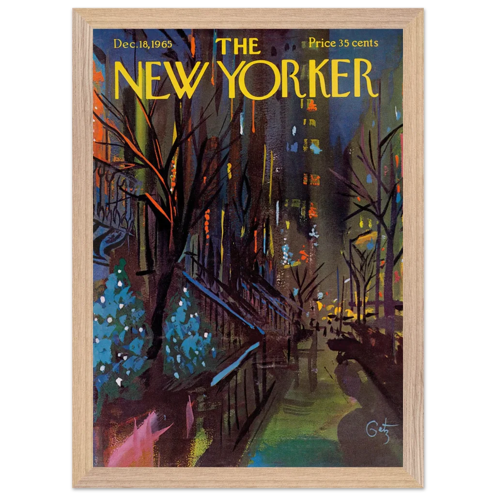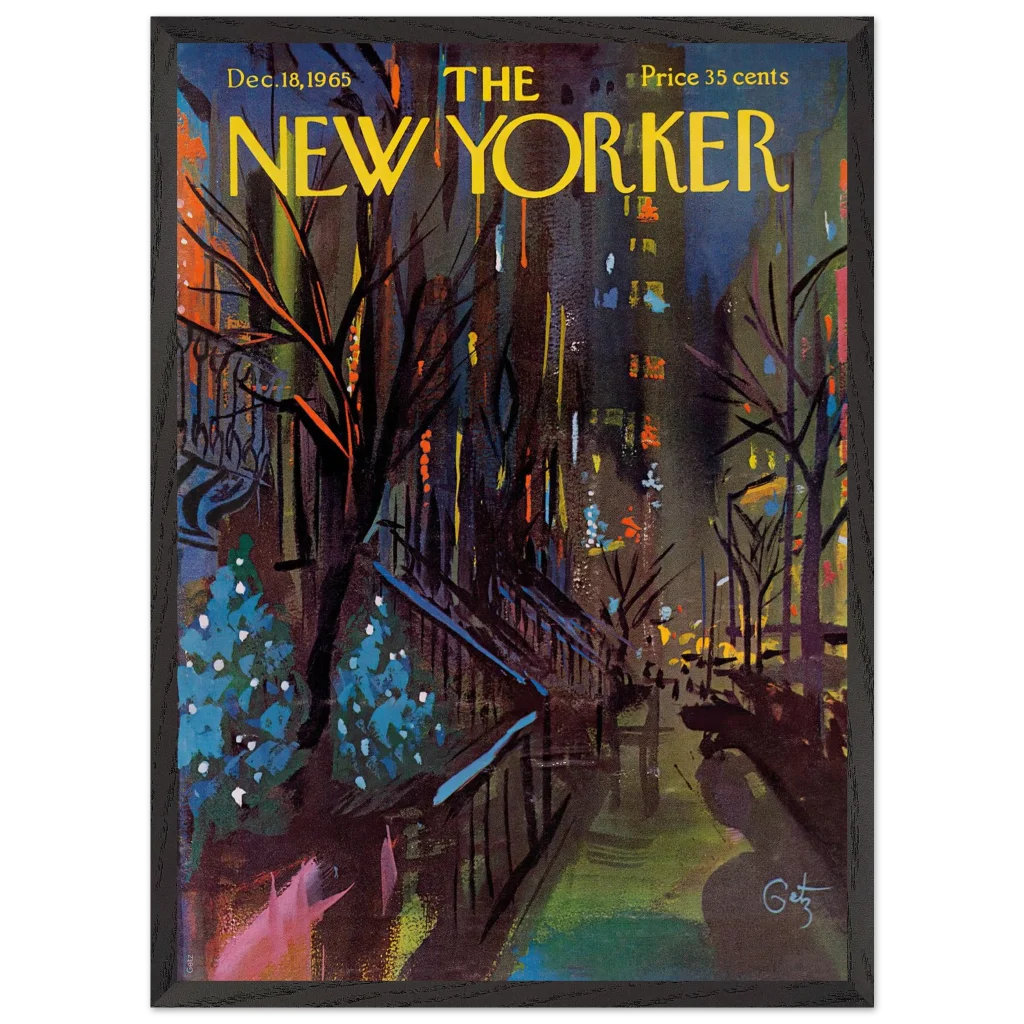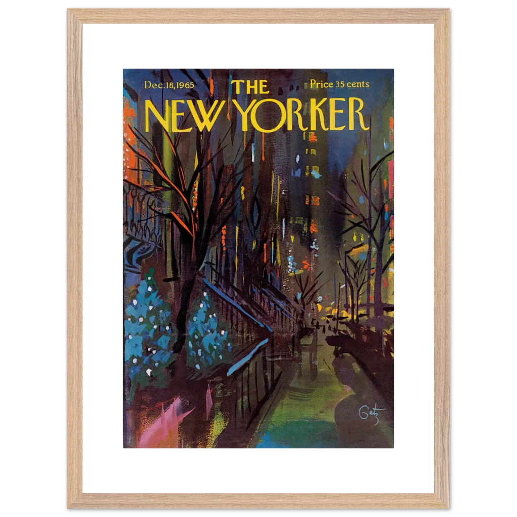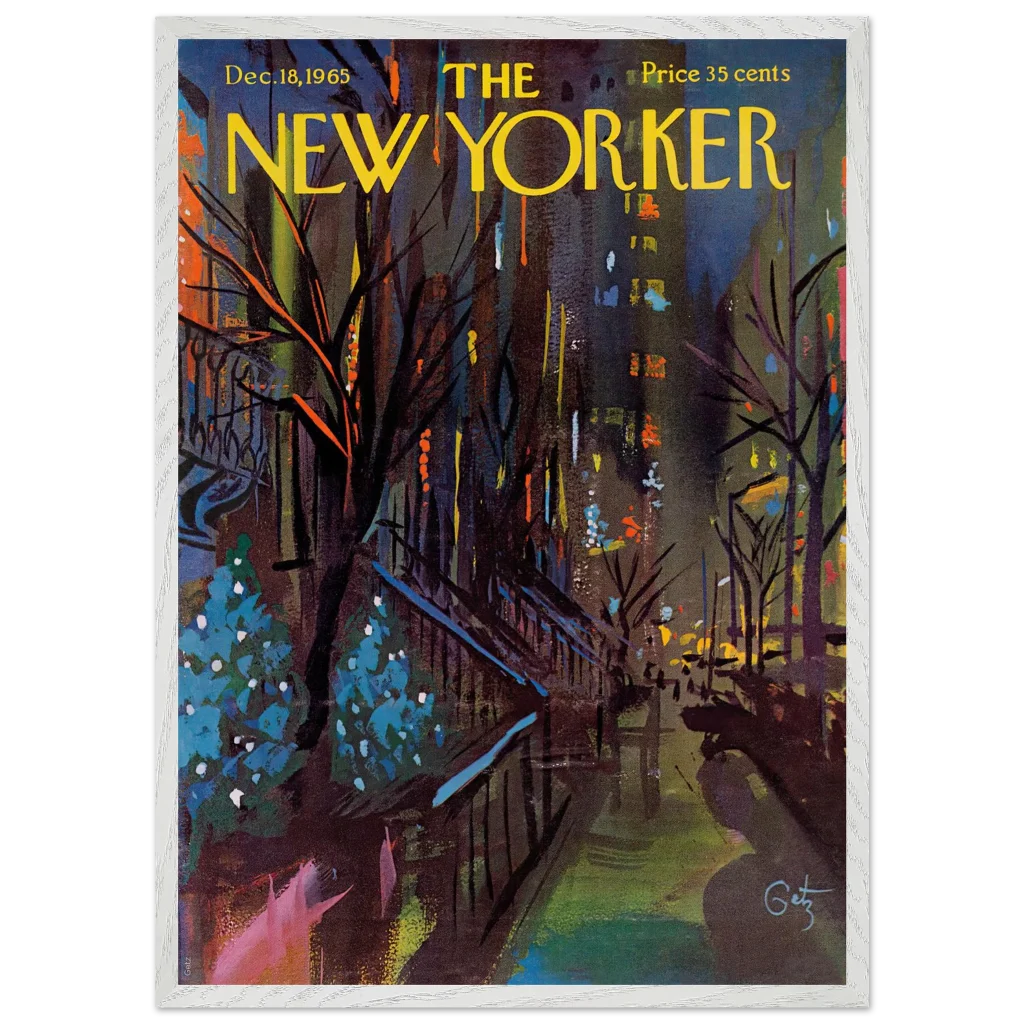 Immerse yourself in the enchanting glow of a New York Christmas Eve with this captivating impressionistic art print. Inspired by the classic New Yorker cover from December 18, 1965, this piece captures the festive spirit and vibrant energy of the city’s holiday season with a rich, abstract palette. It’s perfect for art lovers seeking a unique blend of nostalgia and contemporary style to brighten their living space.