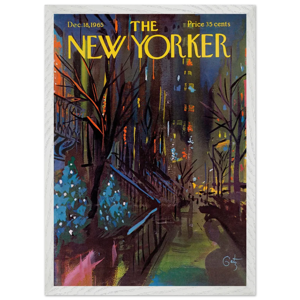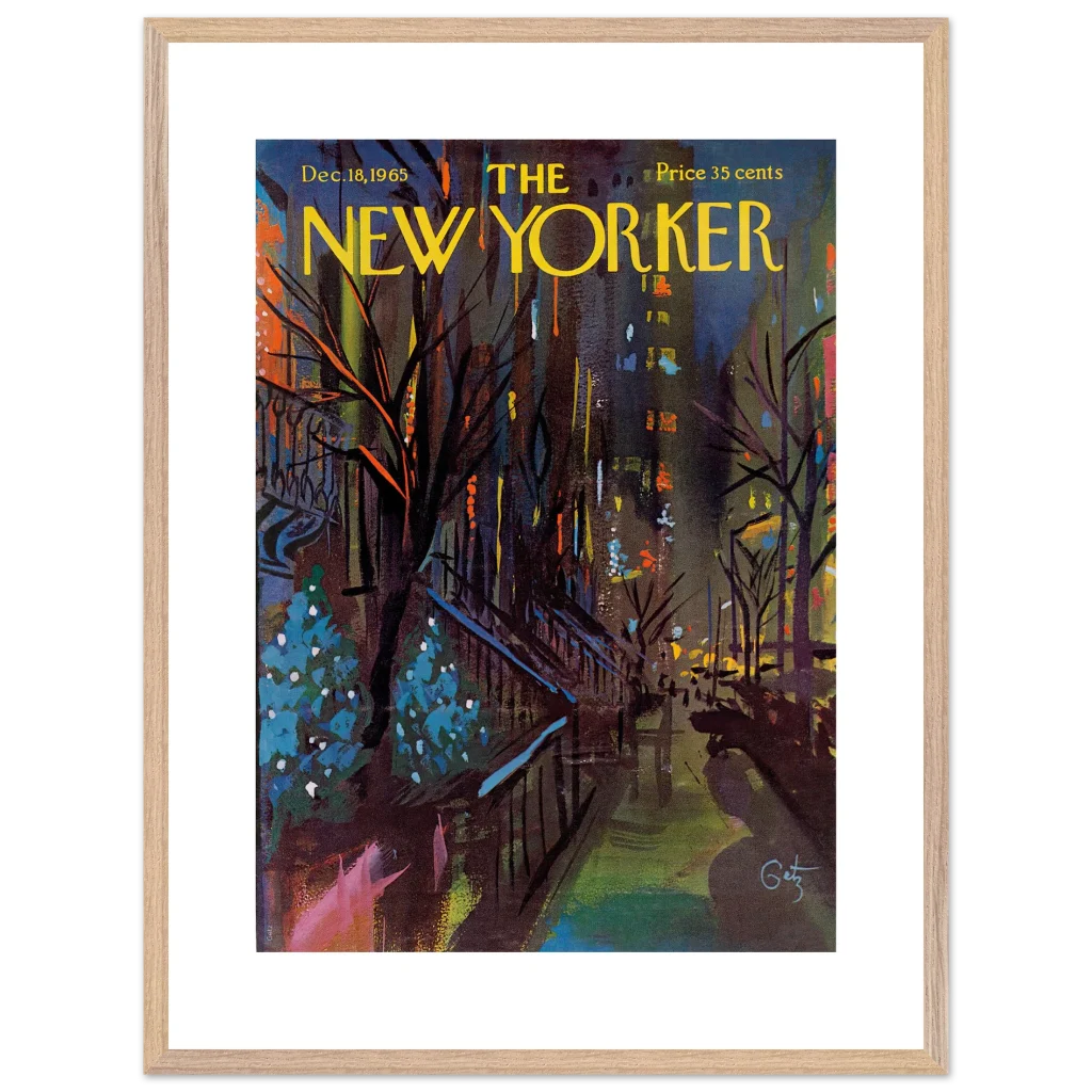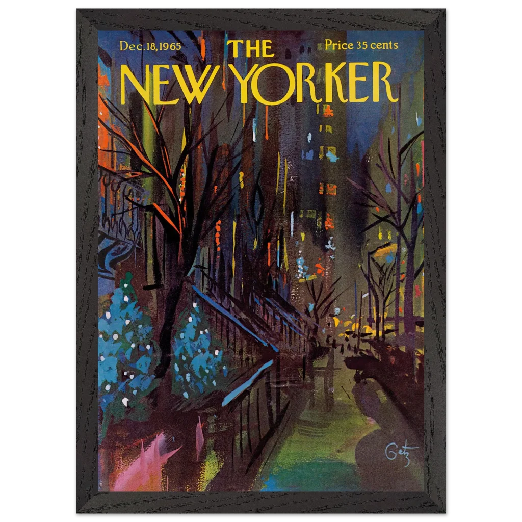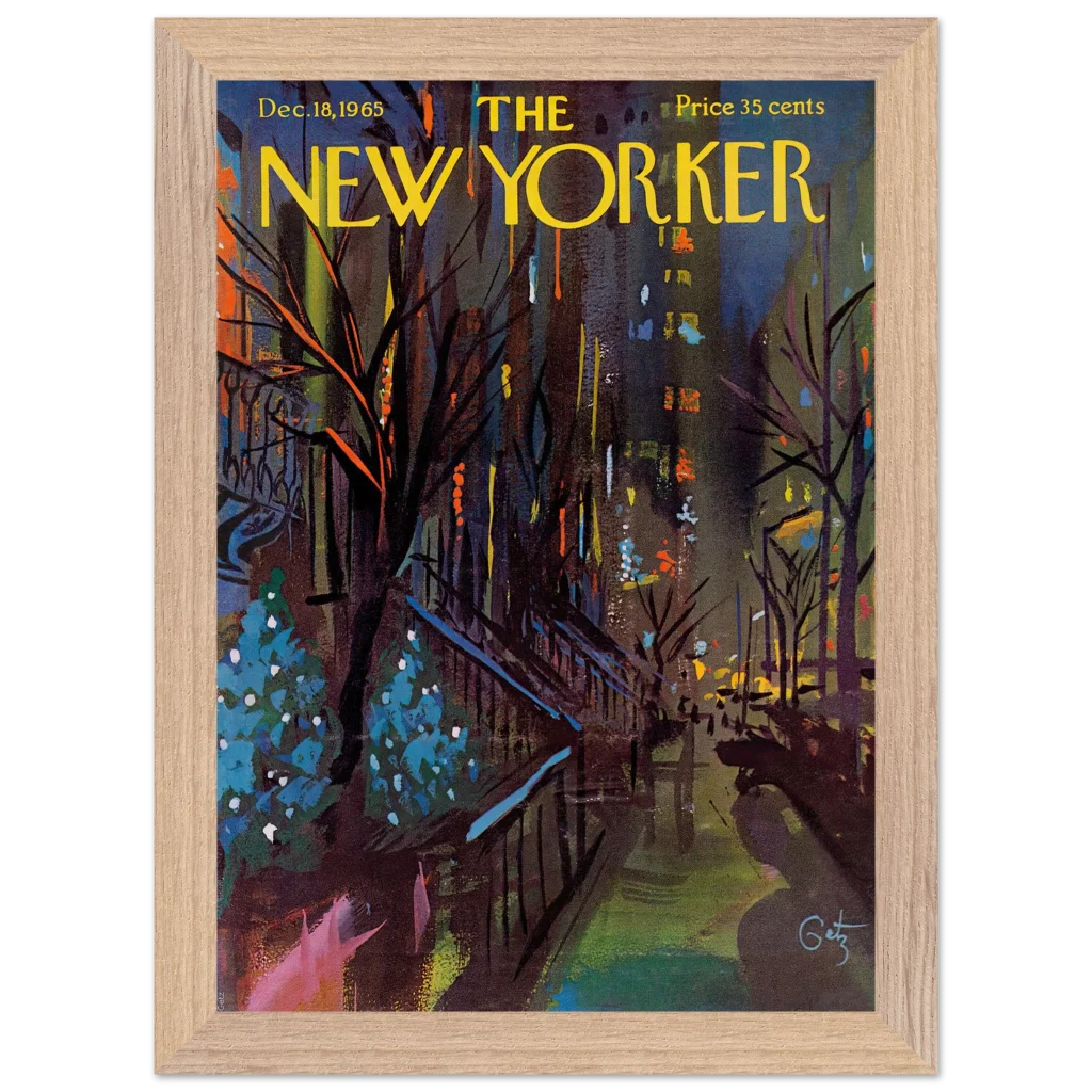 New York City Winter Twilight 1965 – Vintage New Yorker Cover Art Premium Wooden Framed Poster