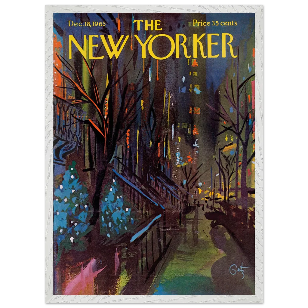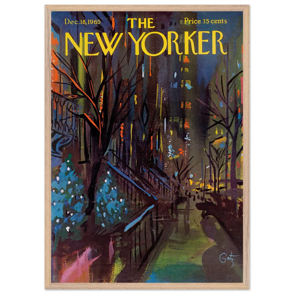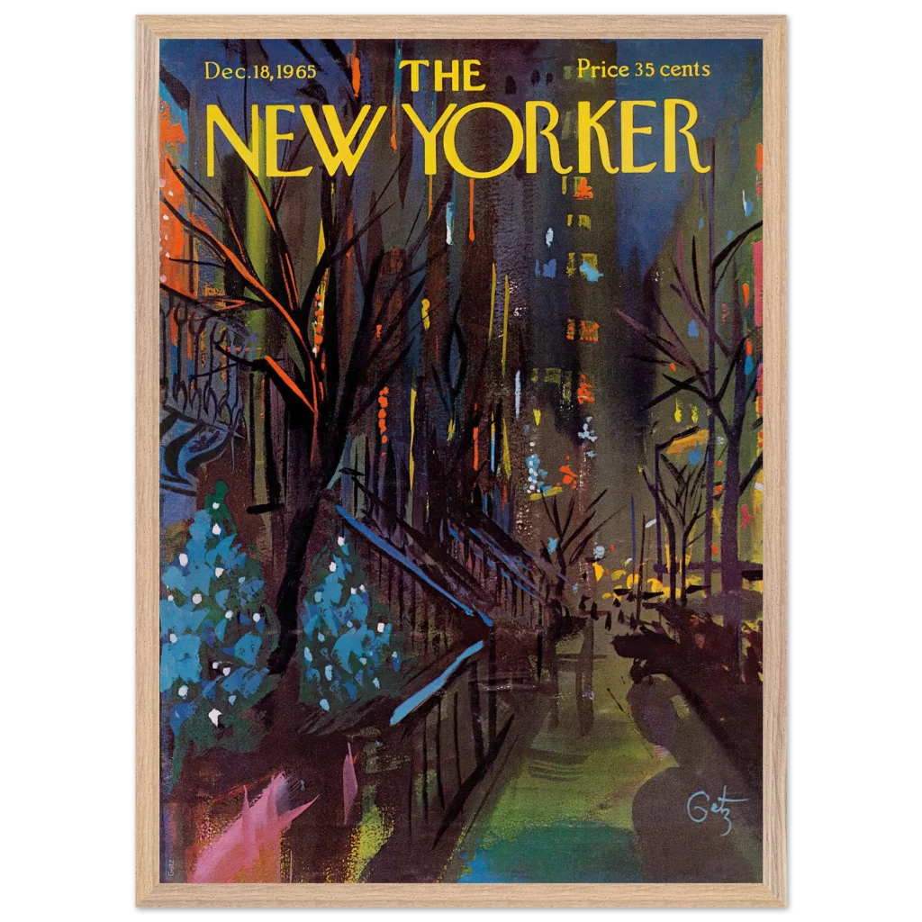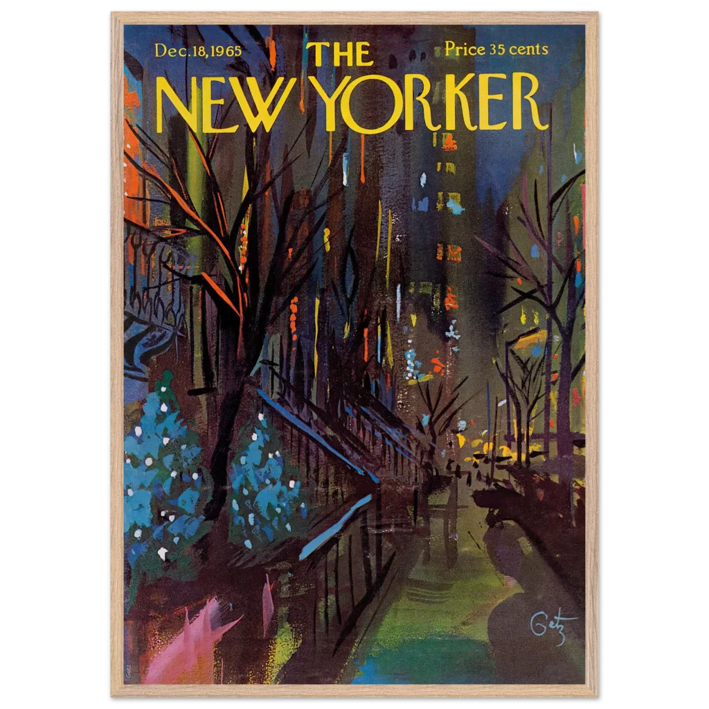 New York City Winter Twilight 1965 – Vintage New Yorker Cover Art Premium Wooden Framed Poster