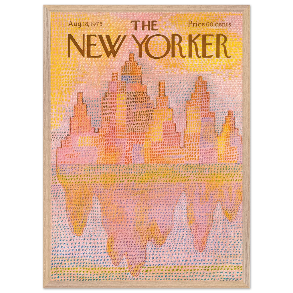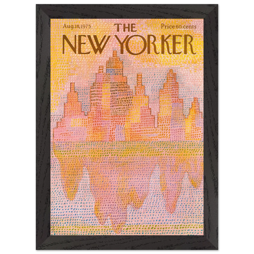 Immerse yourself in the vibrant energy of the city with our ‘New York Cityscape’ art print. This stunning piece, reminiscent of a classic New Yorker cover from August 18, 1975, captures the iconic skyline through a captivating pointillist lens. The playful dots of warm oranges, soft pinks, and cool blues create a dreamy, retro aesthetic perfect for adding a touch of sophisticated nostalgia to any space.