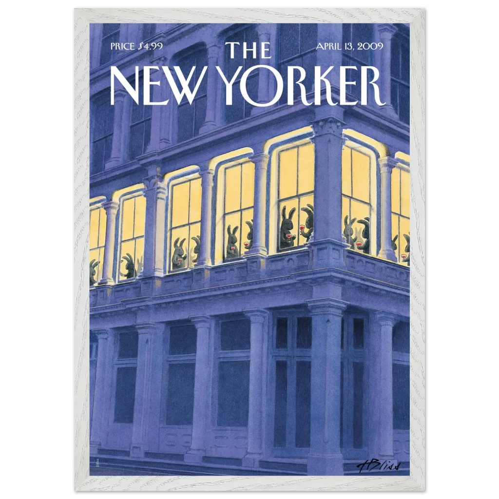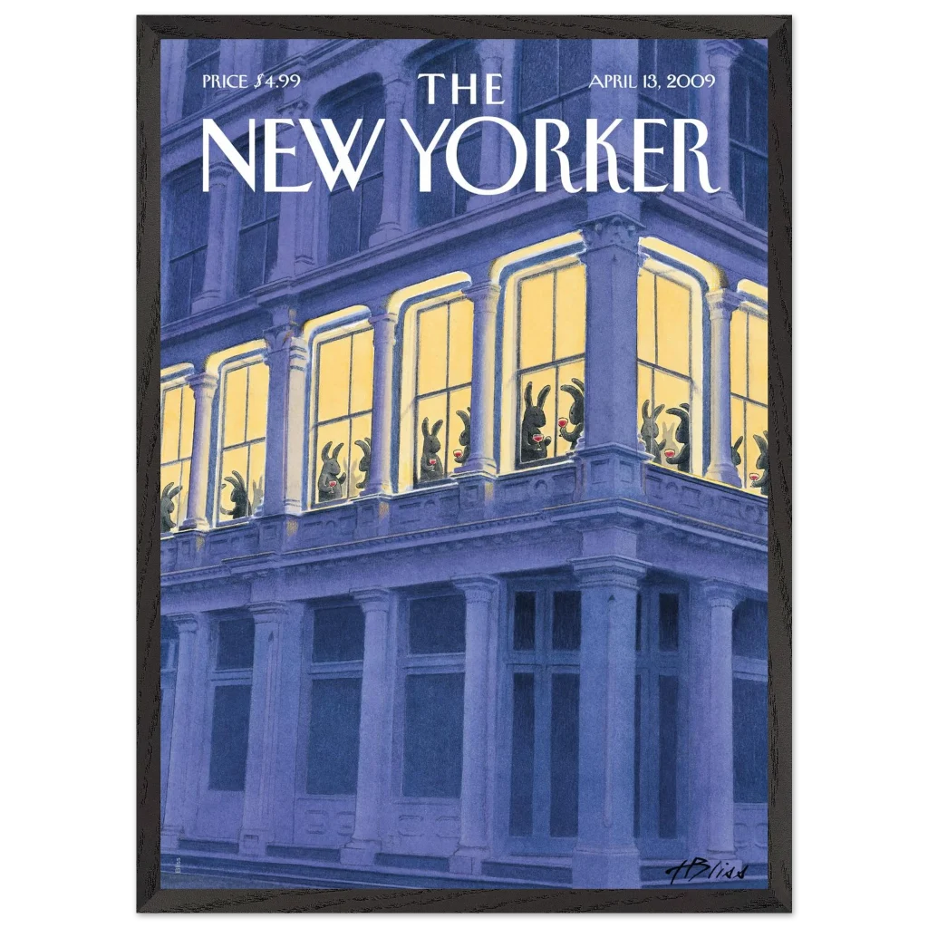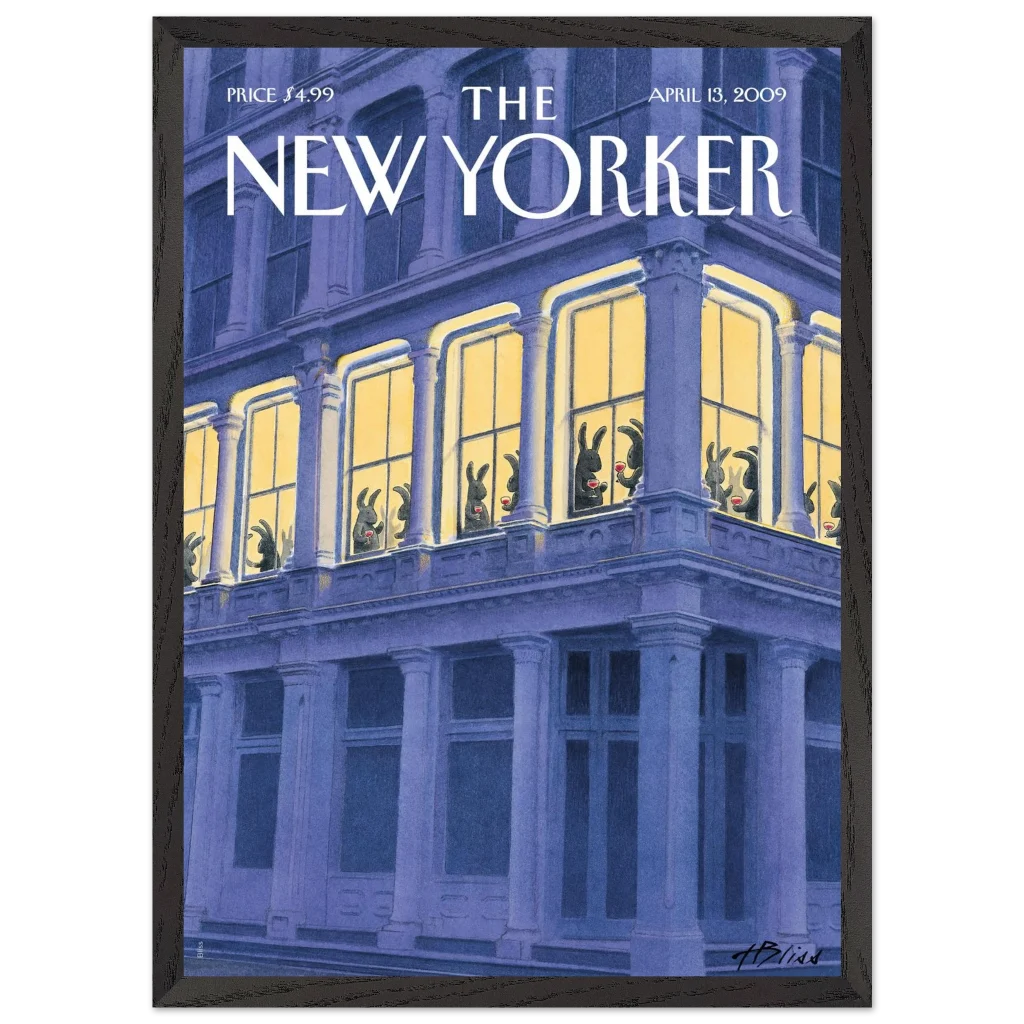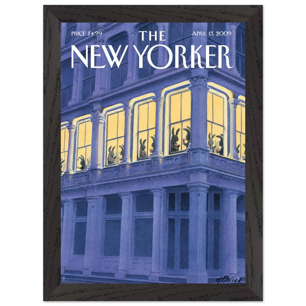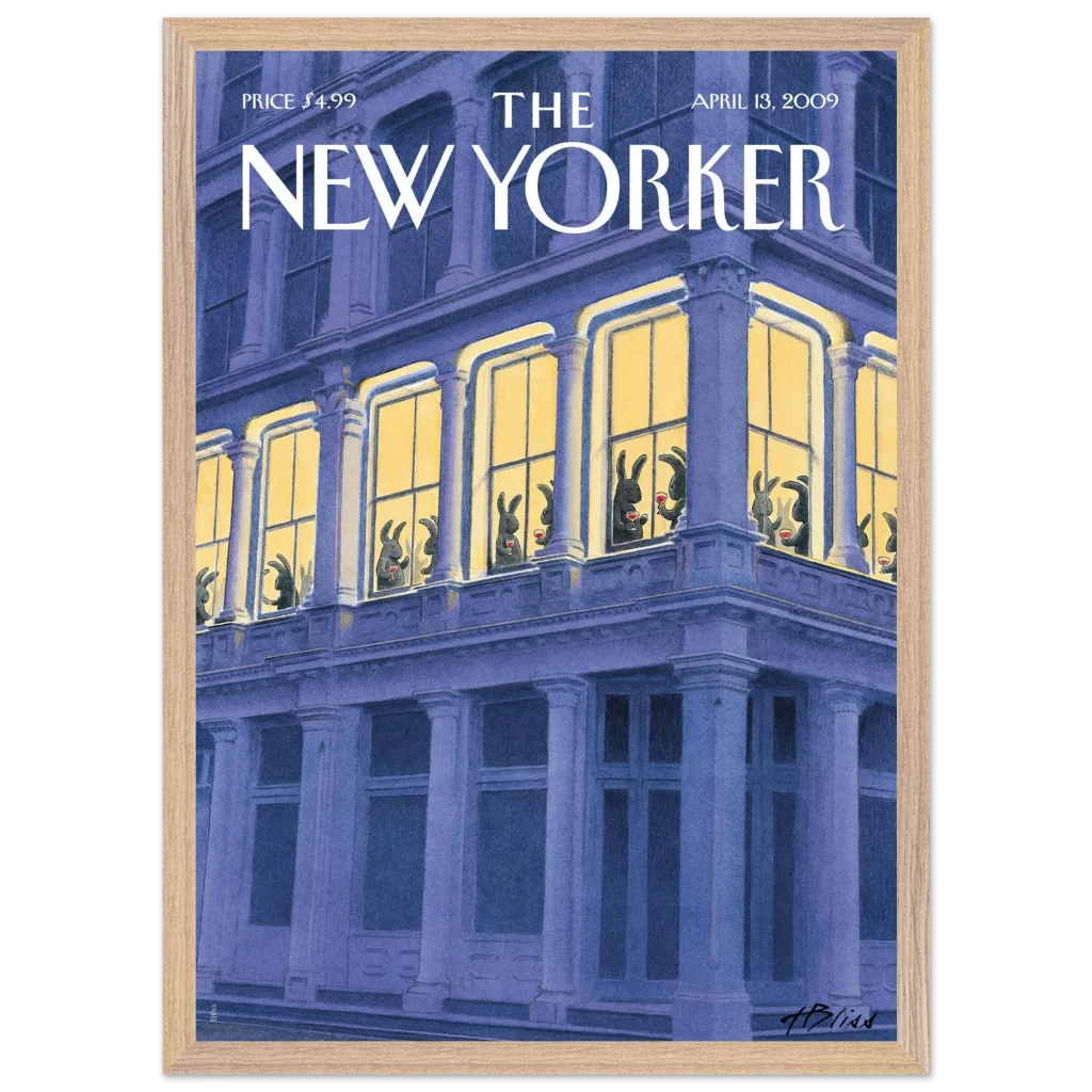 New Yorker ‘Cocktail Hour’ Wall Art – Whimsical Rabbit Soiree Premium Framed Poster, Choose Your Size & Frame!