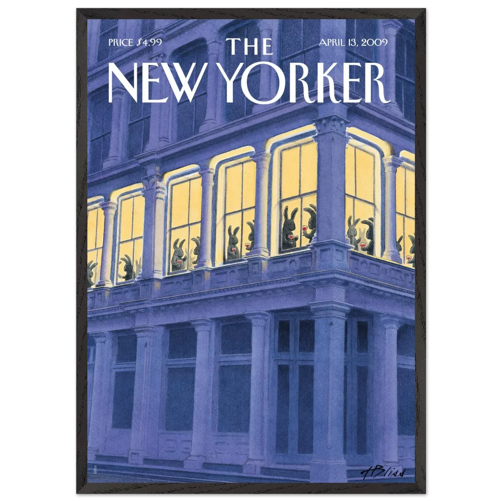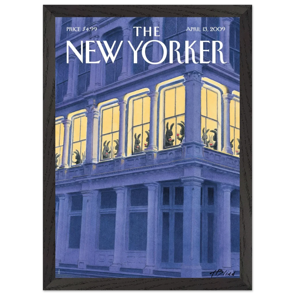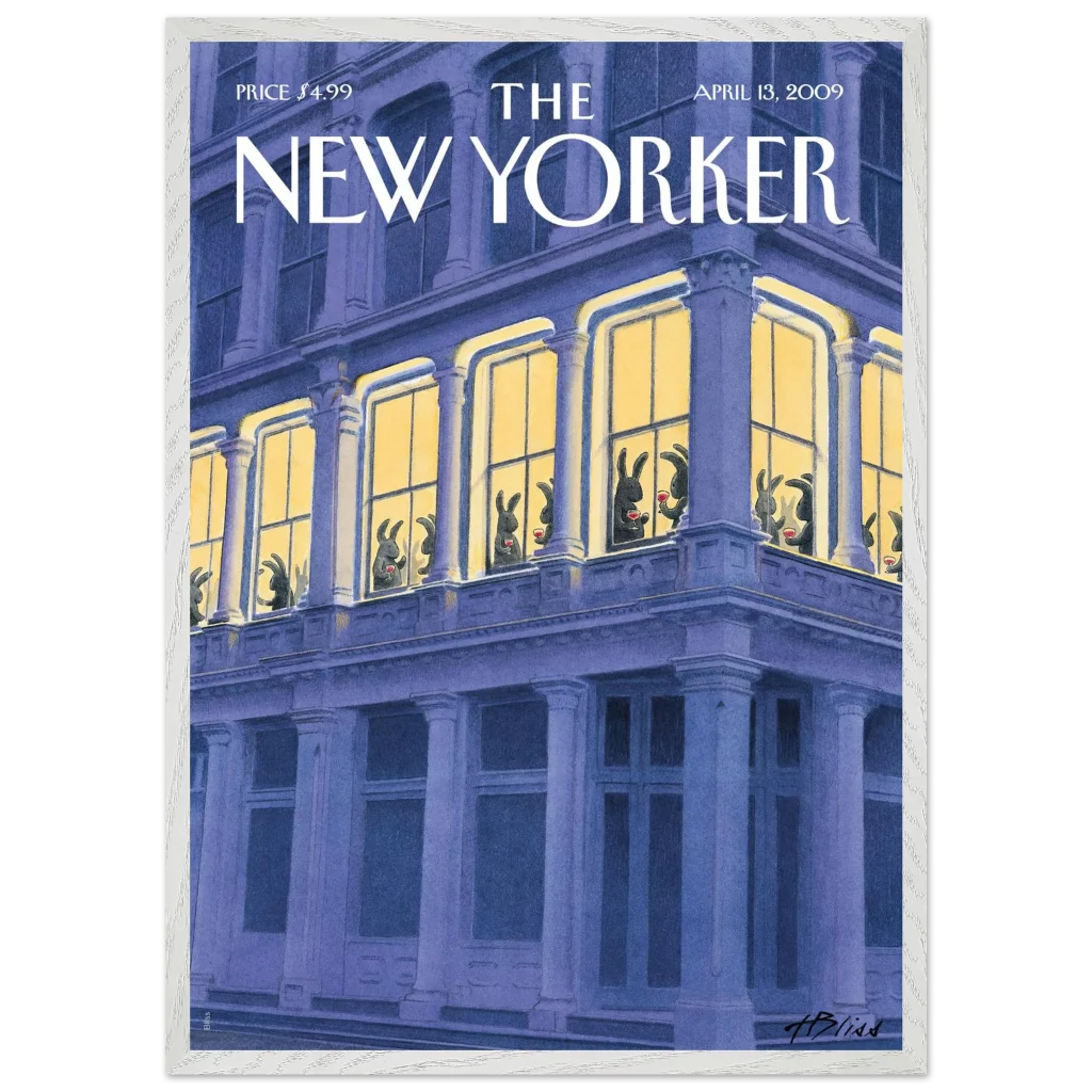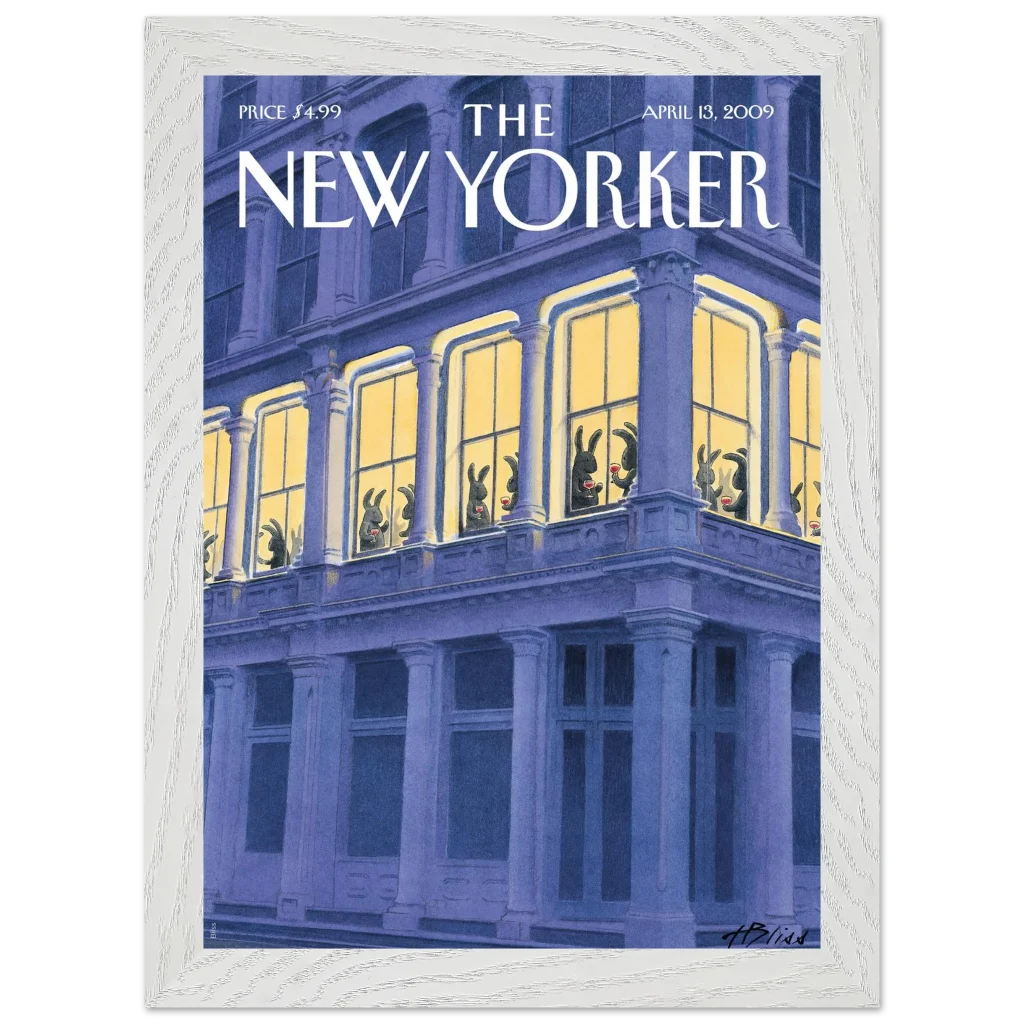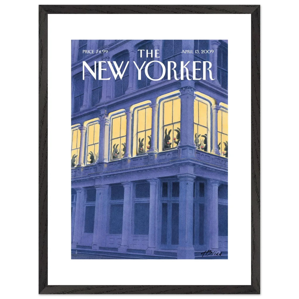 New Yorker ‘Cocktail Hour’ Wall Art – Whimsical Rabbit Soiree Premium Framed Poster, Choose Your Size & Frame!
