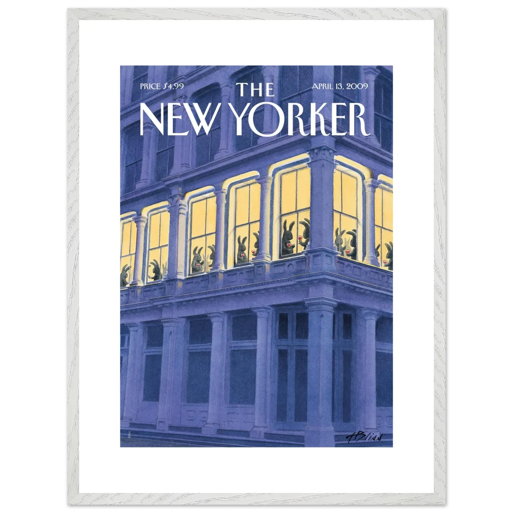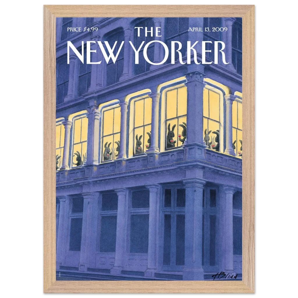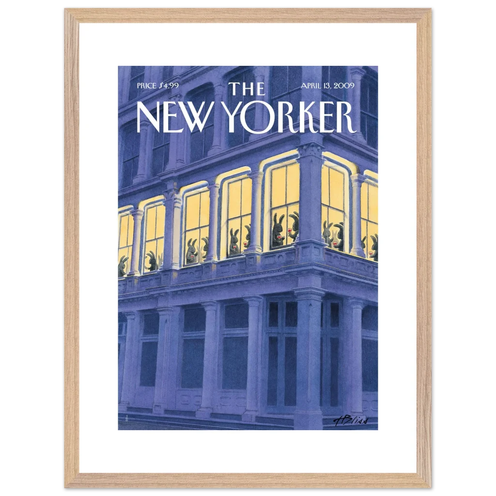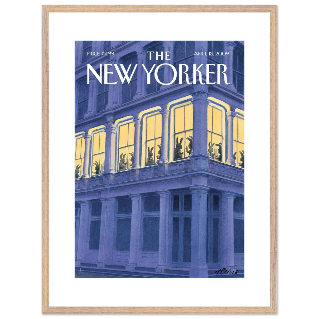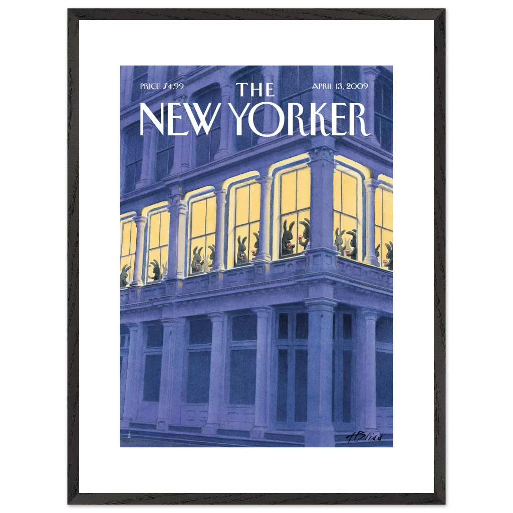 Invite a touch of playful sophistication into your home with our ‘Cocktail Hour’ framed poster, a charming reproduction of the iconic New Yorker cover. This delightful illustration captures a whimsical scene of rabbits enjoying a sophisticated evening, bringing an unexpected twist of humor and elegance to any room. Its rich, deep blues and warm, inviting yellows create a cozy yet chic atmosphere, perfect for art lovers with a sense of fun.