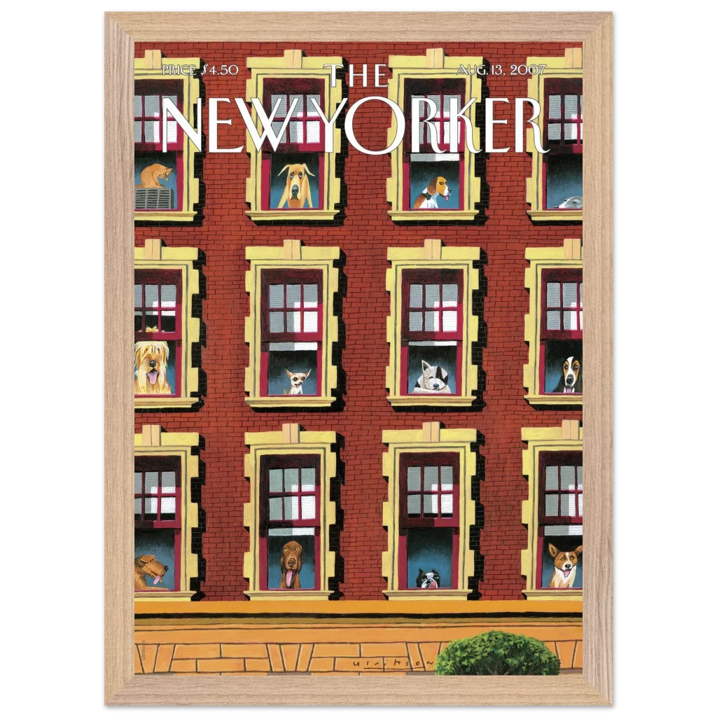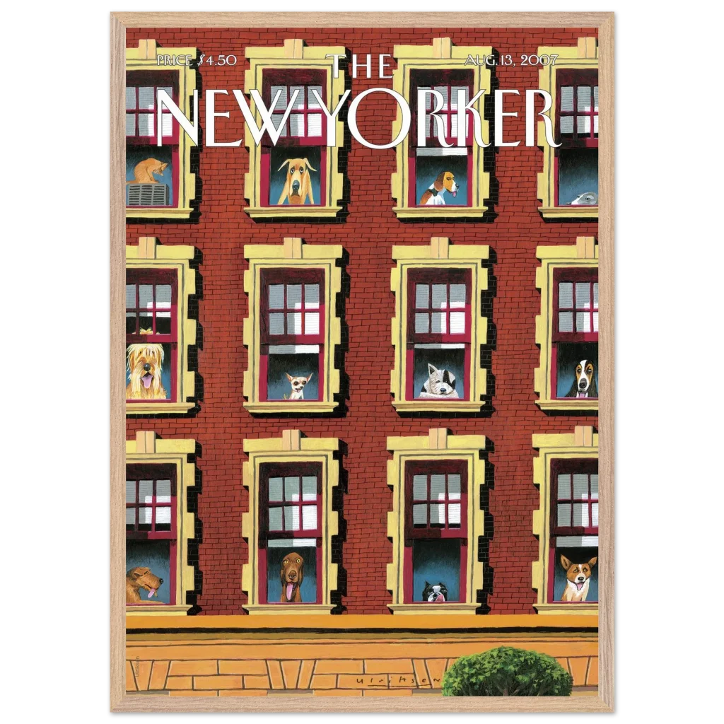 New Yorker Cover: Apartment Pups Premium Framed Poster – Whimsical Dog Illustration Wall Art for Pet Lovers
