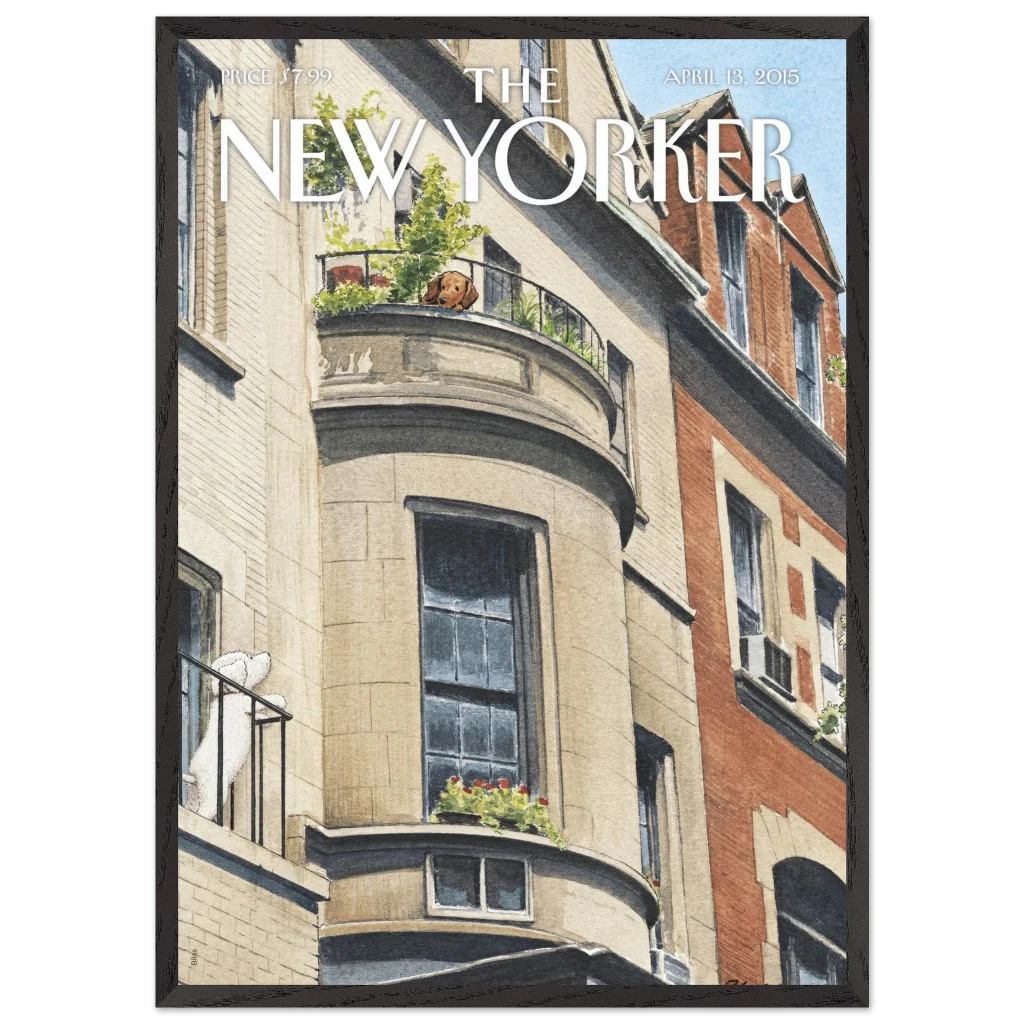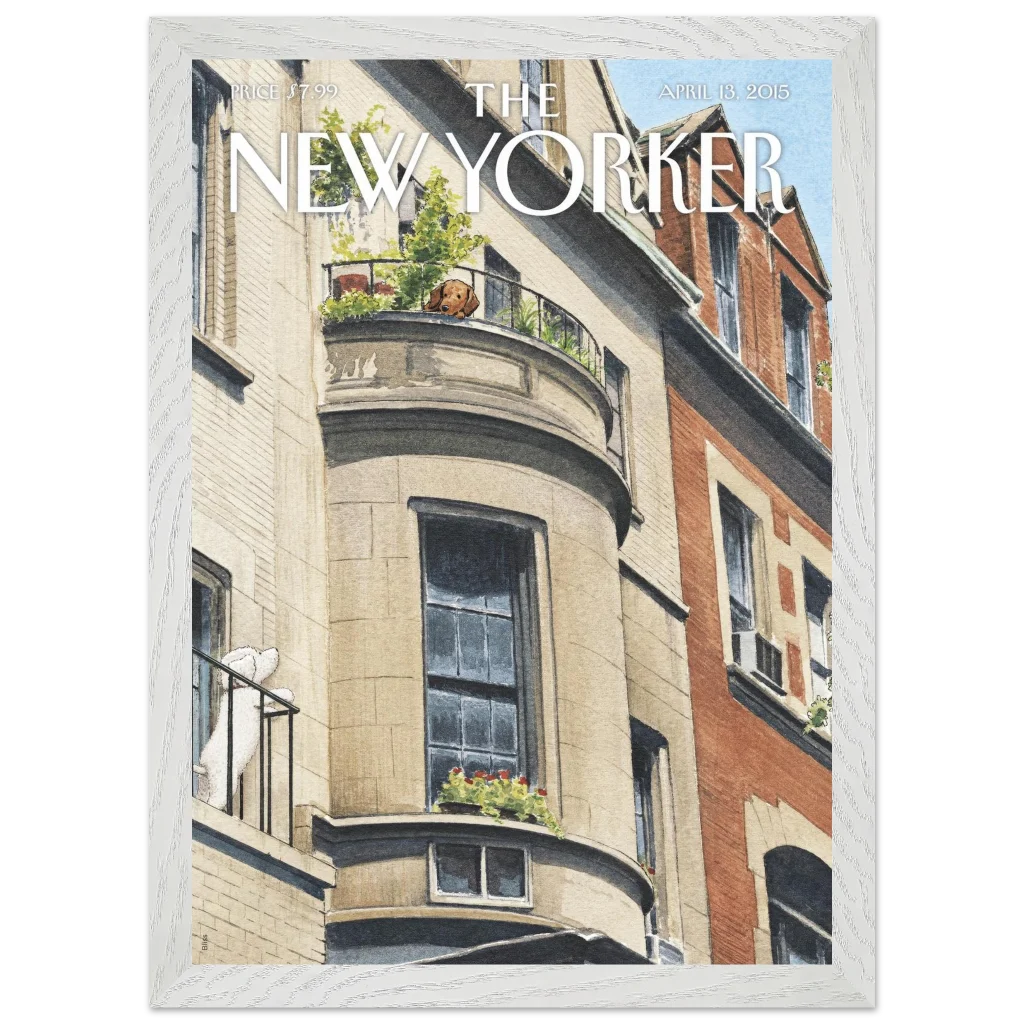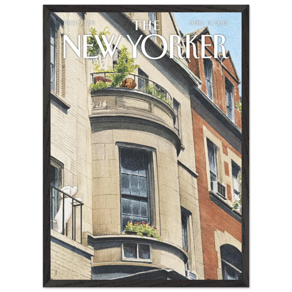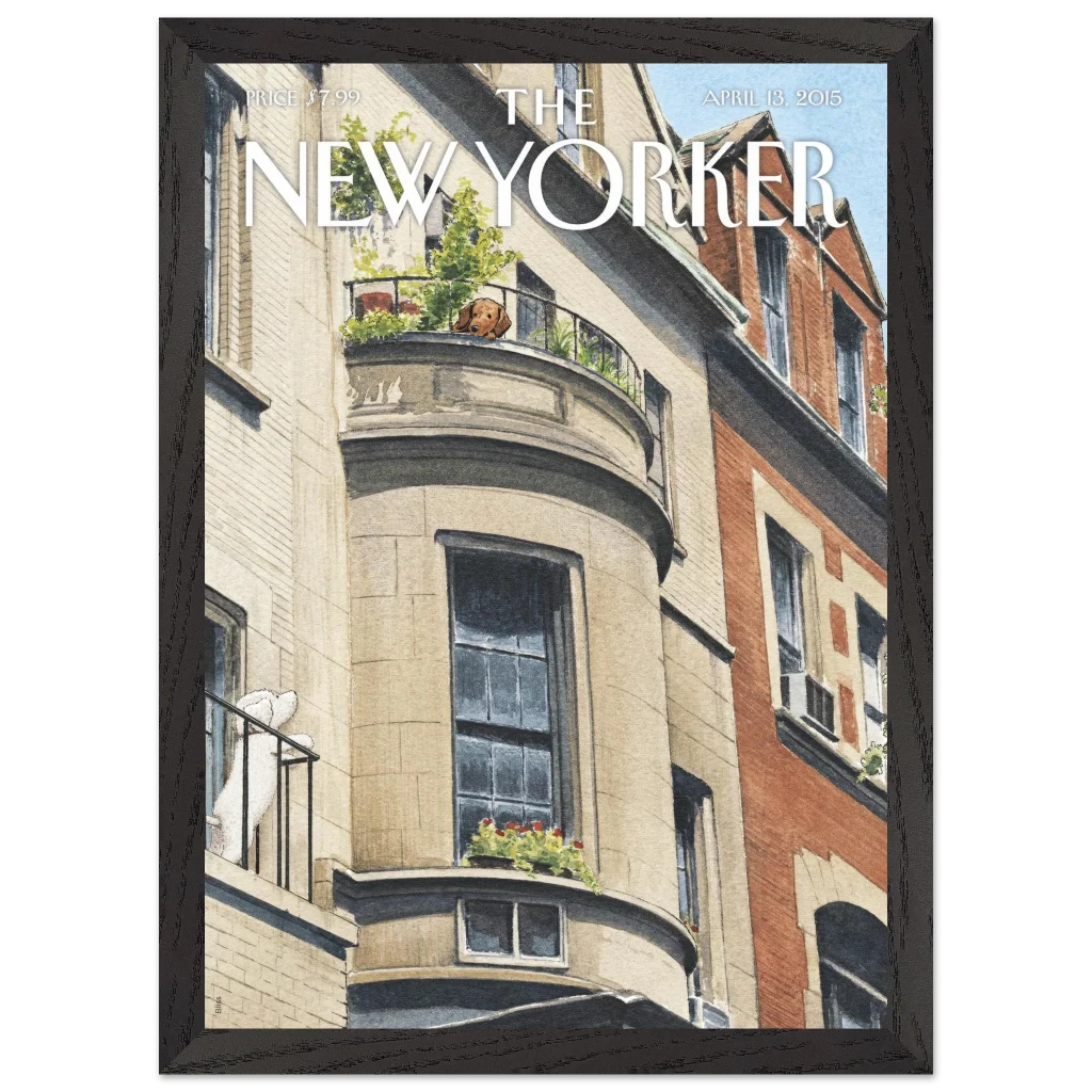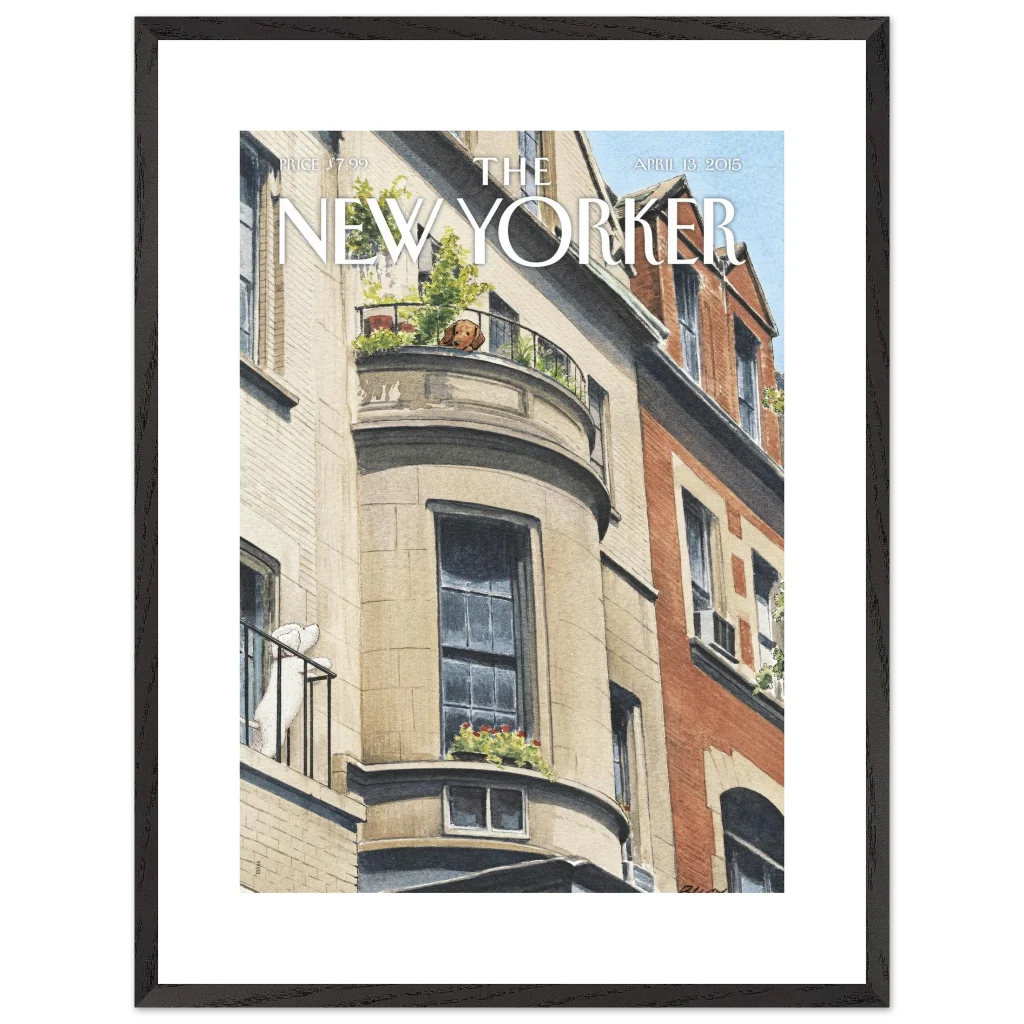 Capture a moment of urban tranquility and charming curiosity with our “New Yorker Cover: Bliss” framed poster. This iconic artwork, depicting two beloved dogs observing their world from cozy balconies, brings a touch of warmth and whimsical elegance to any space. The muted color palette and detailed architectural elements create a sophisticated yet inviting scene, perfect for art lovers and those who appreciate the subtle joys of city life.
