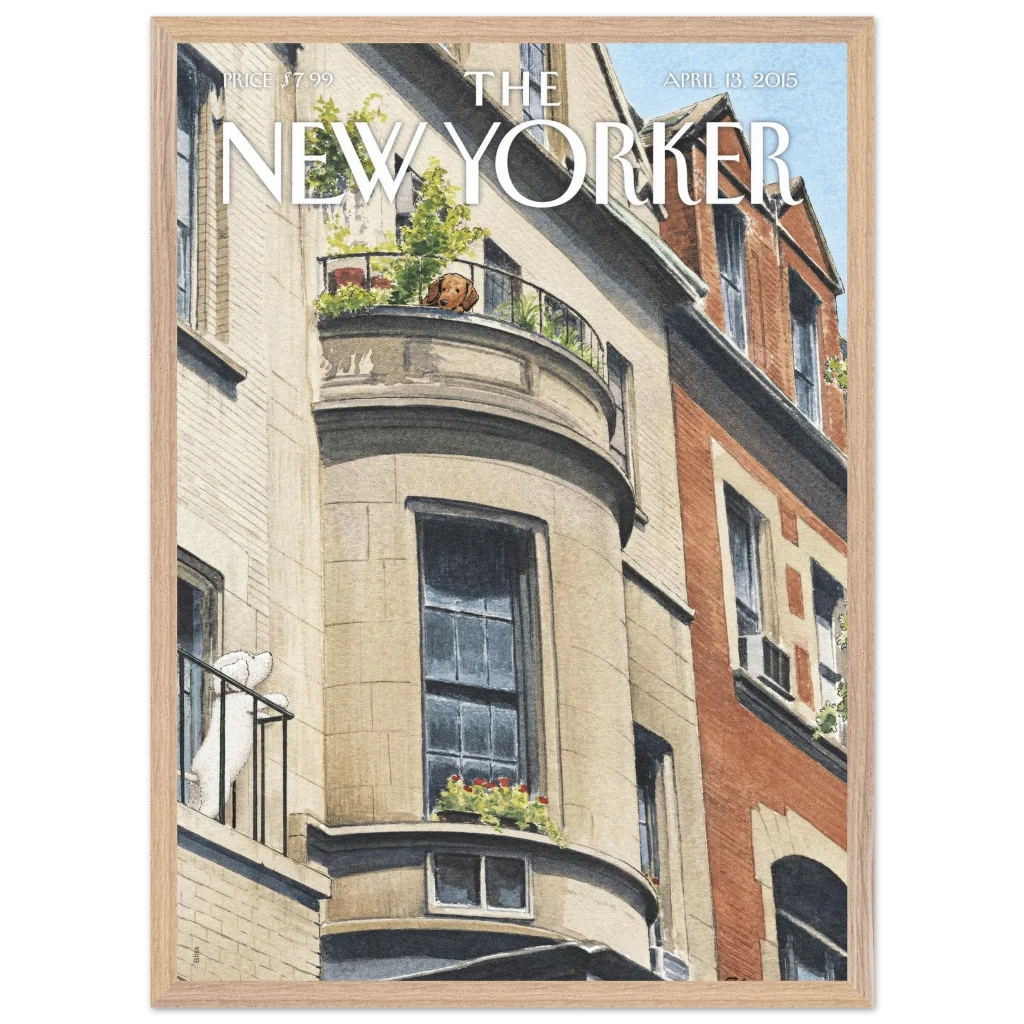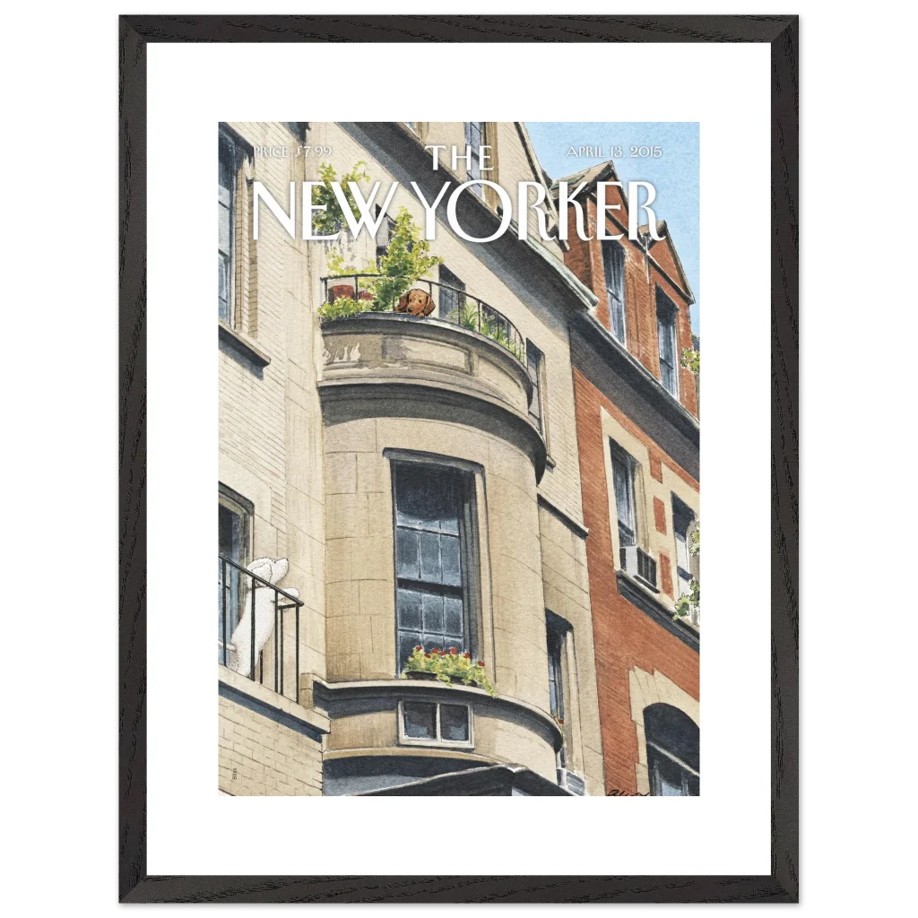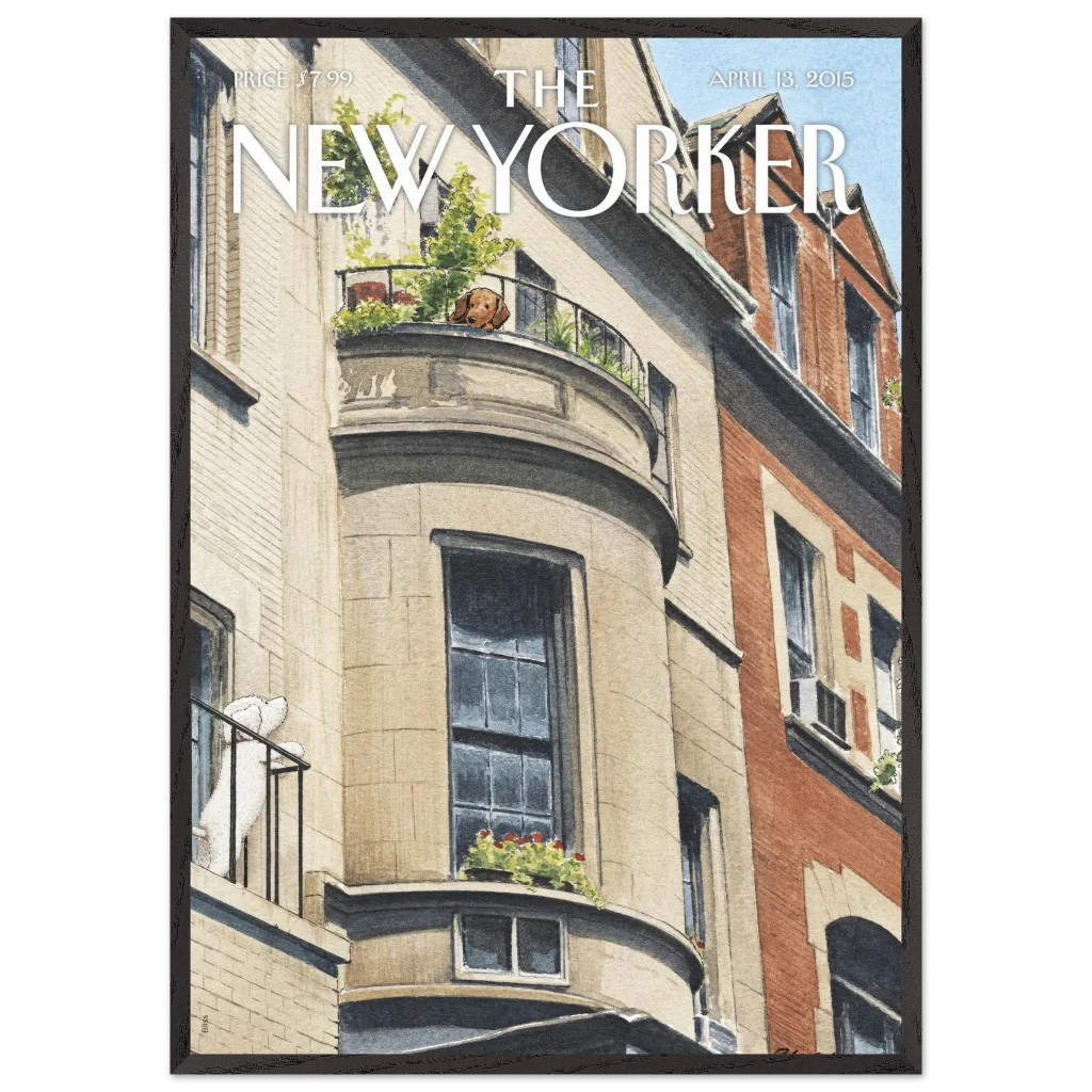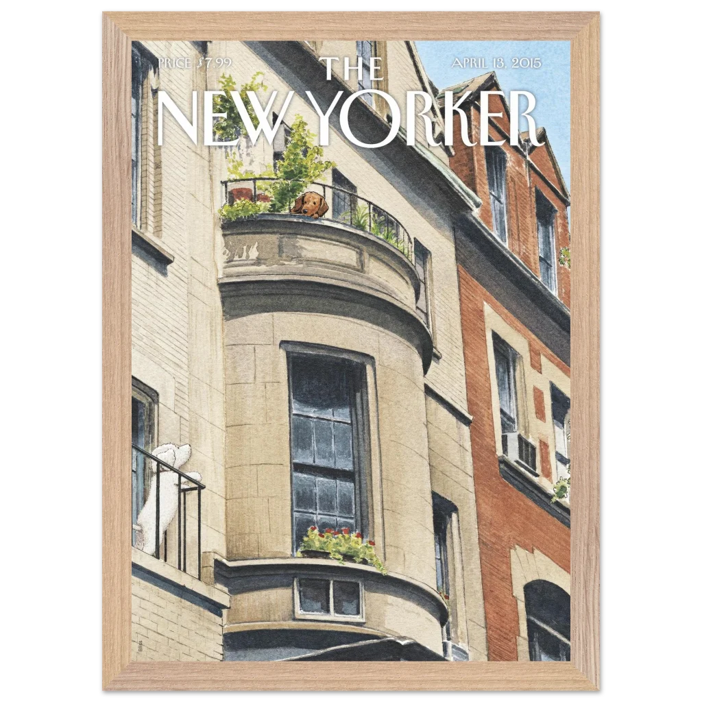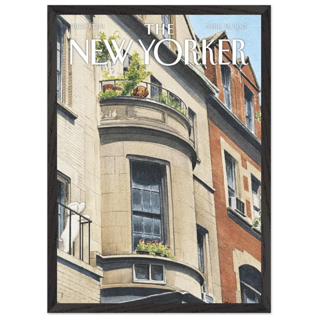 Capture a moment of urban tranquility and charming curiosity with our “New Yorker Cover: Bliss” framed poster. This iconic artwork, depicting two beloved dogs observing their world from cozy balconies, brings a touch of warmth and whimsical elegance to any space. The muted color palette and detailed architectural elements create a sophisticated yet inviting scene, perfect for art lovers and those who appreciate the subtle joys of city life.