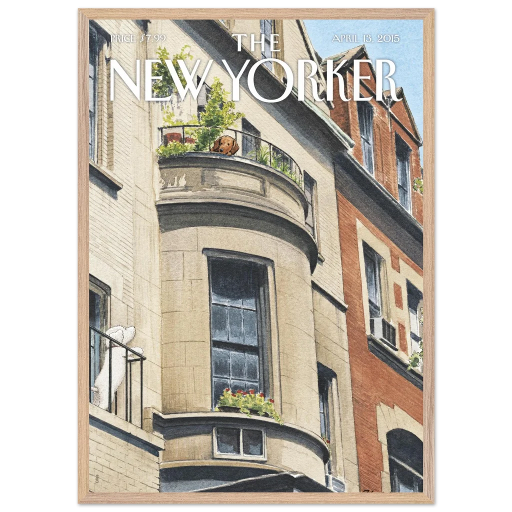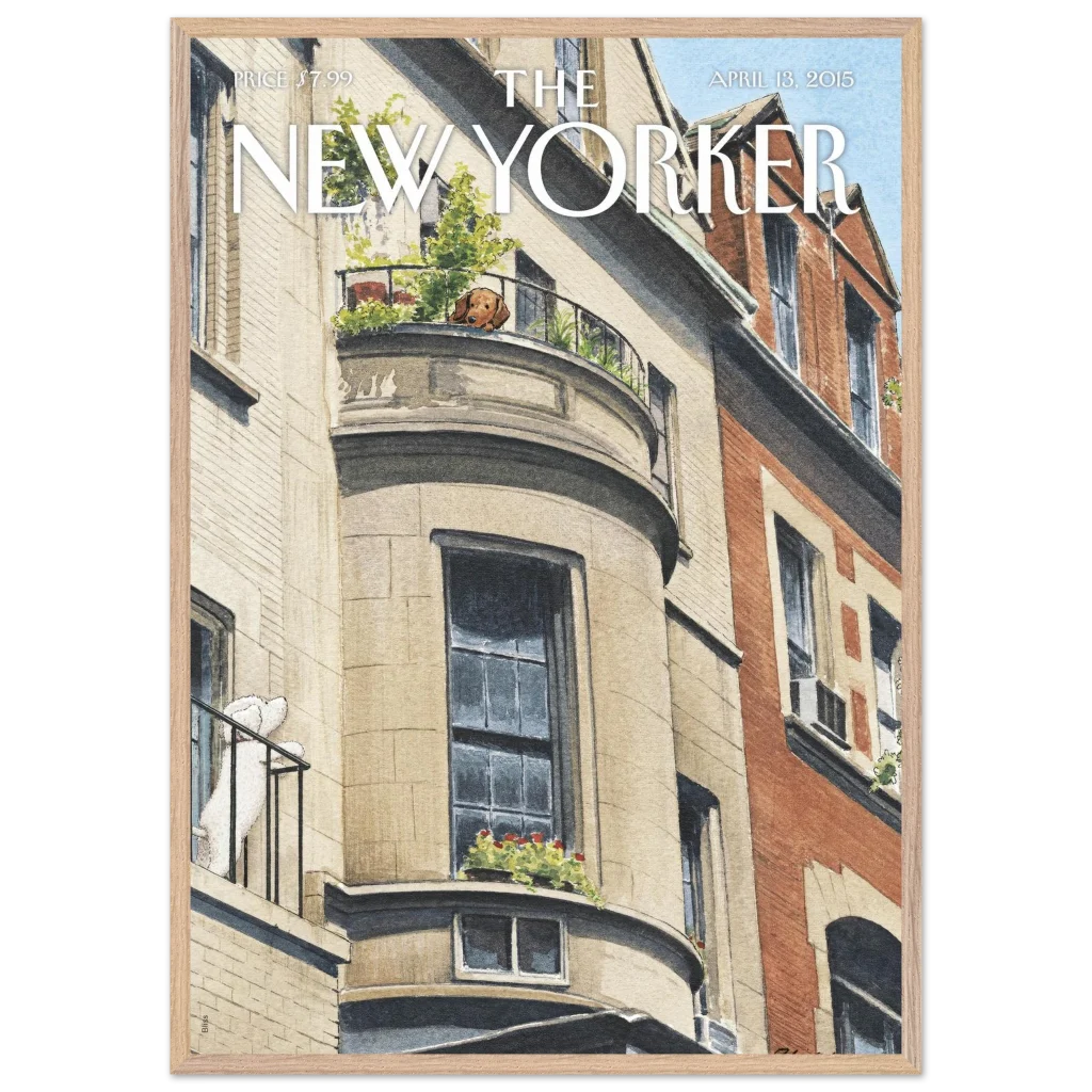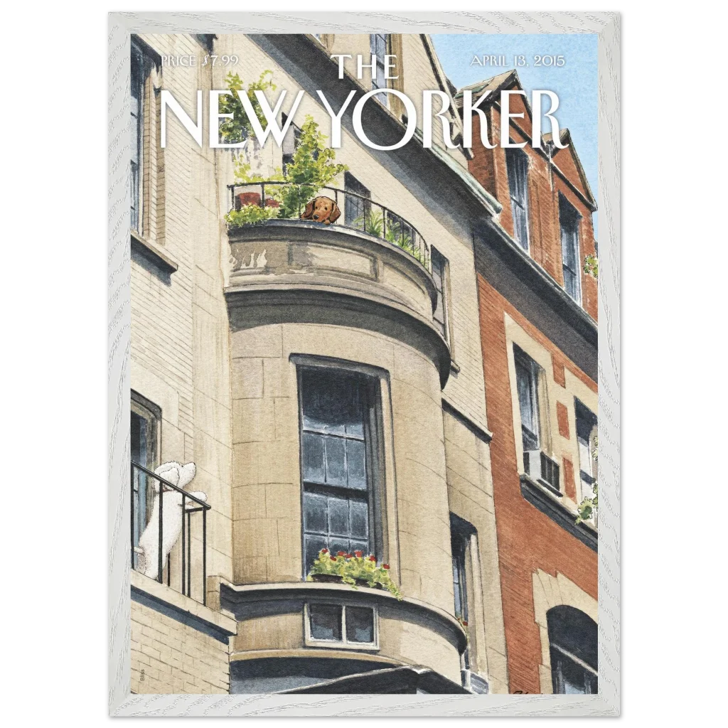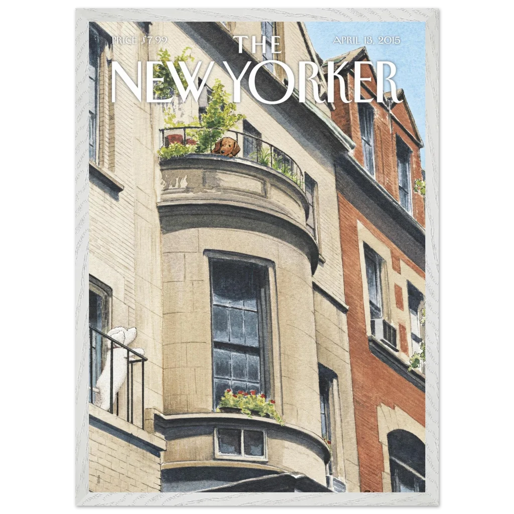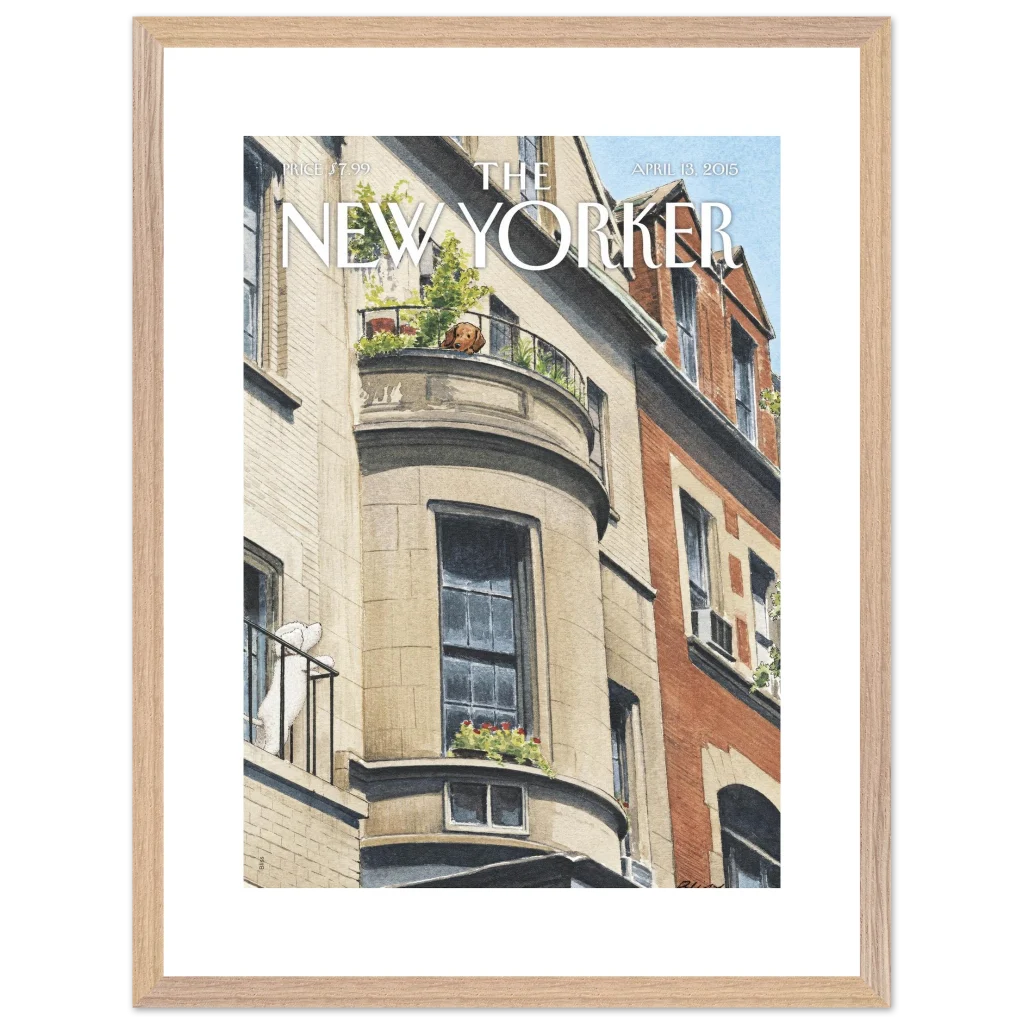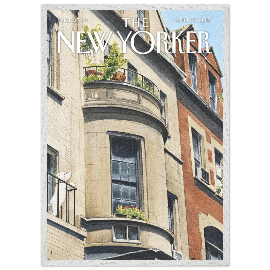 Capture a moment of urban tranquility and charming curiosity with our “New Yorker Cover: Bliss” framed poster. This iconic artwork, depicting two beloved dogs observing their world from cozy balconies, brings a touch of warmth and whimsical elegance to any space. The muted color palette and detailed architectural elements create a sophisticated yet inviting scene, perfect for art lovers and those who appreciate the subtle joys of city life.