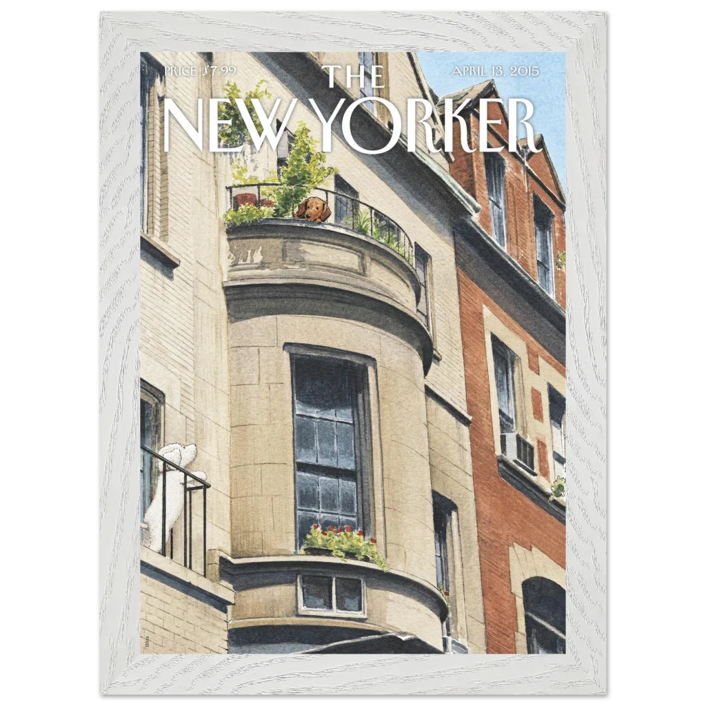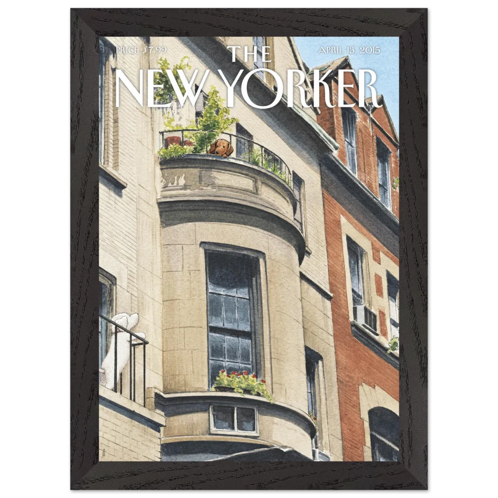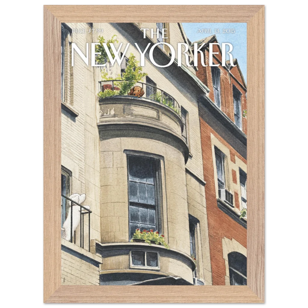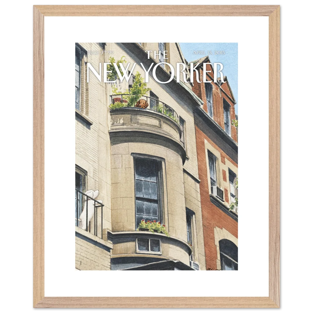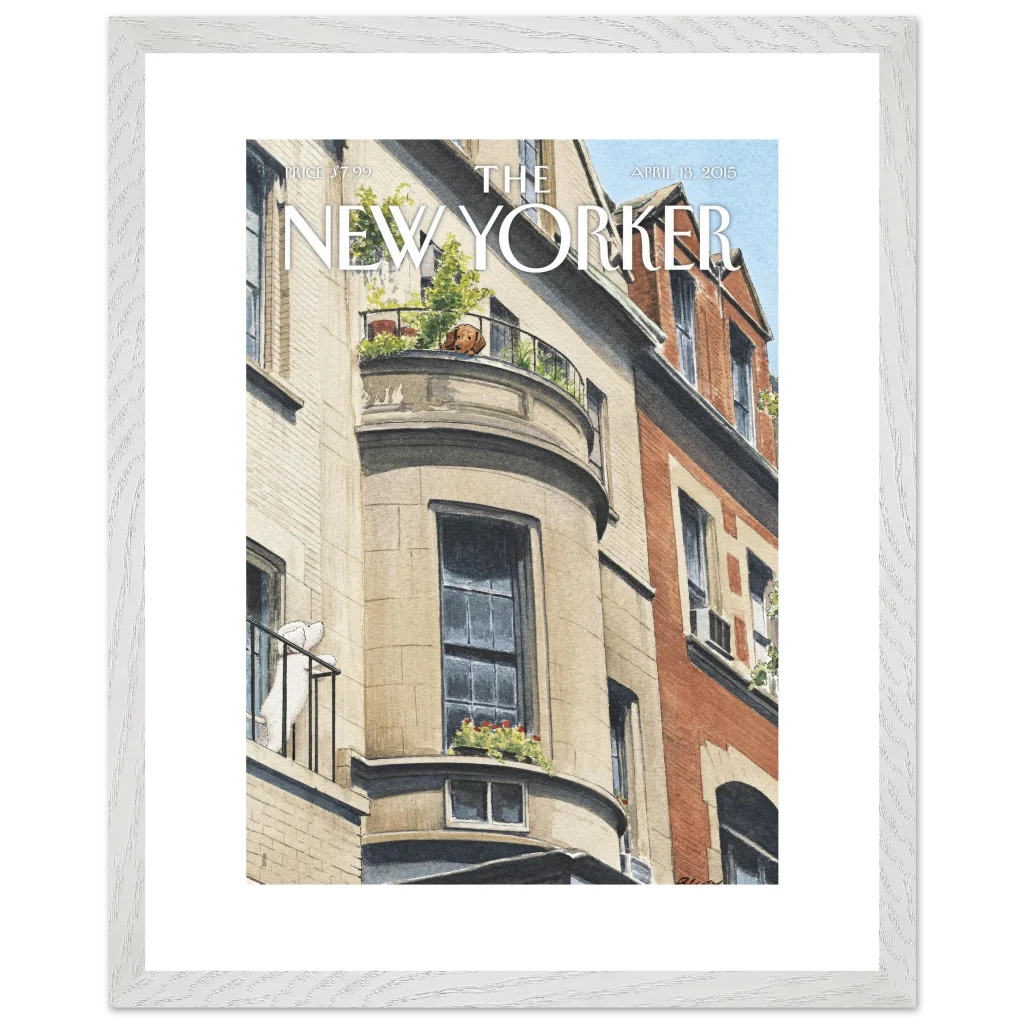 Capture a moment of urban tranquility and charming curiosity with our “New Yorker Cover: Bliss” framed poster. This iconic artwork, depicting two beloved dogs observing their world from cozy balconies, brings a touch of warmth and whimsical elegance to any space. The muted color palette and detailed architectural elements create a sophisticated yet inviting scene, perfect for art lovers and those who appreciate the subtle joys of city life.
