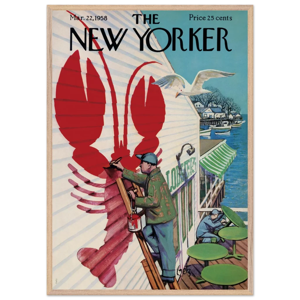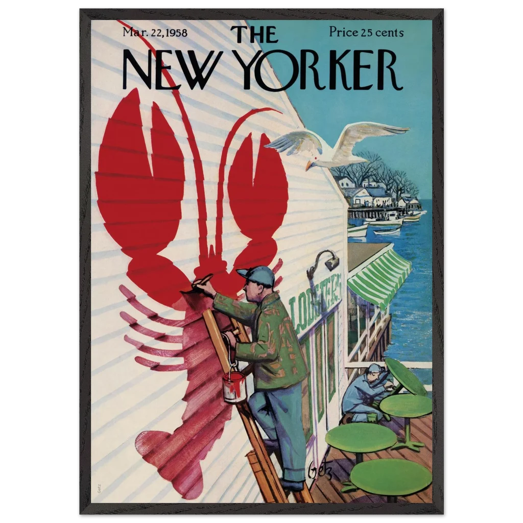 New Yorker Cover: Lobster Fisherman – Mid-Century Nautical Art Premium Framed Poster in Your Choice of Size & Frame Color