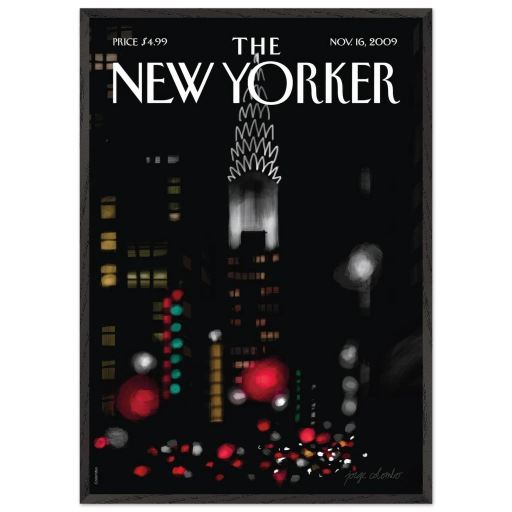 New Yorker Cover: November 16, 2009 – Iconic New York City Night Scene Premium Framed Poster in Your Choice of Frame & Size