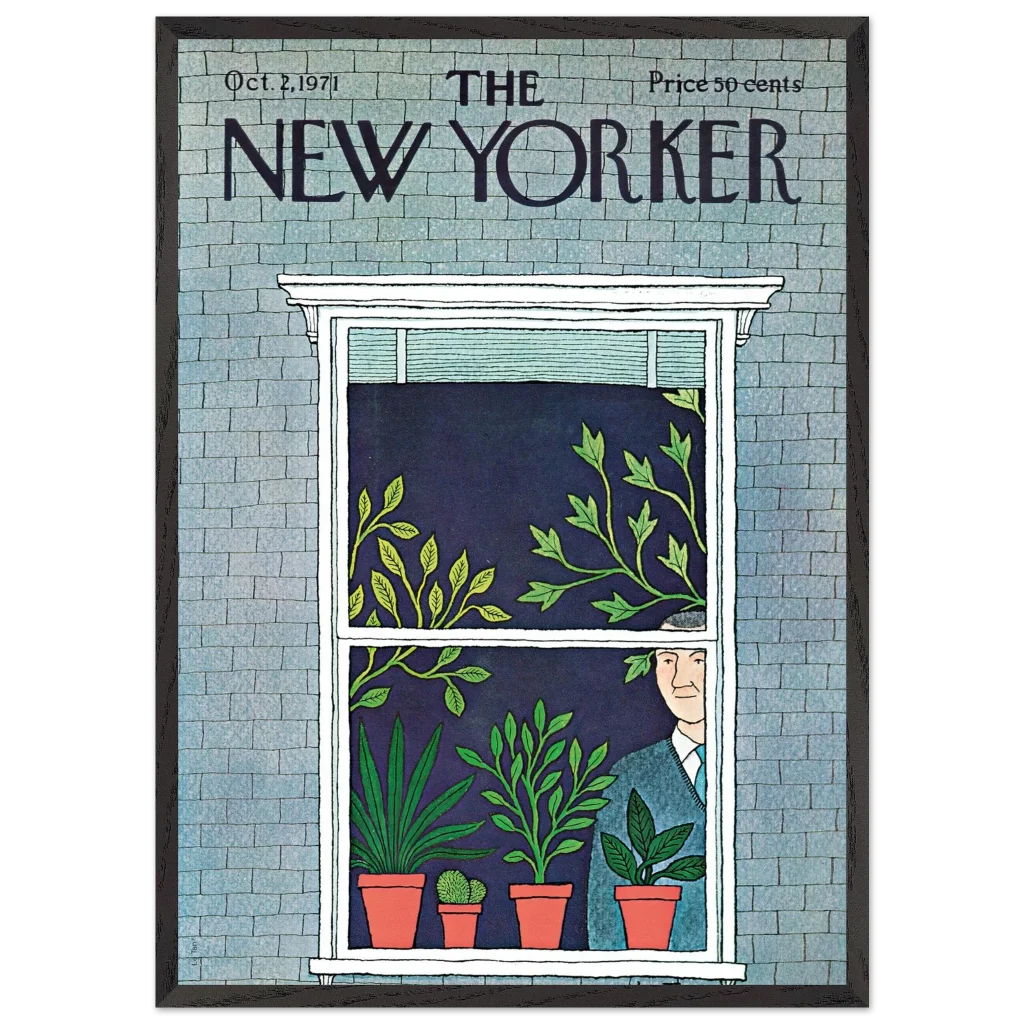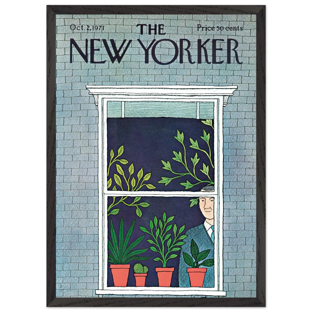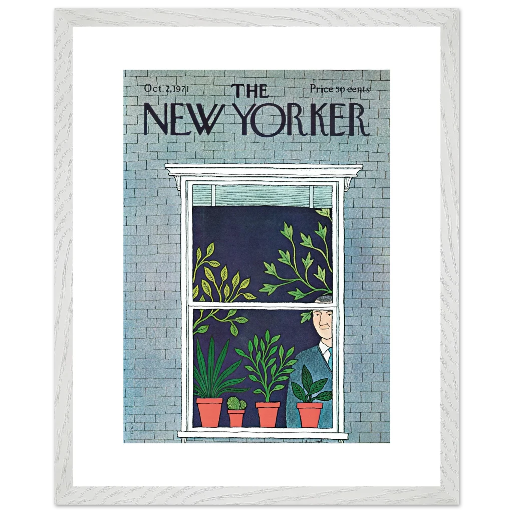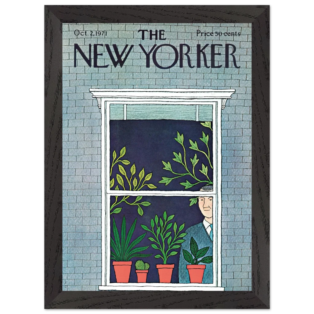 New Yorker October 1971 Cover Art – Iconic Urban Window View Wooden Framed Poster with Premium Matte Paper