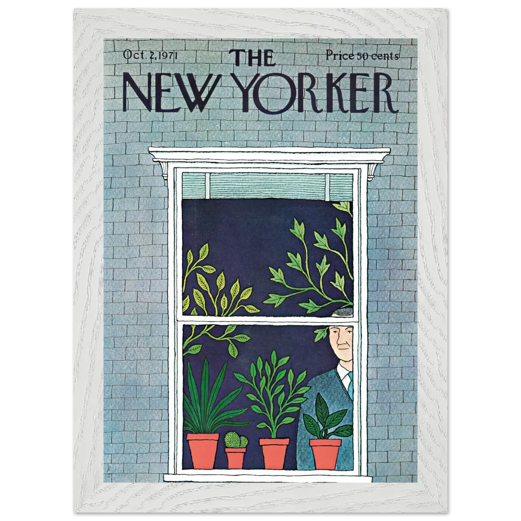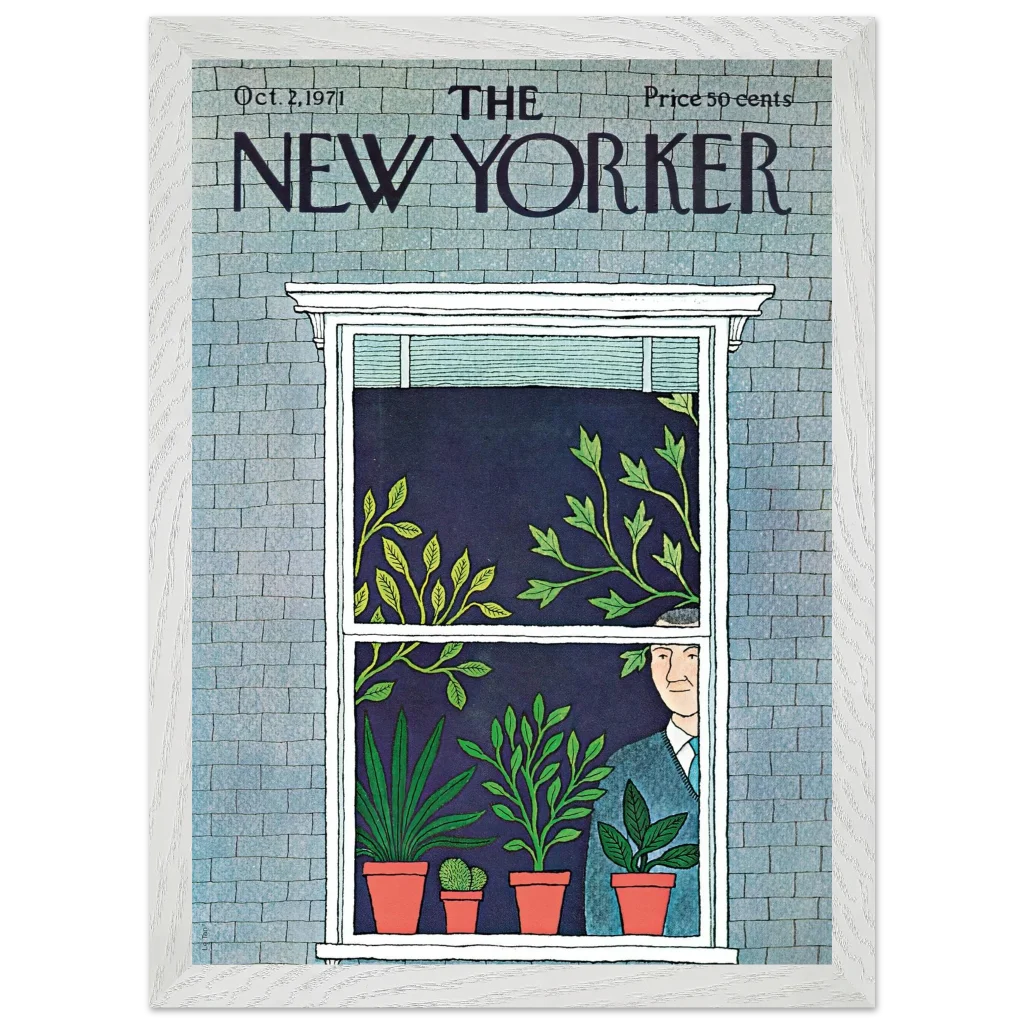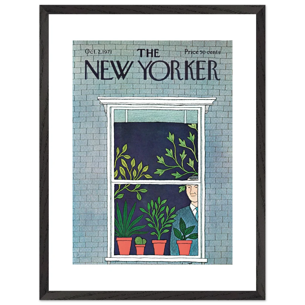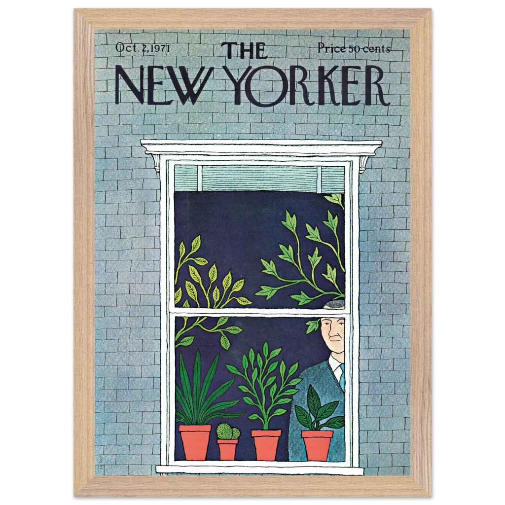 New Yorker October 1971 Cover Art – Iconic Urban Window View Wooden Framed Poster with Premium Matte Paper