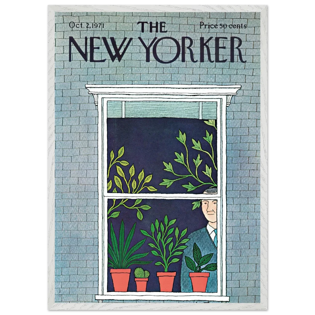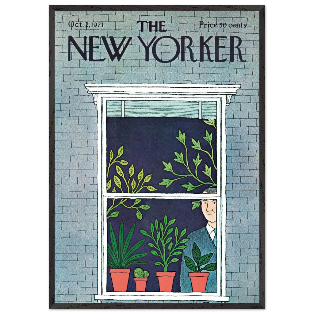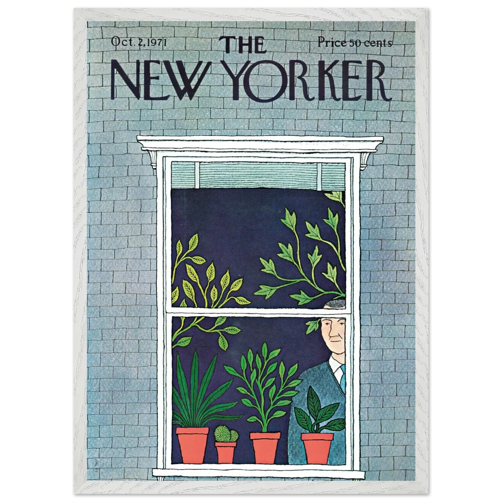 Capture a piece of urban charm and a touch of retro sophistication with our New Yorker October 1971 Cover Art poster. This iconic illustration, featuring a serene window scene with lush indoor plants and a glimpse of a thoughtful observer, brings a unique blend of nature and city life into your space. It’s an ideal choice for those who appreciate vintage aesthetics, classic magazine art, and the subtle beauty of everyday moments.