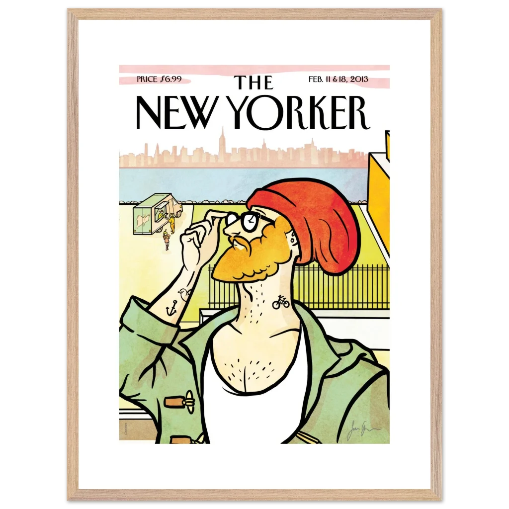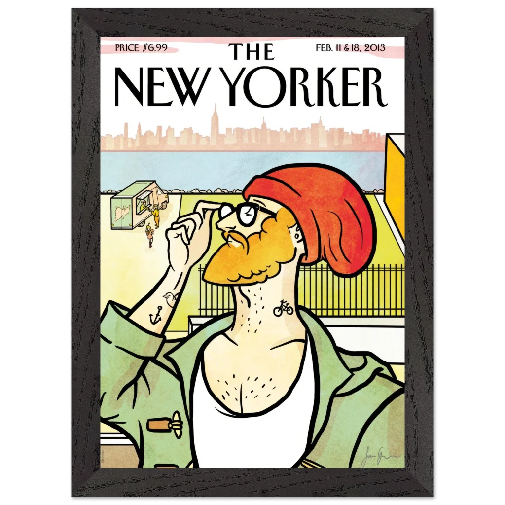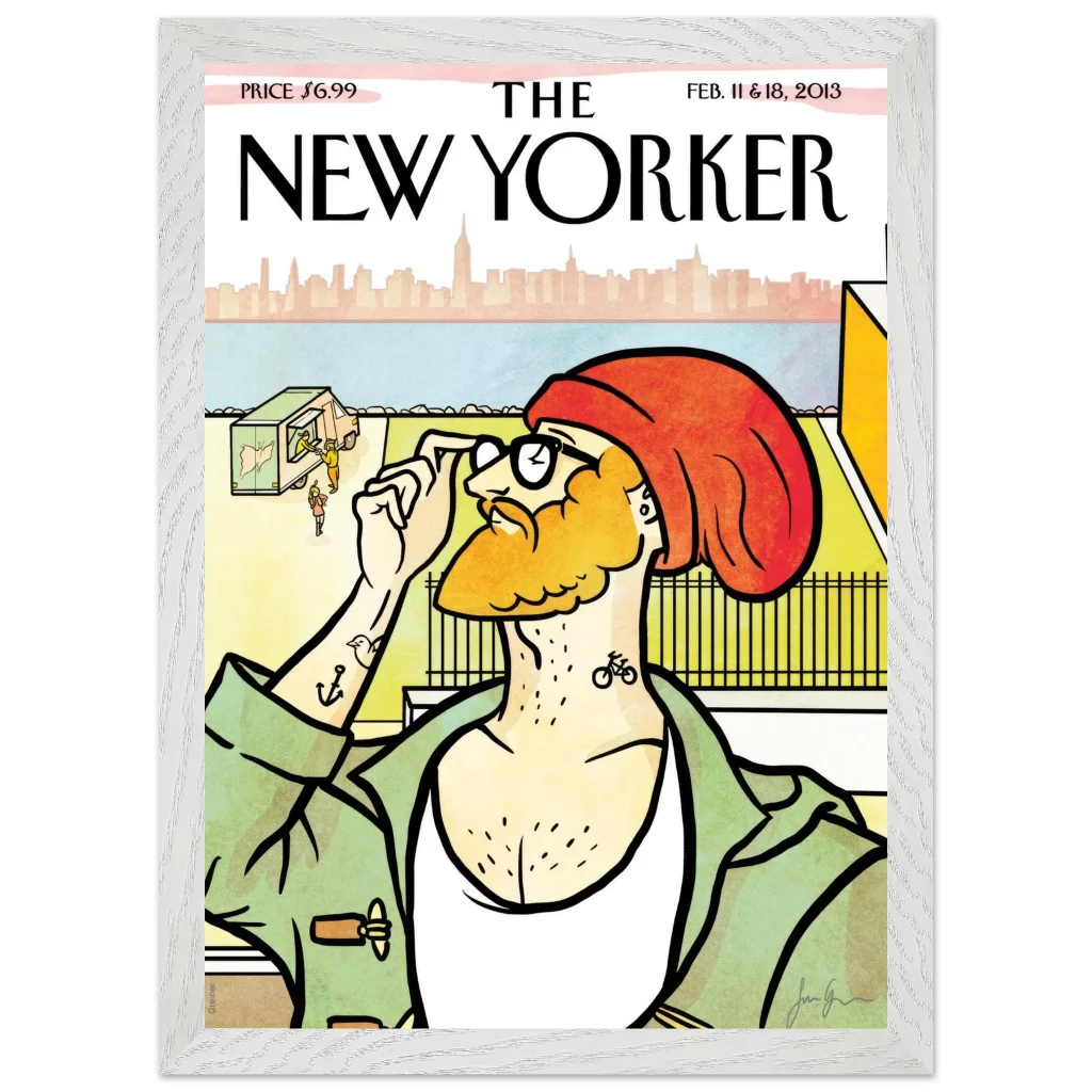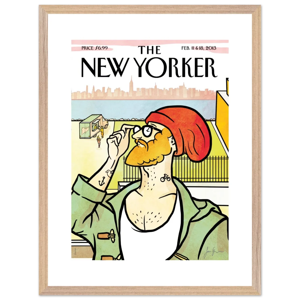 New Yorker ‘The Hipster’ Cover Poster – Urban Charm Wall Art – Premium Wooden Framed Art with Matte Finish