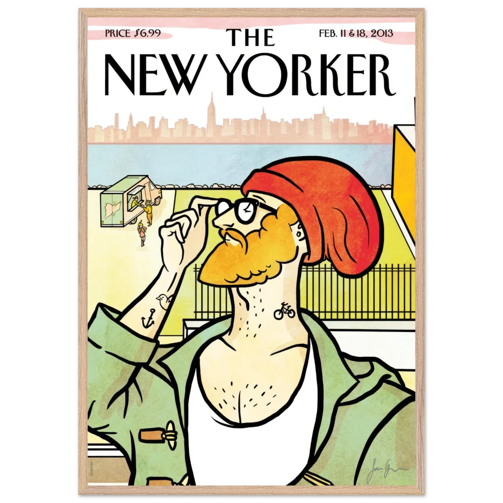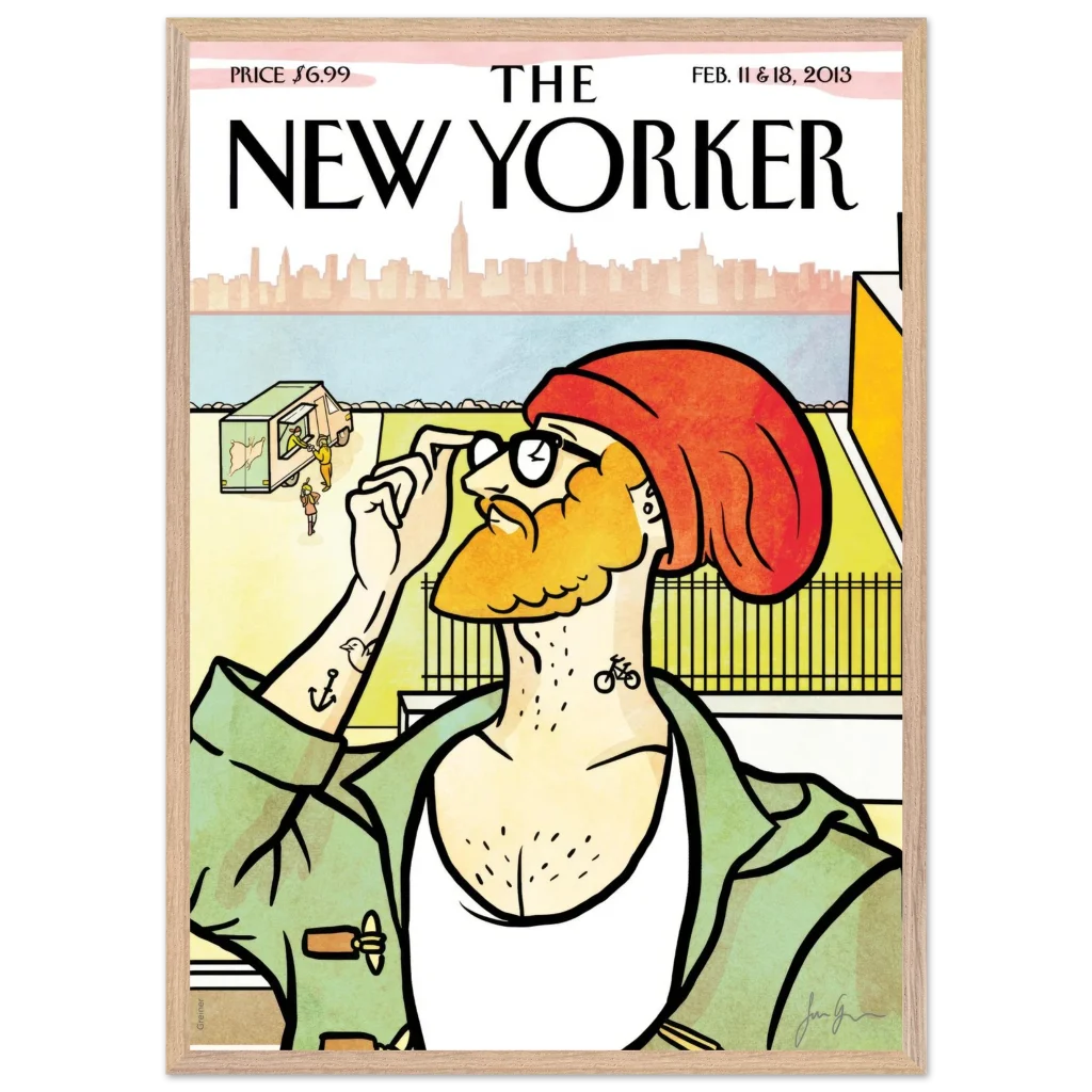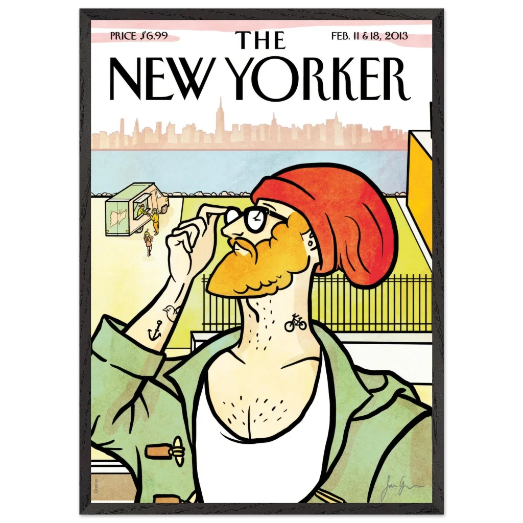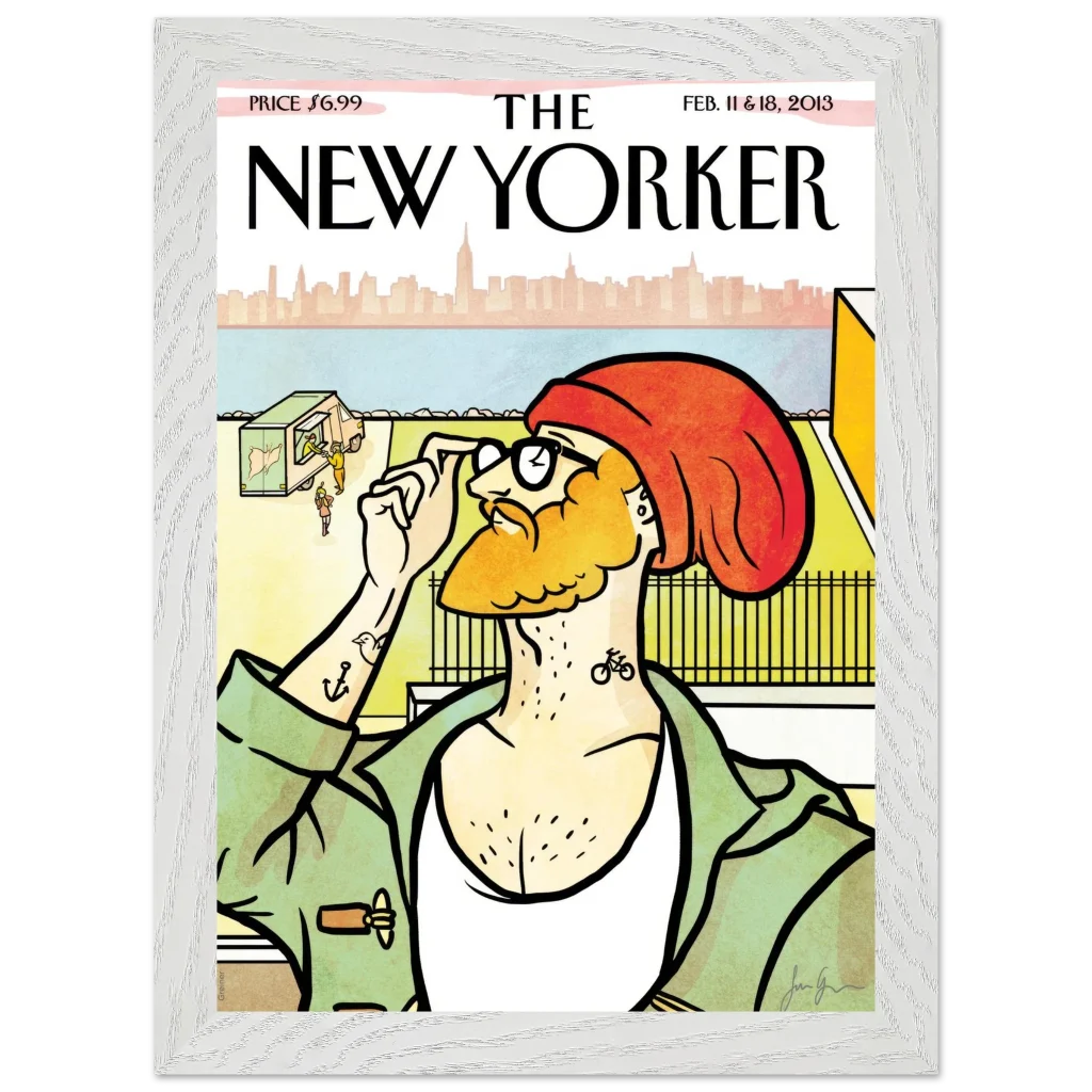 New Yorker ‘The Hipster’ Cover Poster – Urban Charm Wall Art – Premium Wooden Framed Art with Matte Finish
