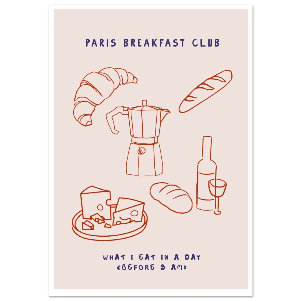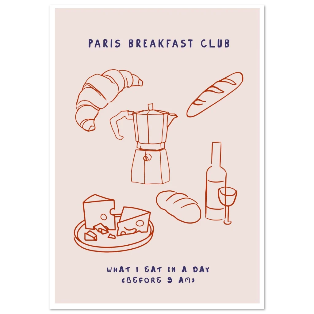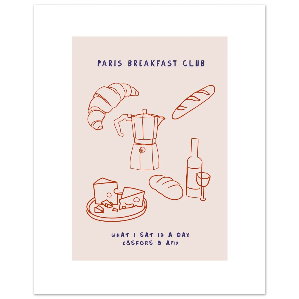 Paris Breakfast Club Poster: Whimsical French Delights on Classic Semi-Glossy Paper