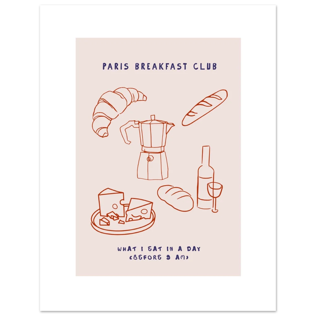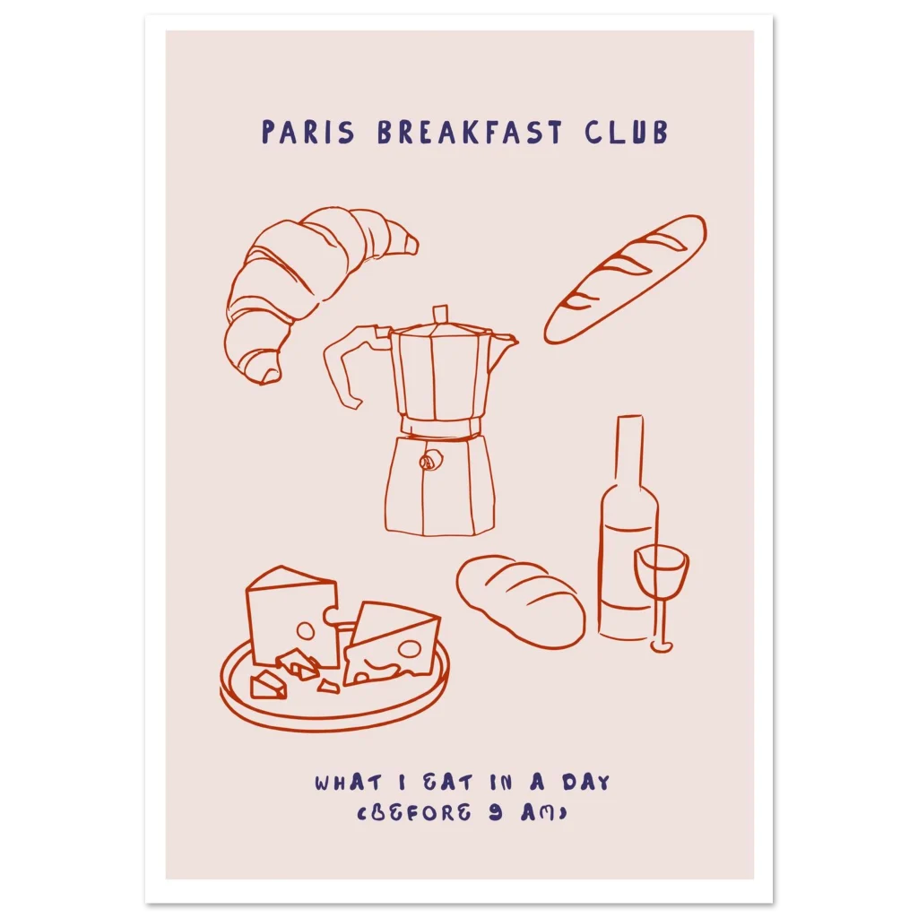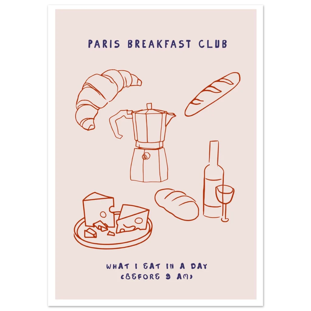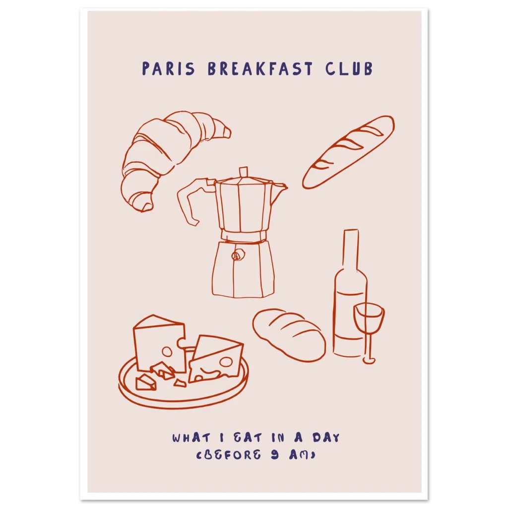 Paris Breakfast Club Poster: Whimsical French Delights on Classic Semi-Glossy Paper
