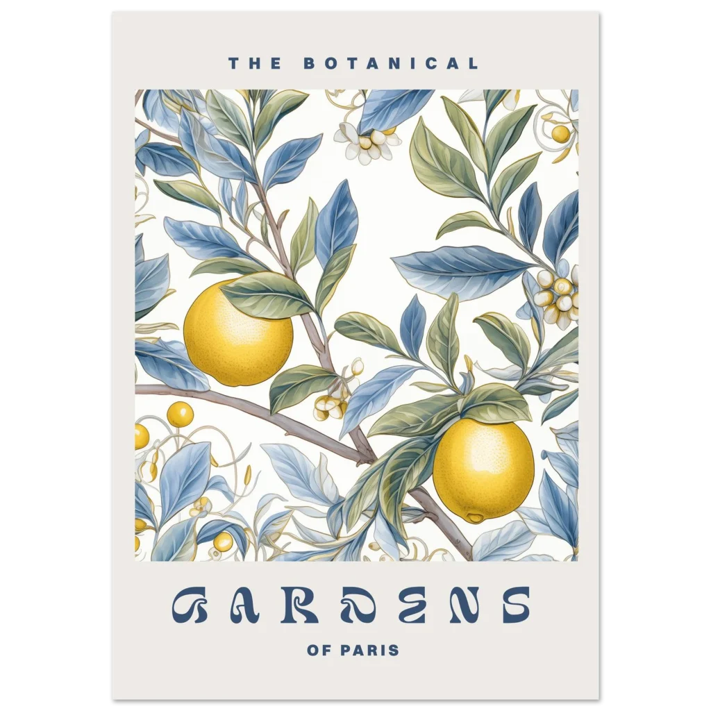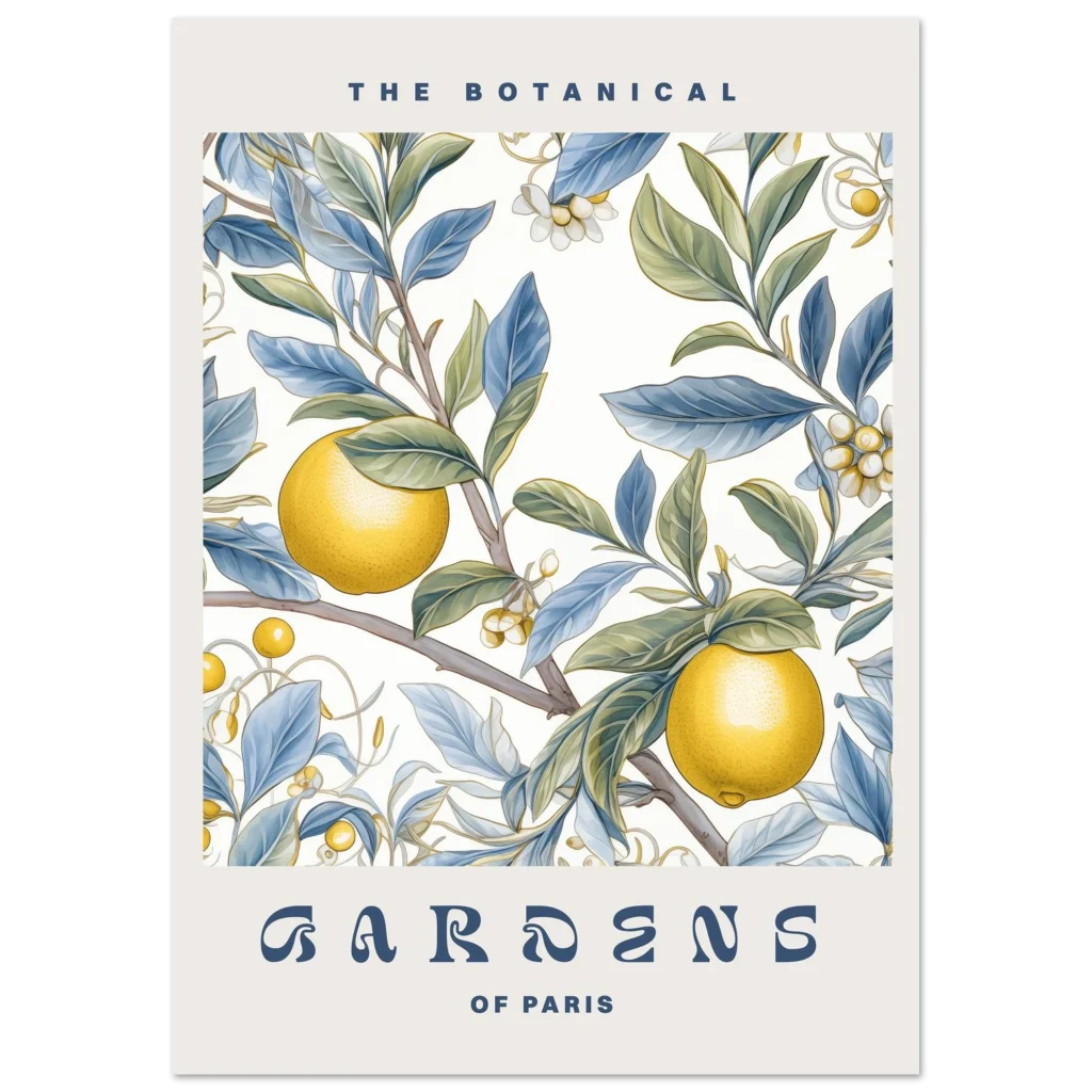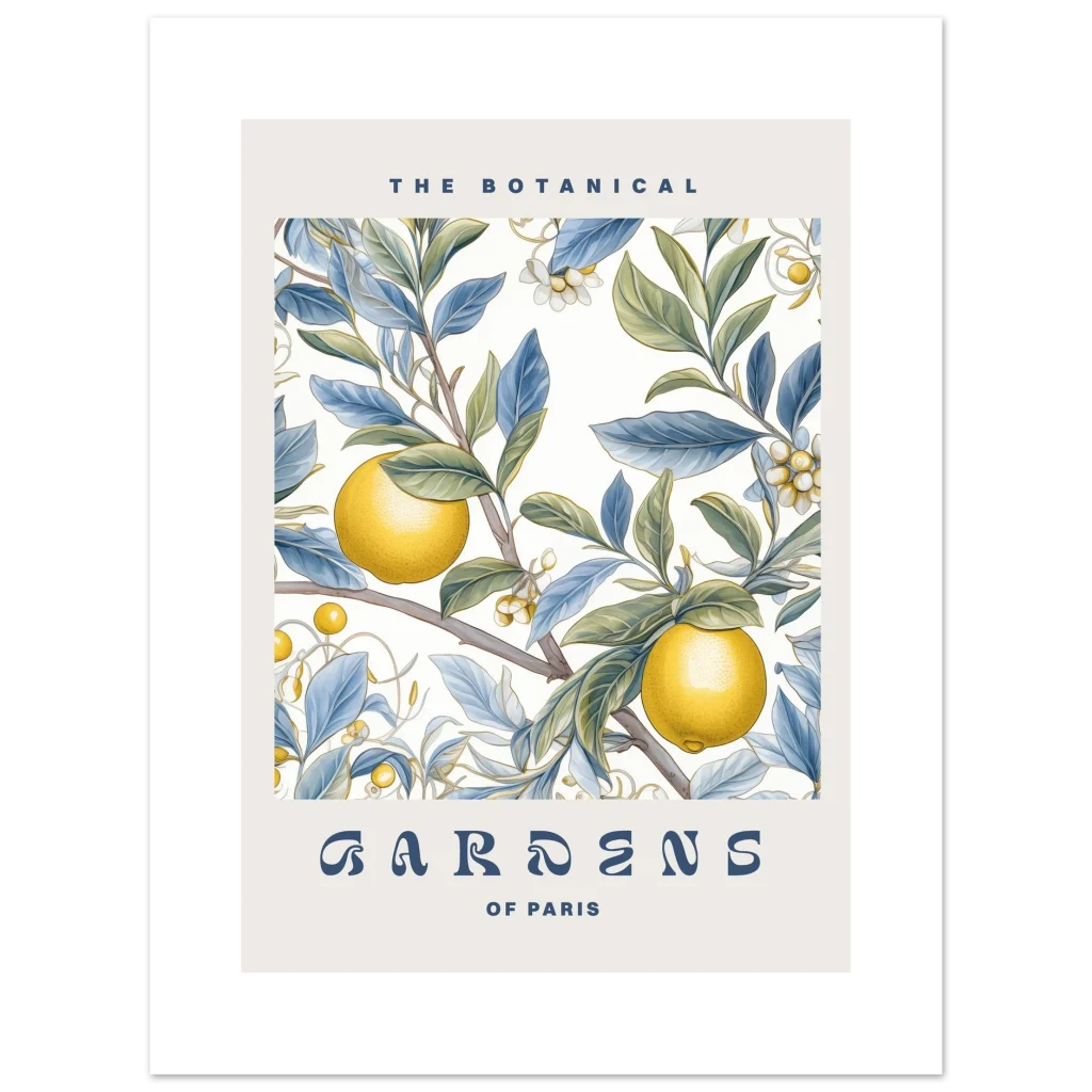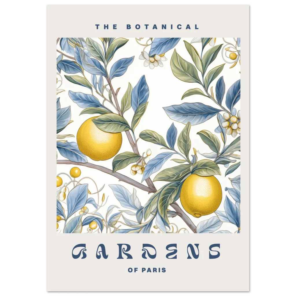 Bring the timeless elegance of a Parisian garden into your home with this exquisite botanical poster. Featuring vibrant yellow citrus fruits nestled amongst cool blue and sage green foliage, this artwork evokes a sense of tranquil sophistication and natural beauty. Its delicate artistry and soothing color palette make it a perfect centerpiece for any room, inviting a breath of fresh, artistic air into your space.