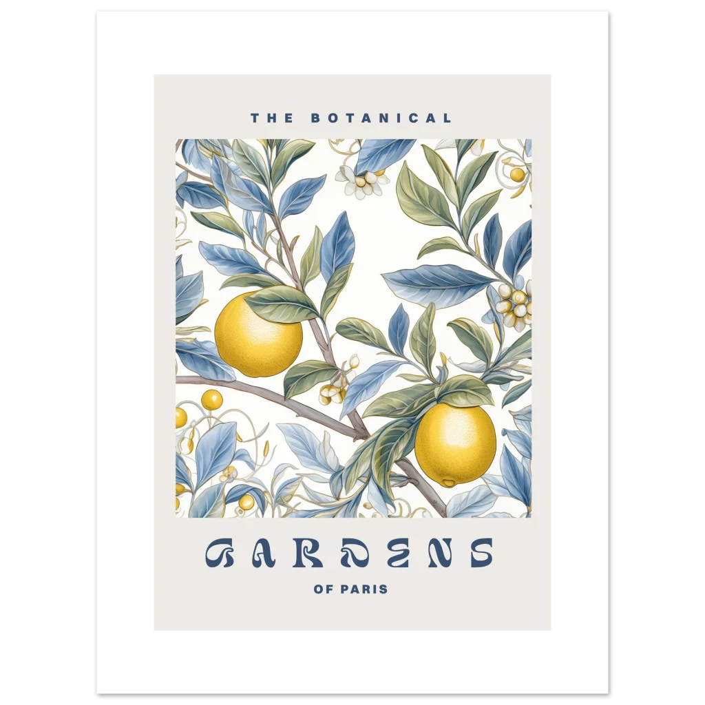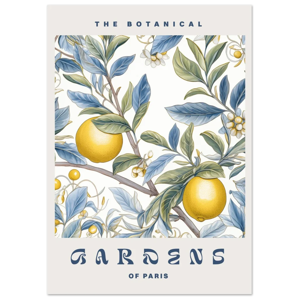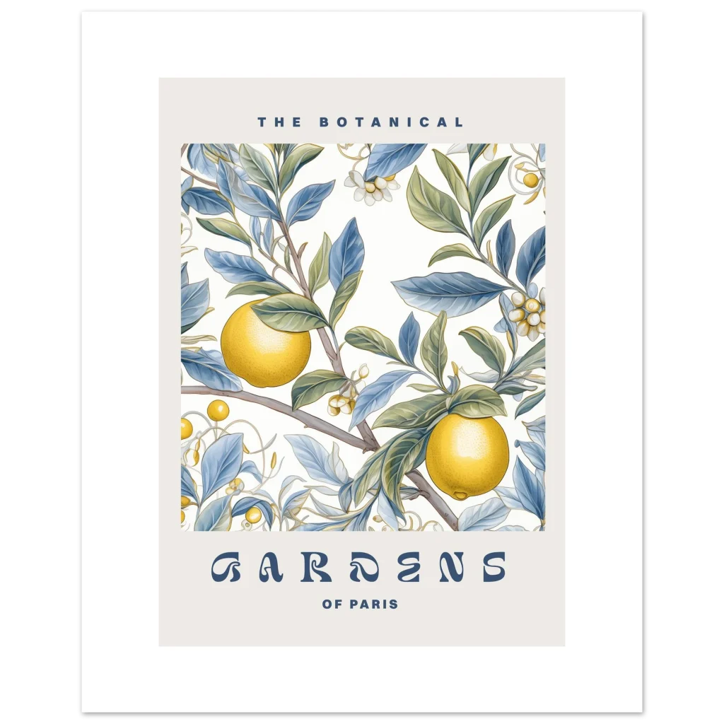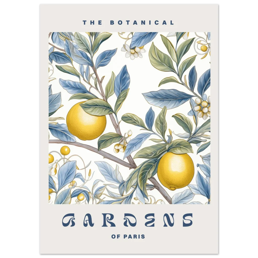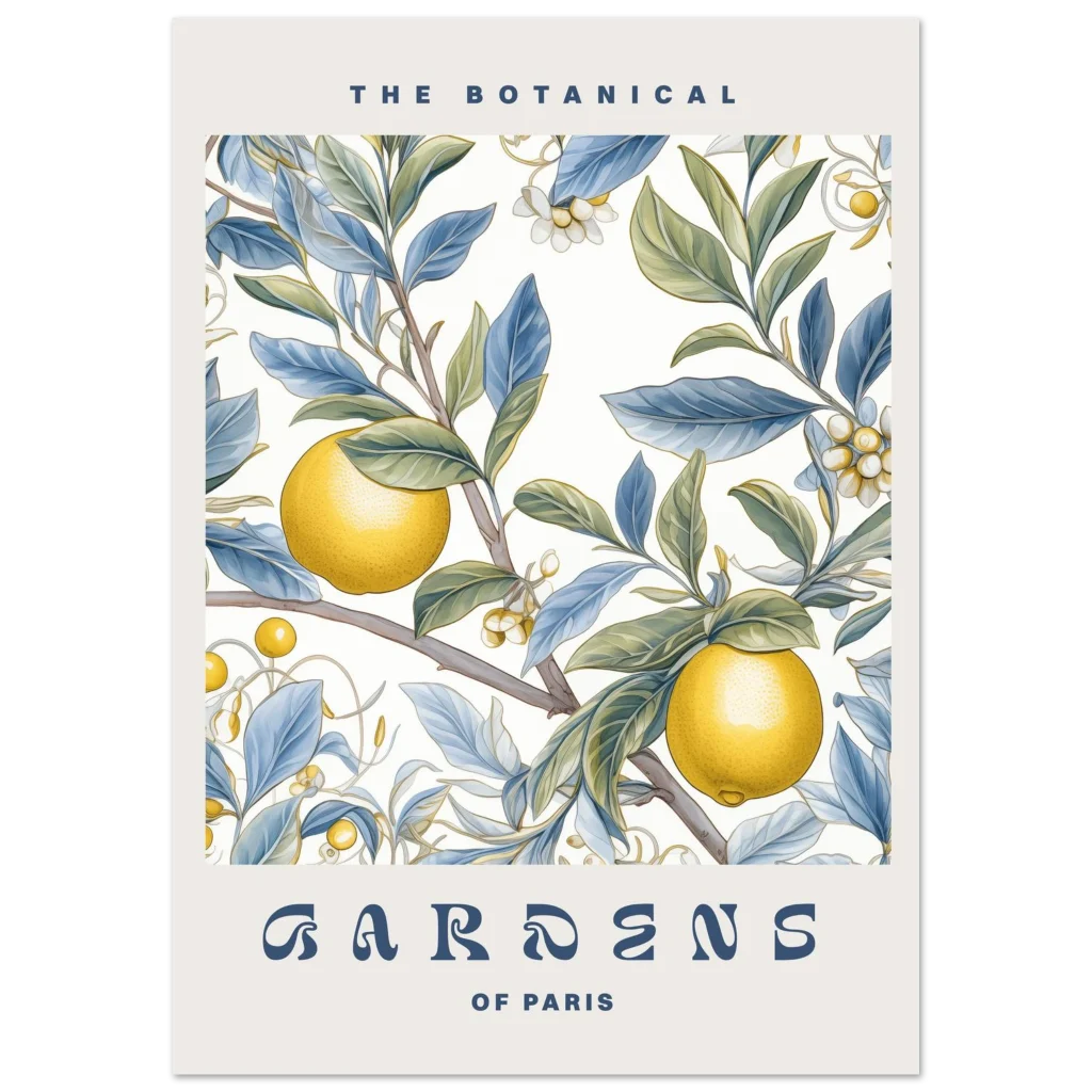 Bring the timeless elegance of a Parisian garden into your home with this exquisite botanical poster. Featuring vibrant yellow citrus fruits nestled amongst cool blue and sage green foliage, this artwork evokes a sense of tranquil sophistication and natural beauty. Its delicate artistry and soothing color palette make it a perfect centerpiece for any room, inviting a breath of fresh, artistic air into your space.